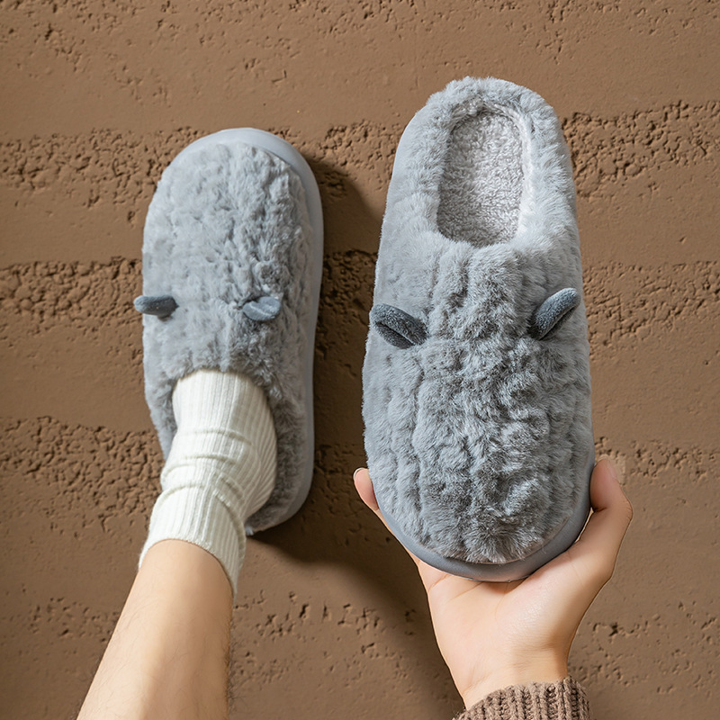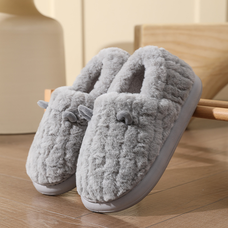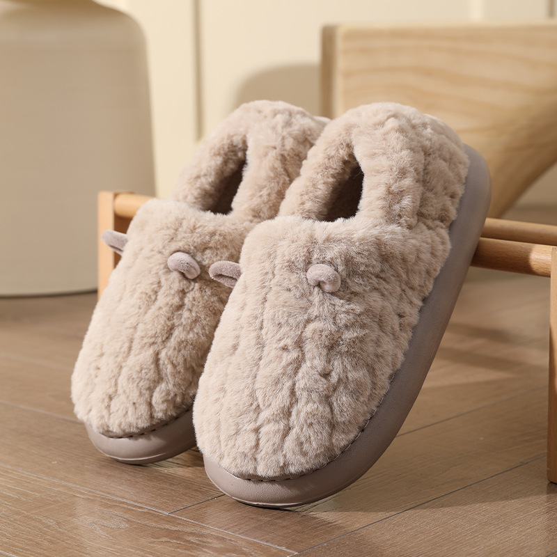 毛绒包跟棉拖鞋男2025秋冬季新款室内家居防滑保暖外穿加绒棉鞋女