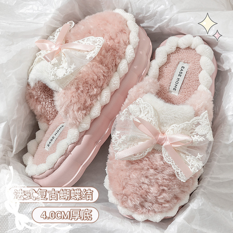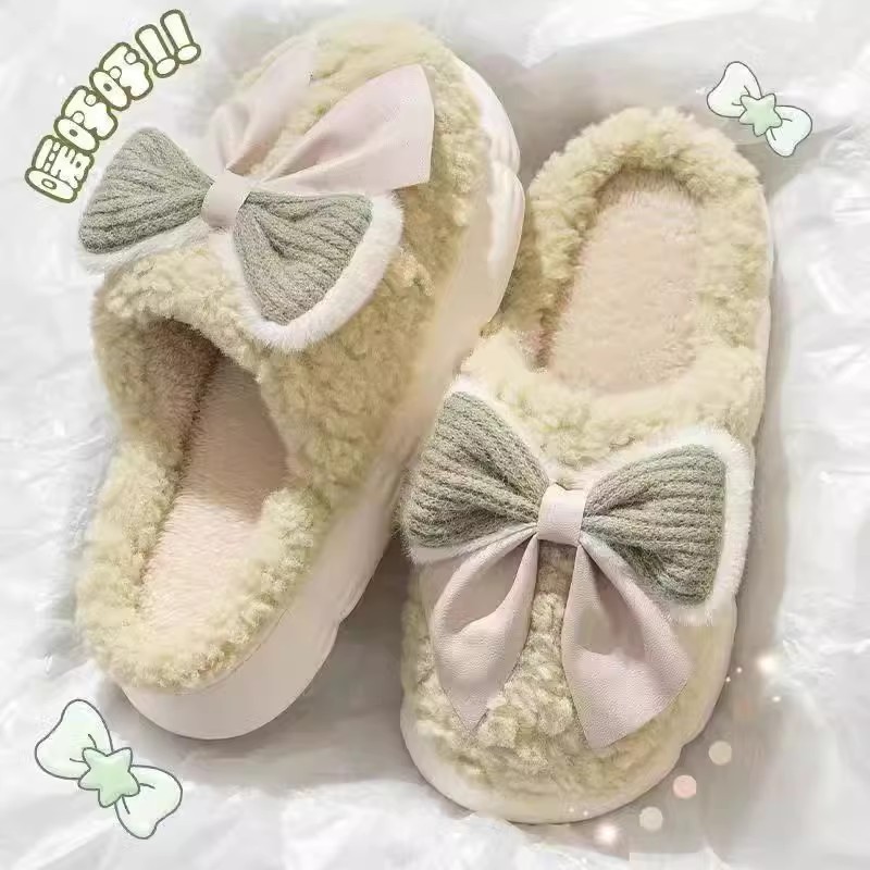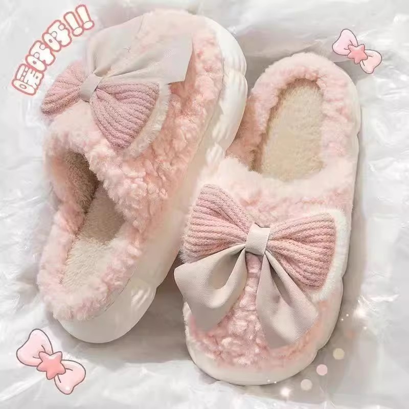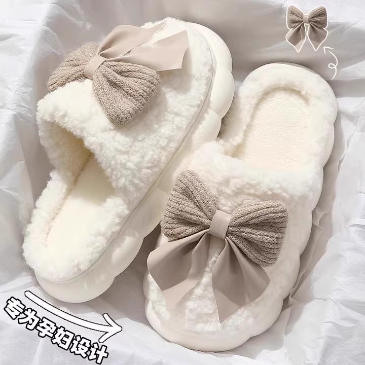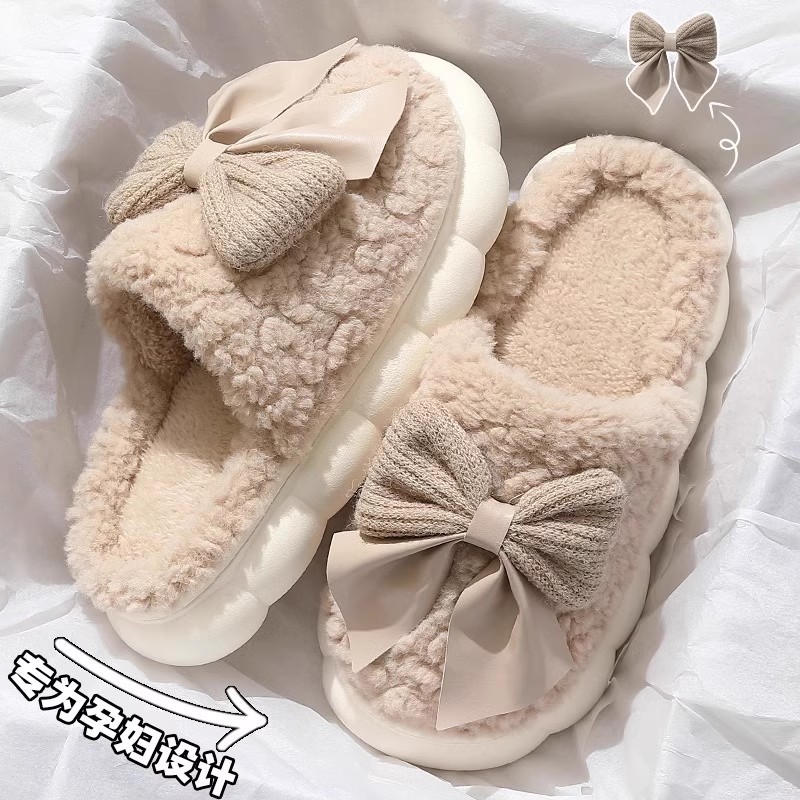 蝴蝶结棉拖鞋女款冬季2025新款室内家居厚底防滑保暖毛毛拖鞋女士