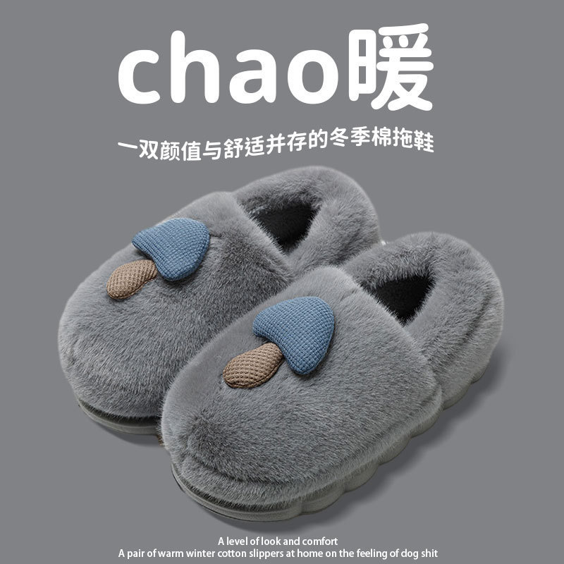 踩屎感棉拖鞋女款2025新款冬季室内家居厚底保暖包跟毛毛外穿棉拖