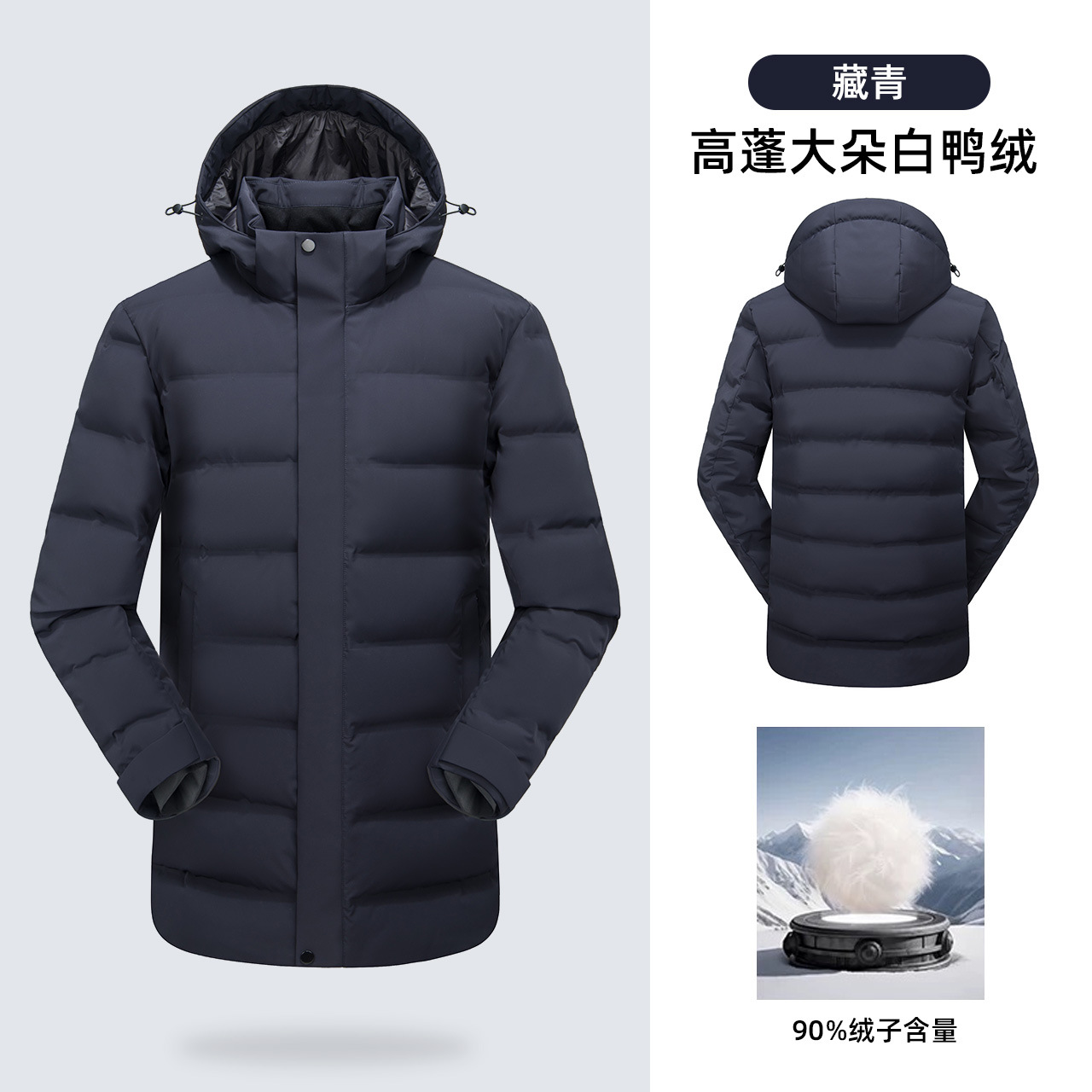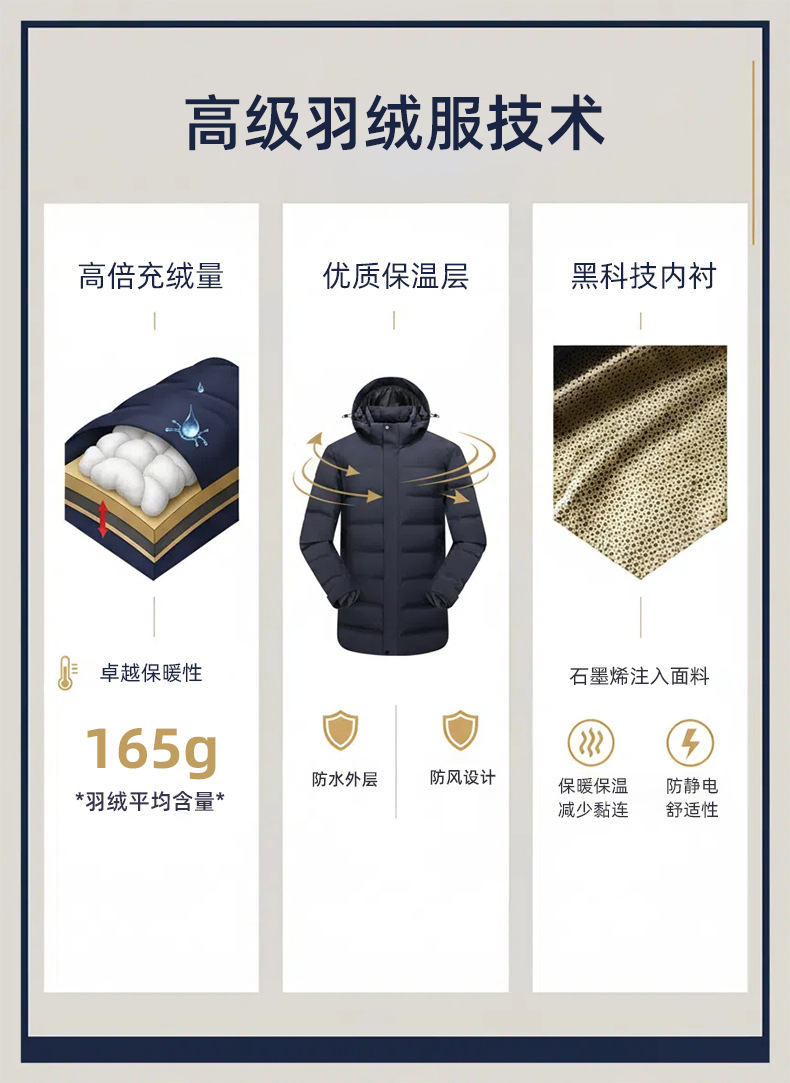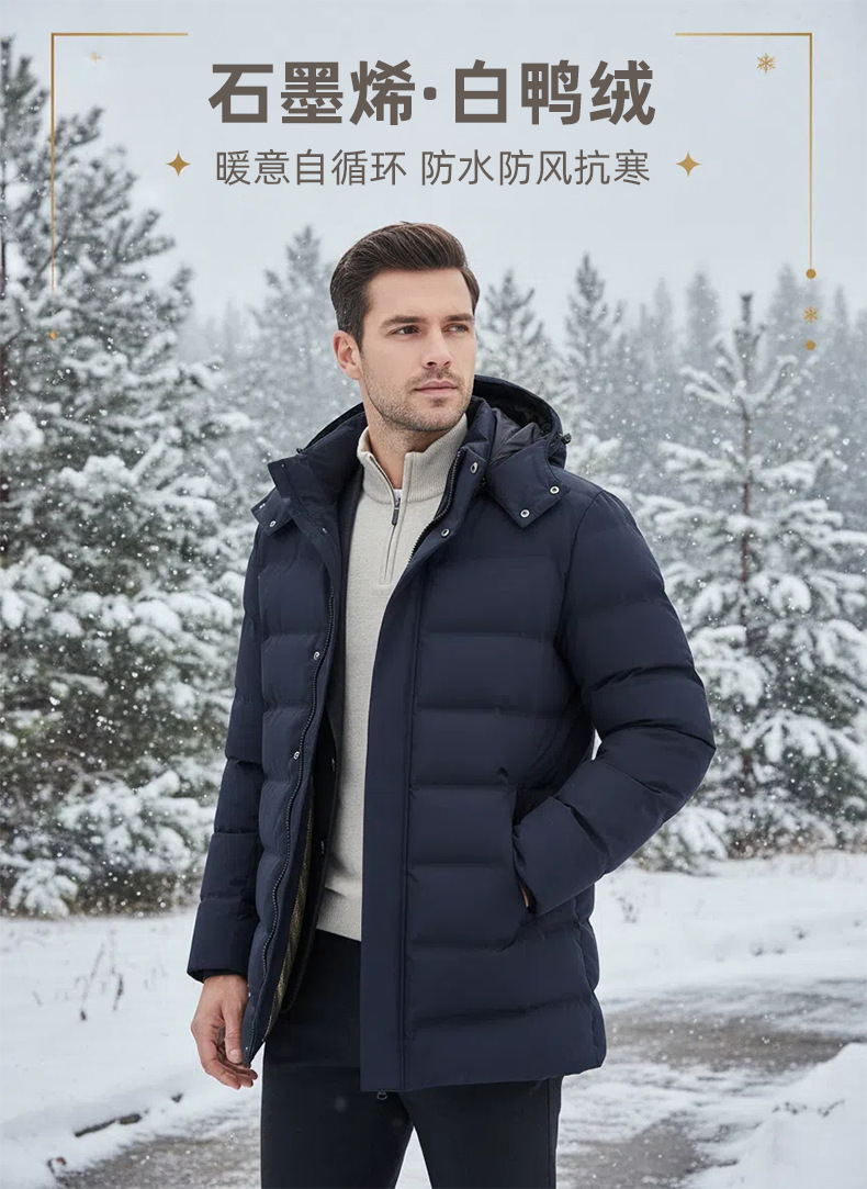 白鸭绒男式羽绒服男士中长款冬季加厚保暖商务通勤4S店工作服外套
