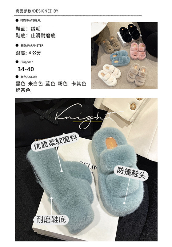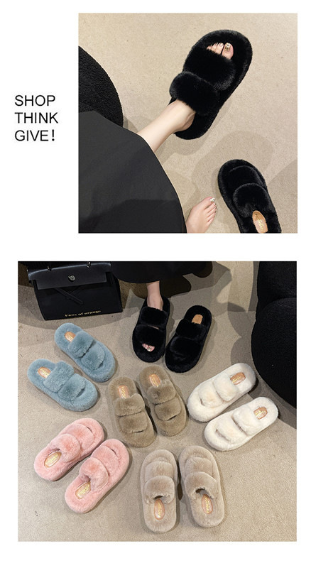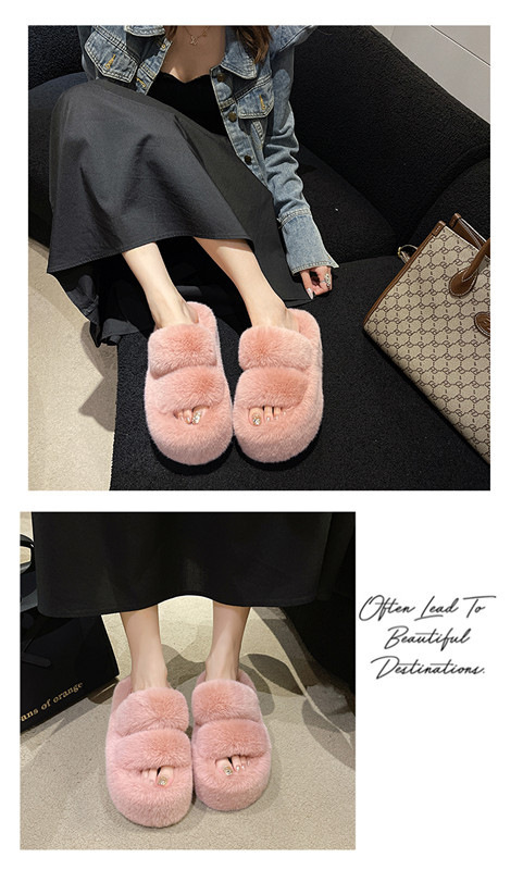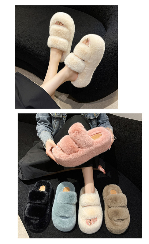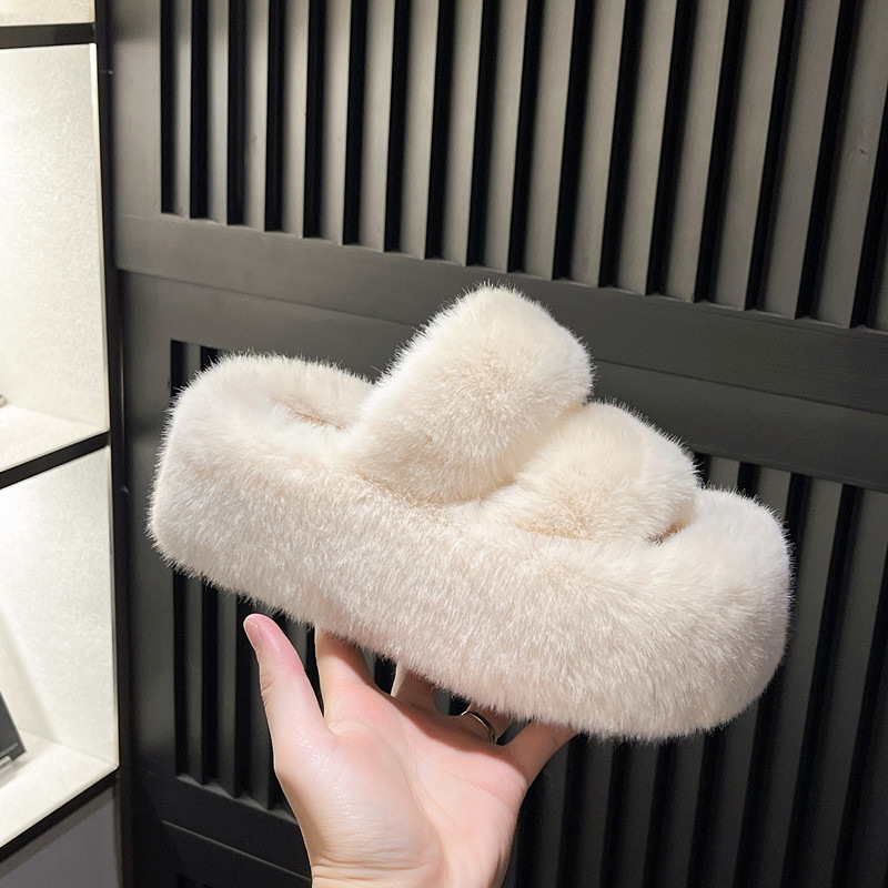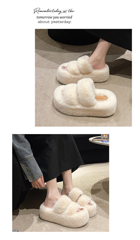 增高3厘米厚底毛毛拖鞋女外穿2025新款秋冬季平底一字保暖棉拖鞋