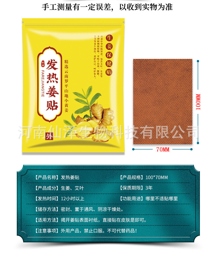 生姜贴原始点发热姜贴艾草颈肩关节贴暖贴热敷姜贴膝盖贴厂家艾灸