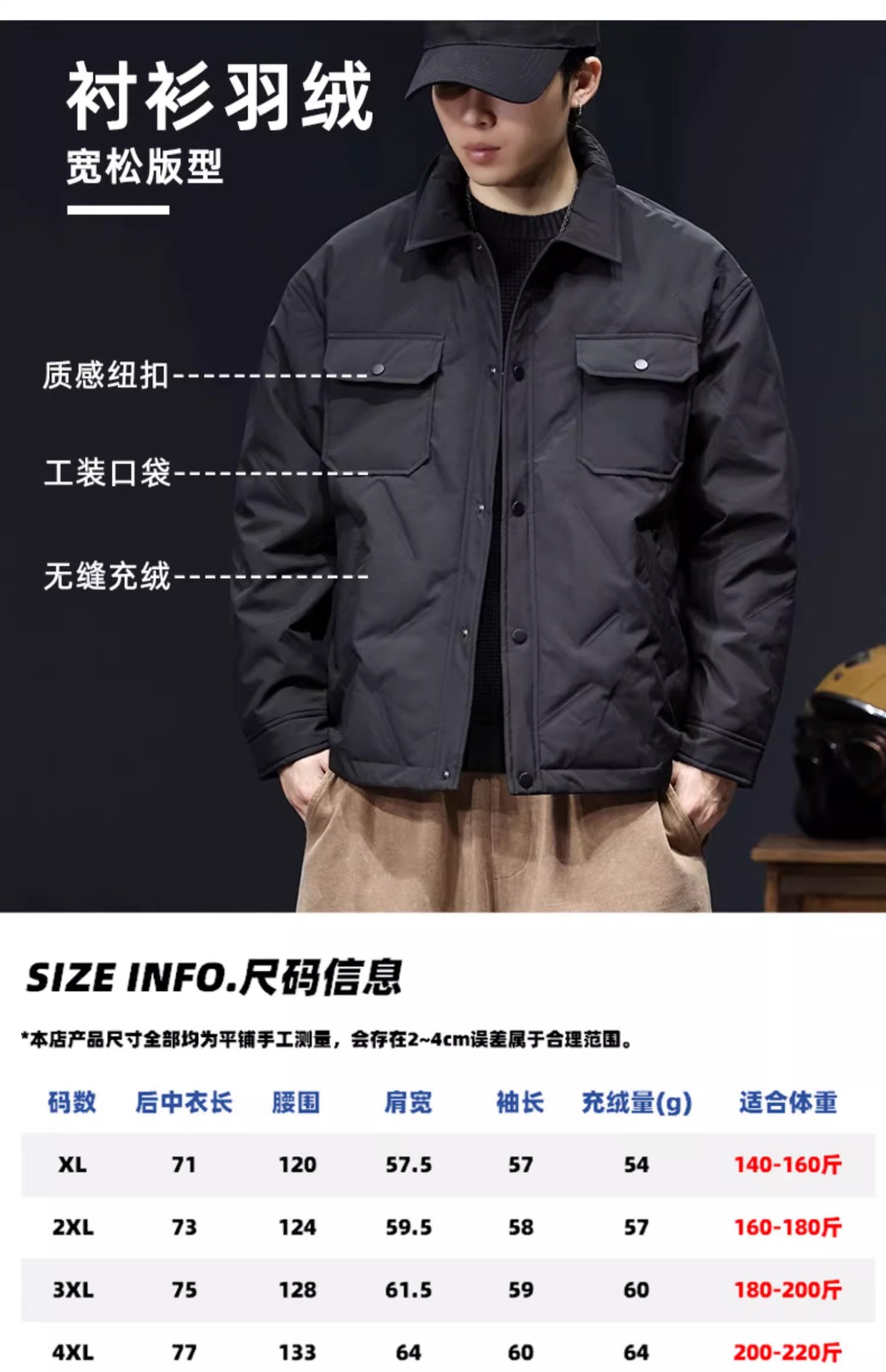 | 4XL 适合200-220斤 | USD $32.96 | 63 piece available |