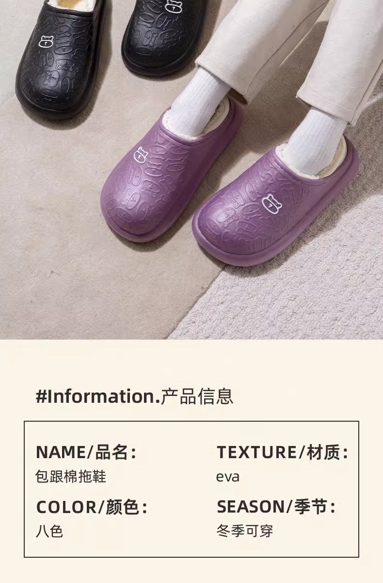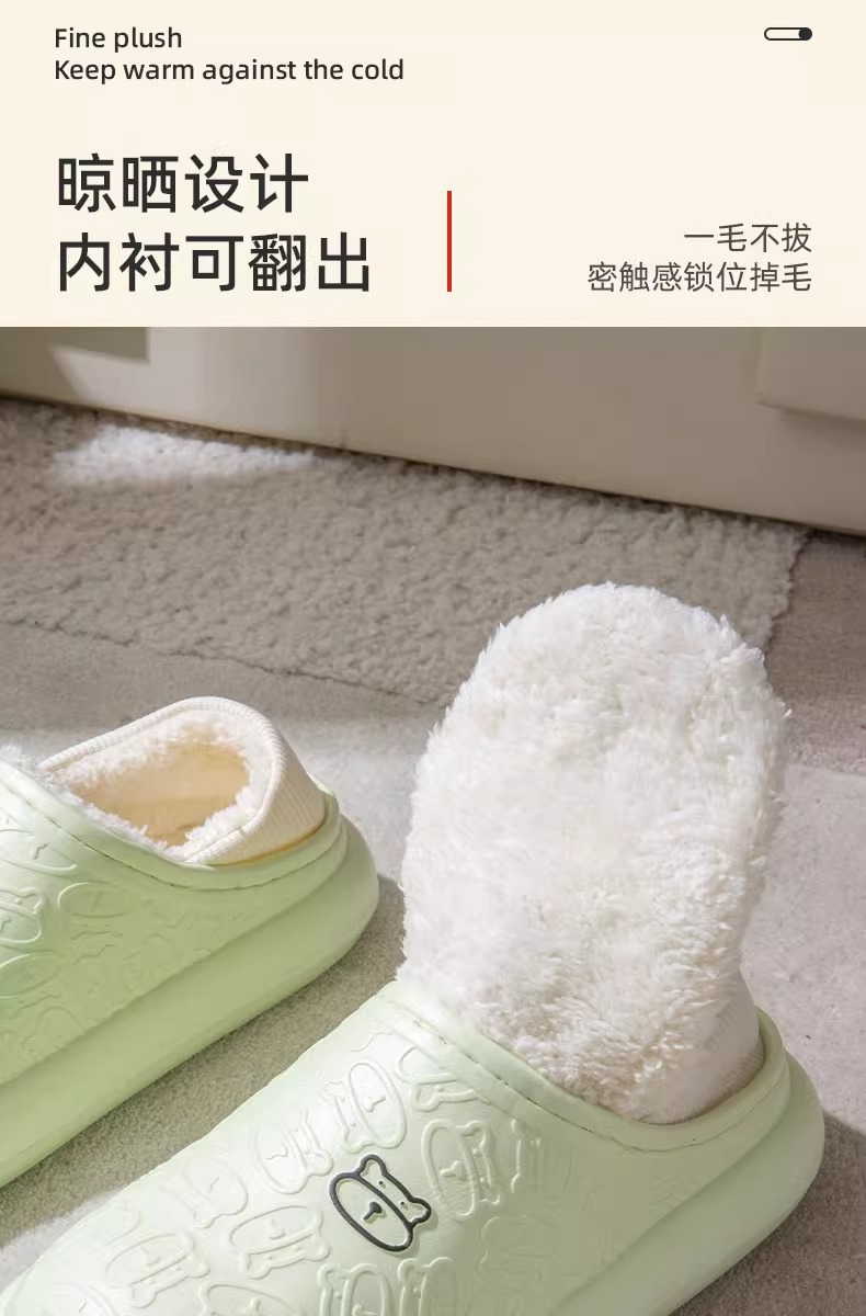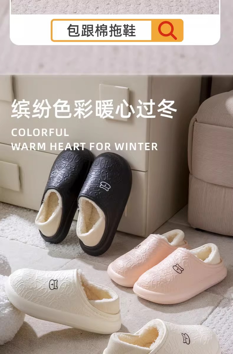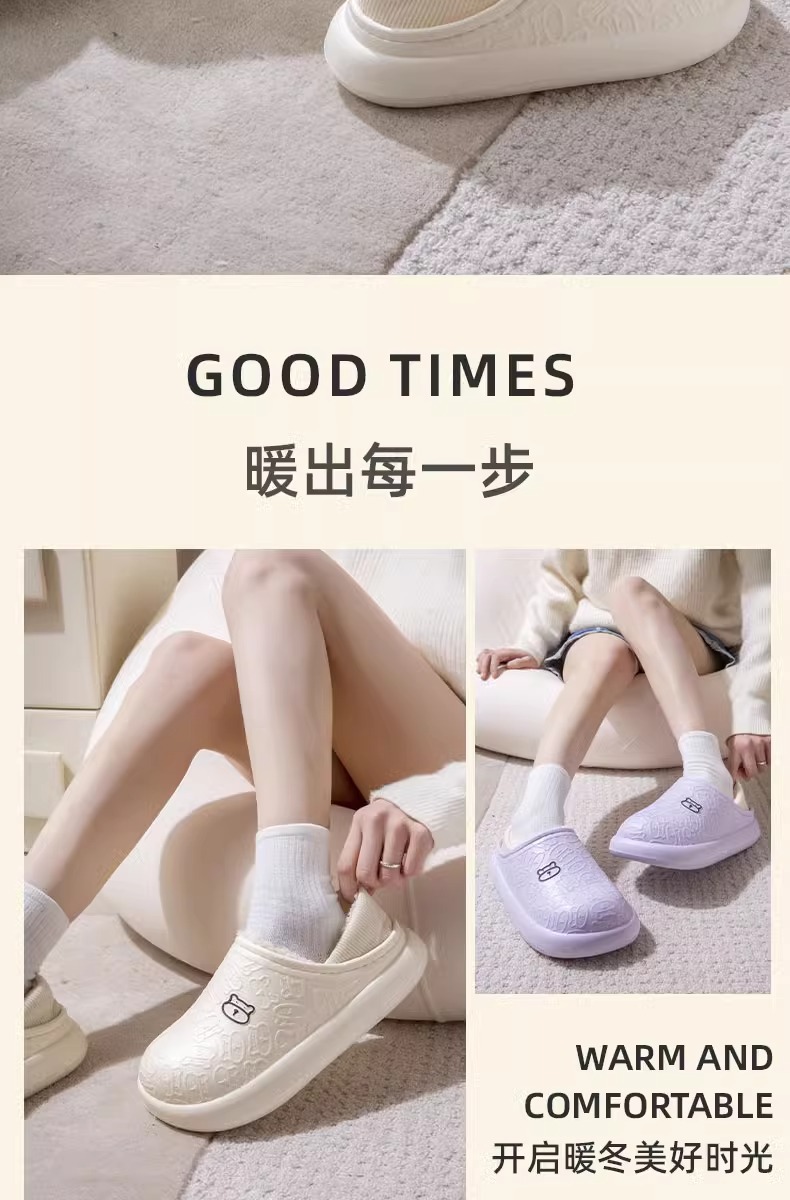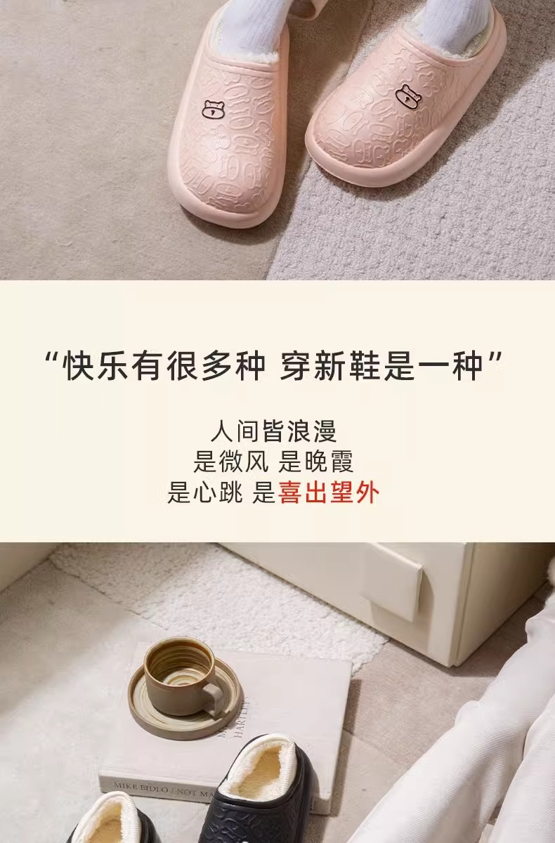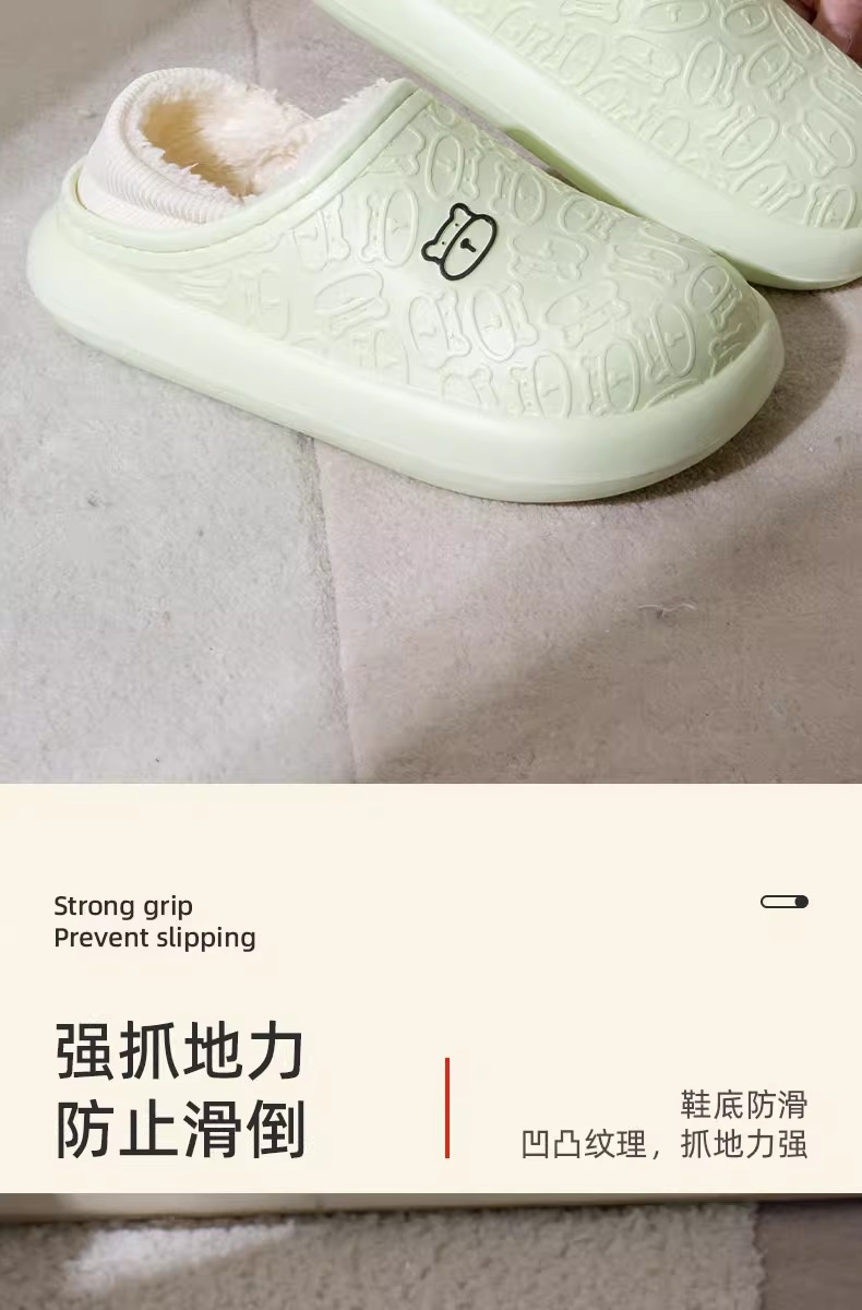 秋冬季保暖情侣防水家居厚底包跟外穿加绒加厚月子拖鞋小熊棉鞋女