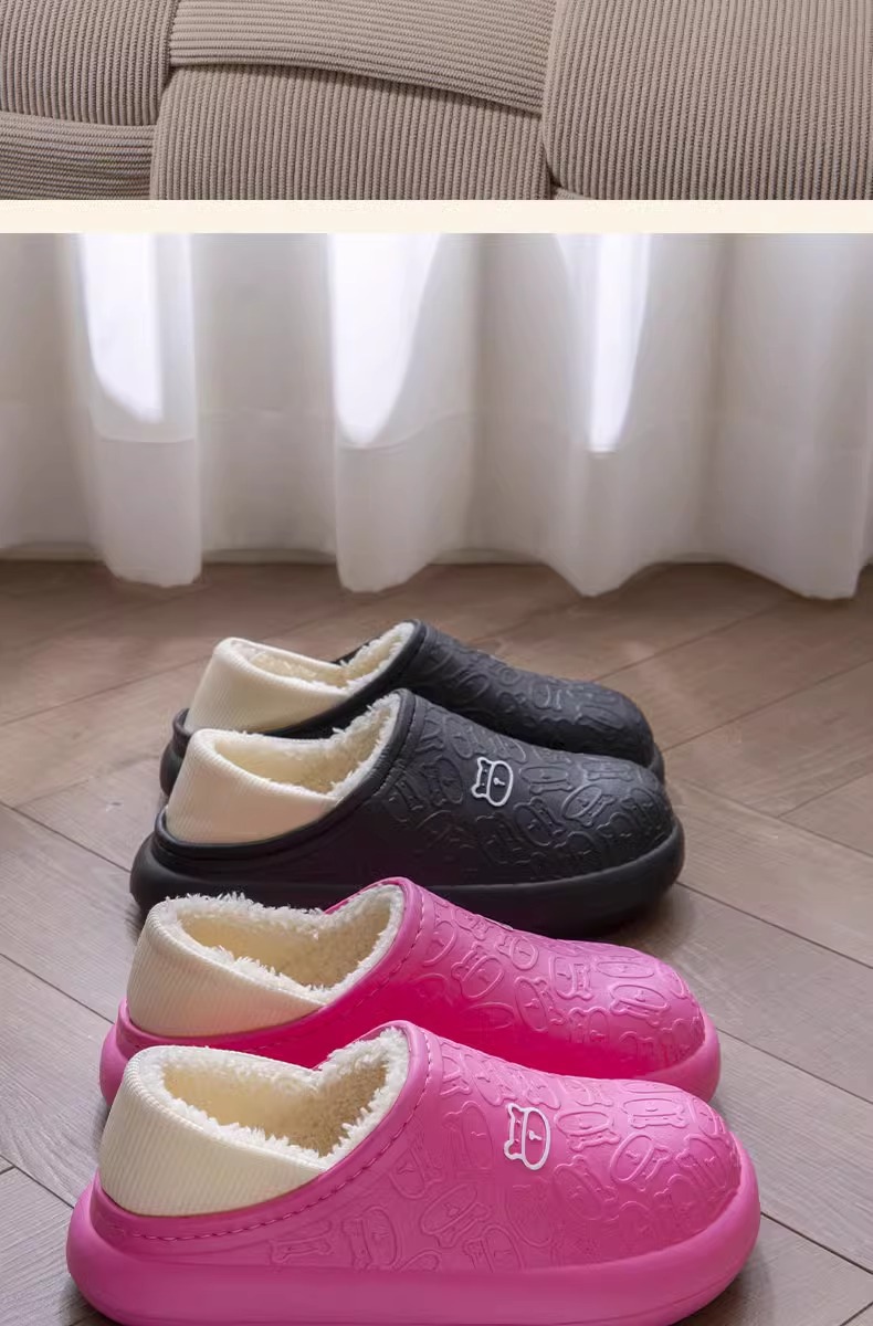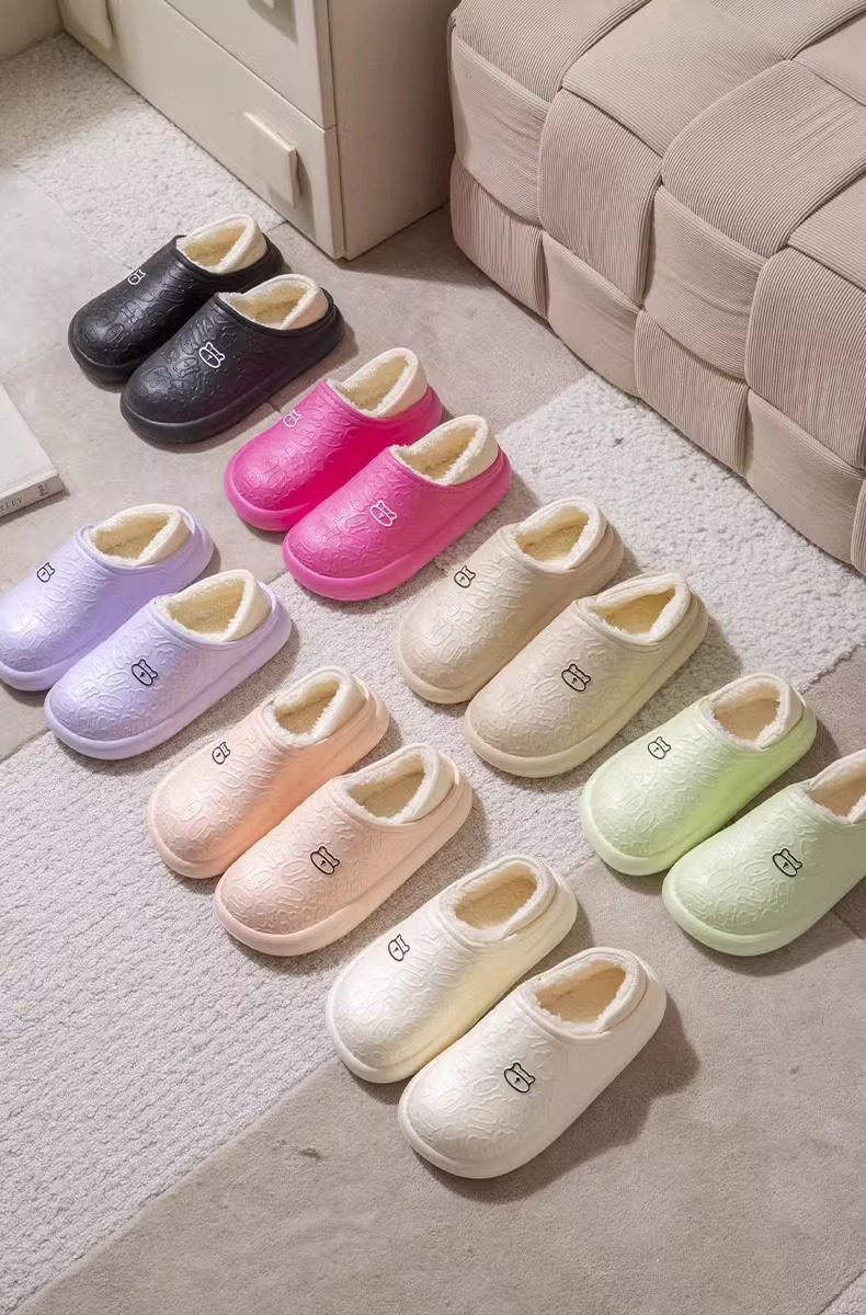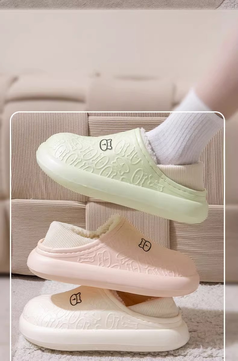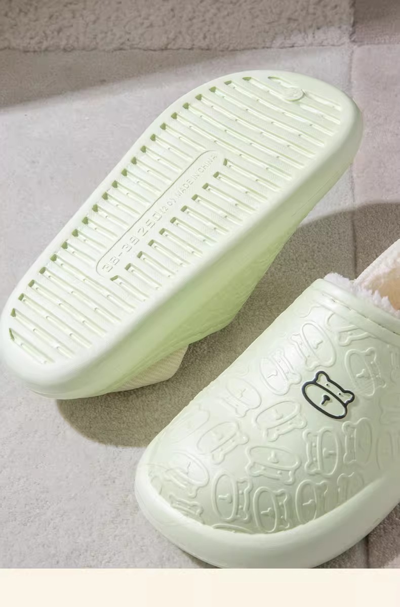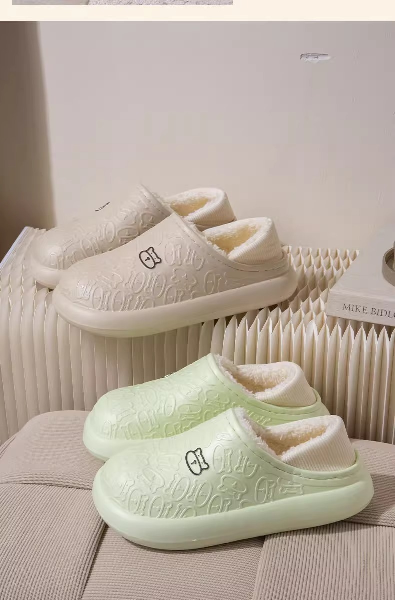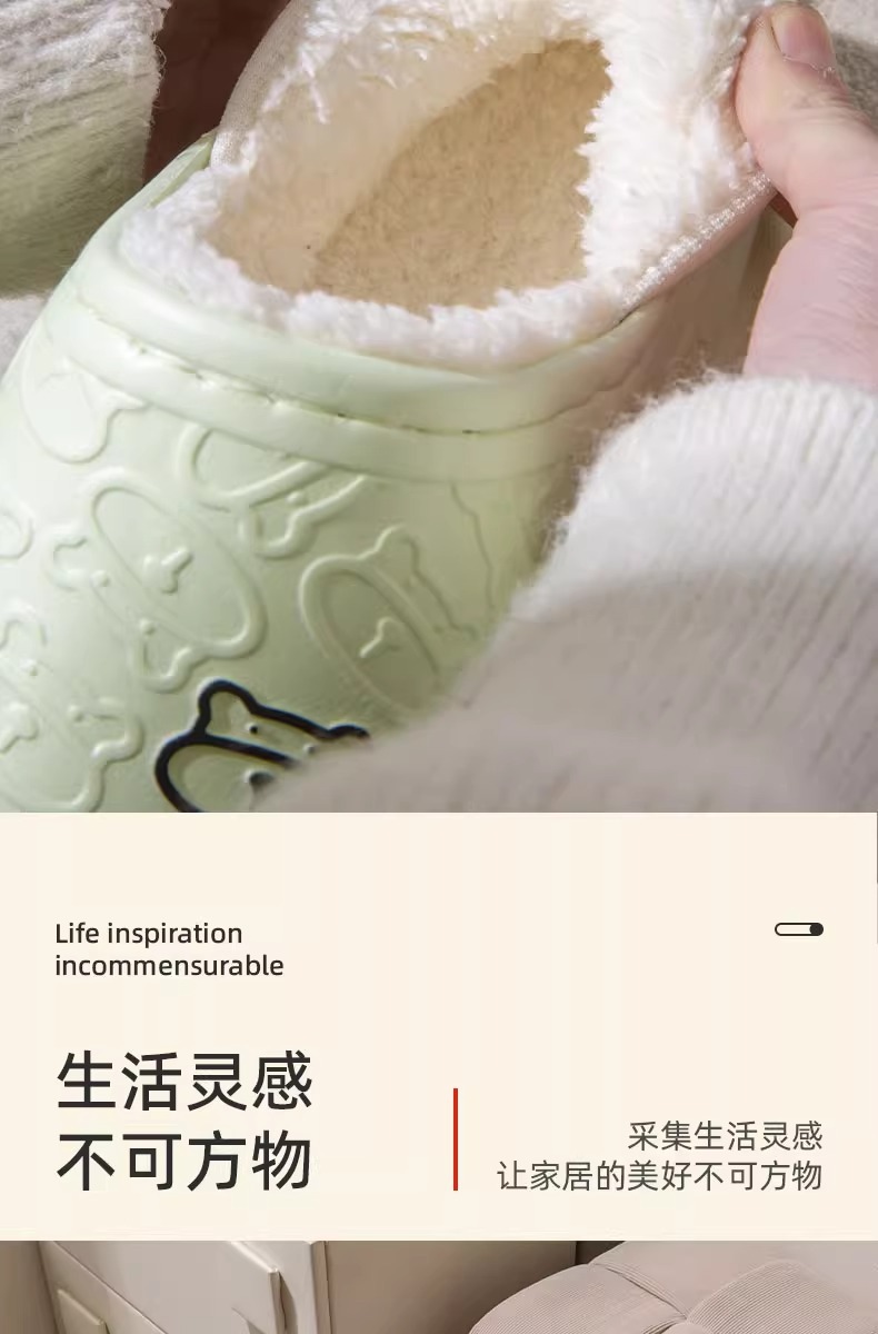 秋冬季保暖情侣防水家居厚底包跟外穿加绒加厚月子拖鞋小熊棉鞋女
