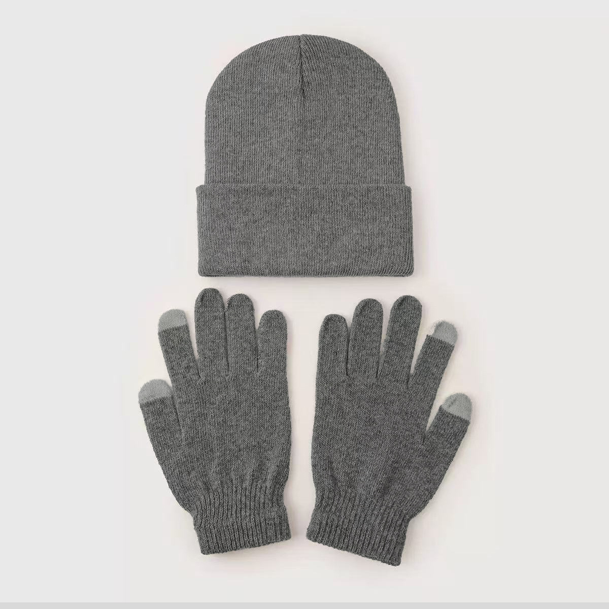 亚马逊套装秋冬纯色毛线套头帽手套保暖2件套 男女通用针织帽批发