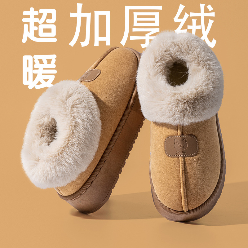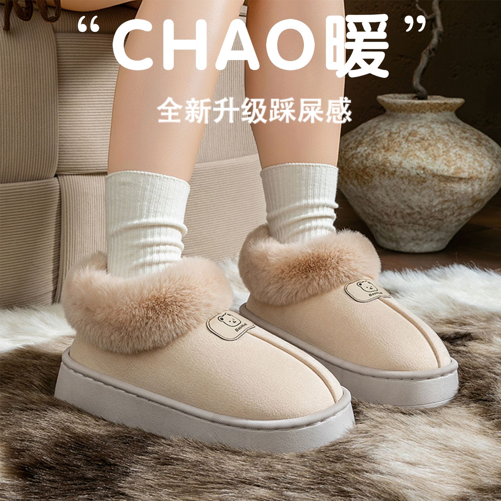 棉鞋女士秋冬季加绒加厚麂皮绒保暖外穿高帮保暖居家用包跟棉拖鞋