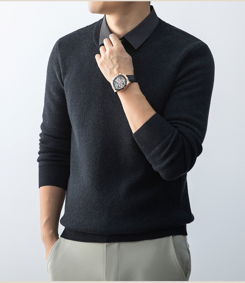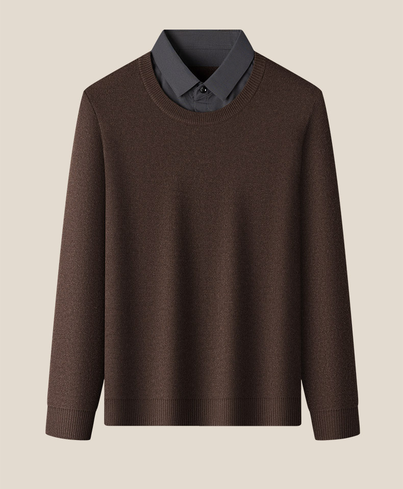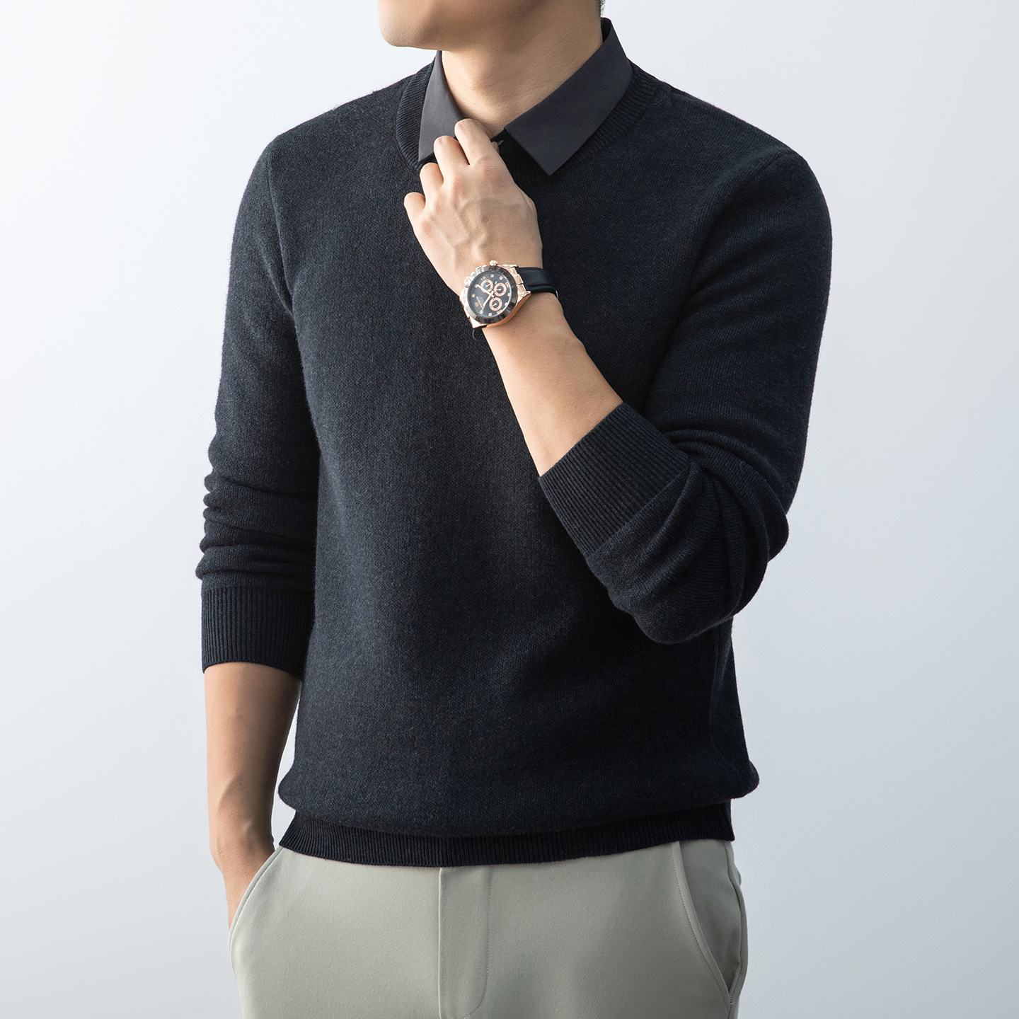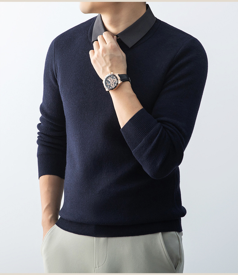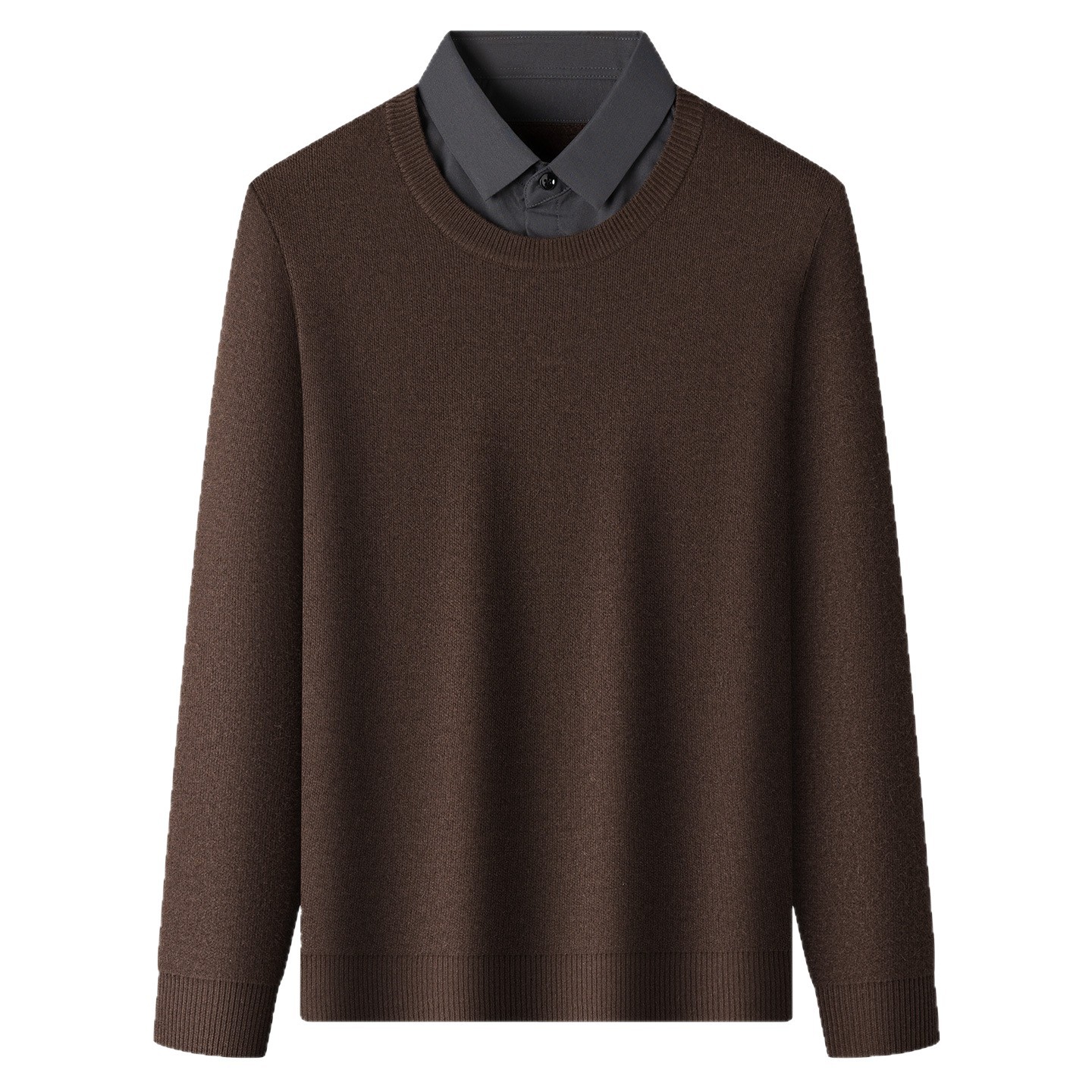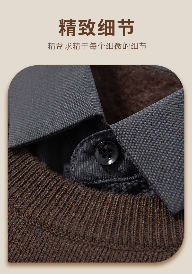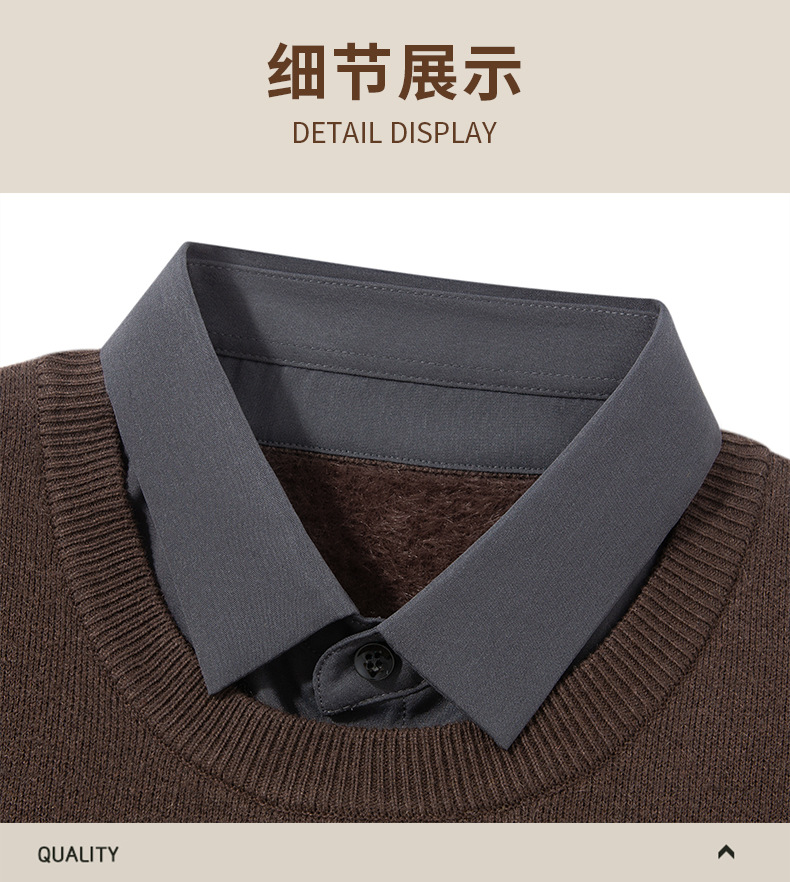 winter new men‘s fleece sweater shirt collar fake two pieces thickened men‘s clothing bottoming shirt knitwear