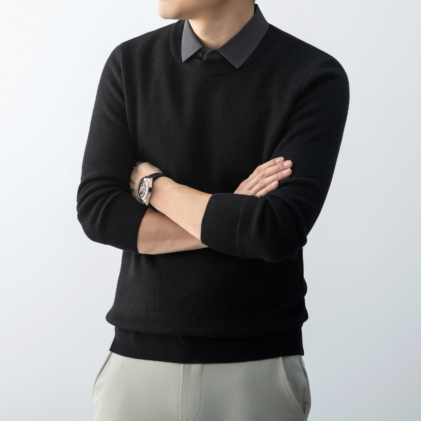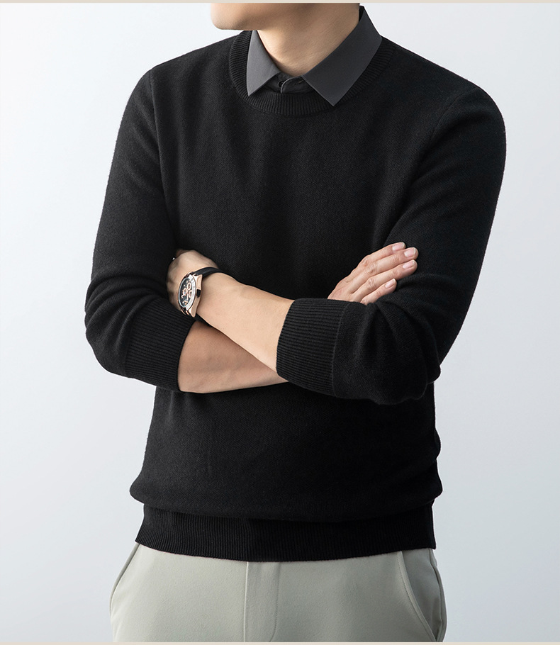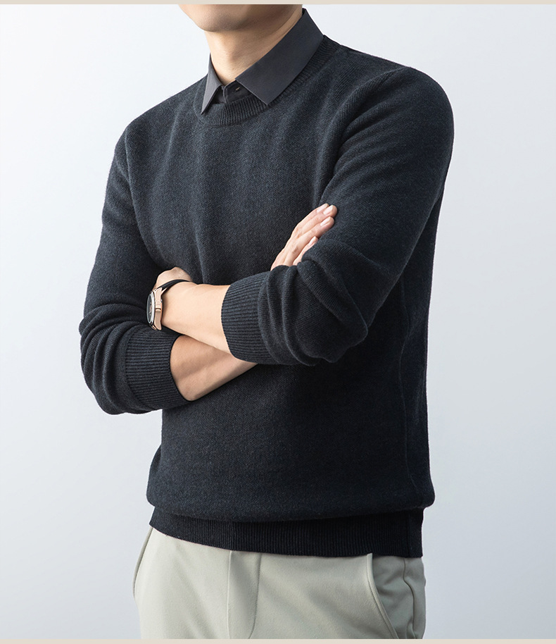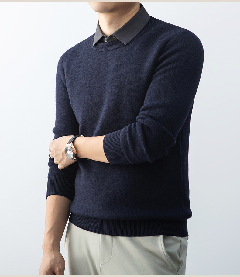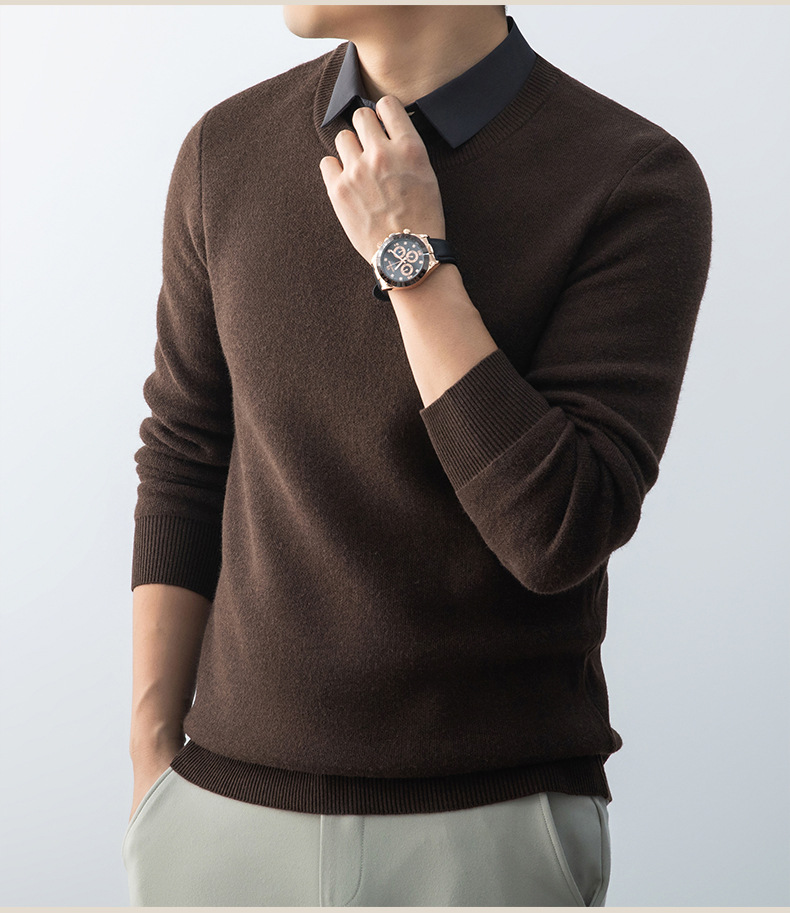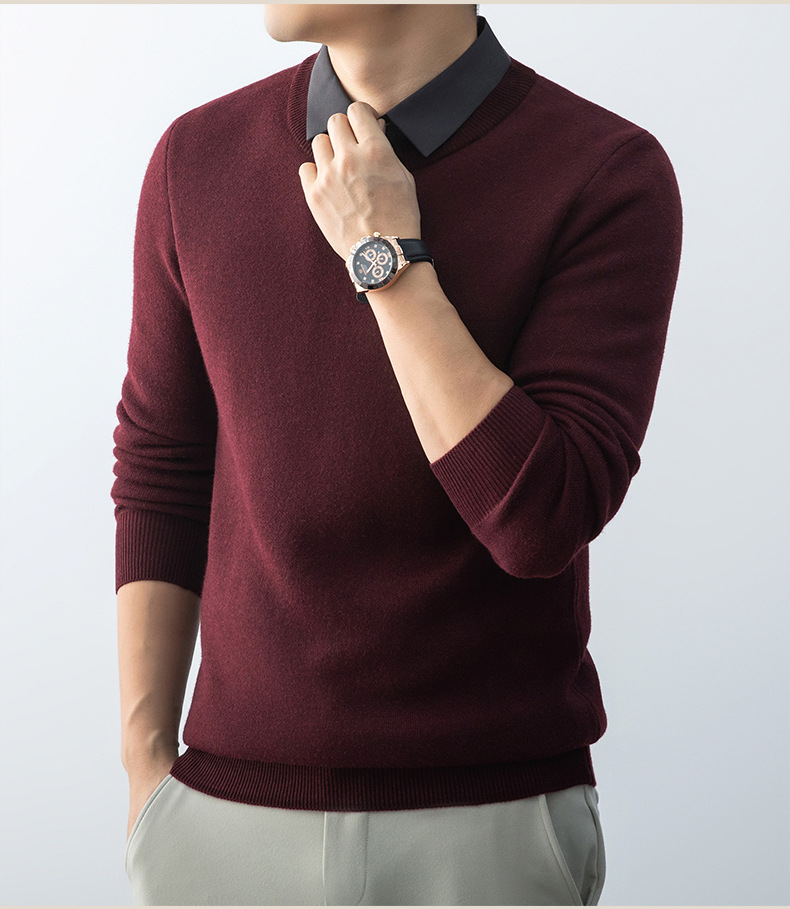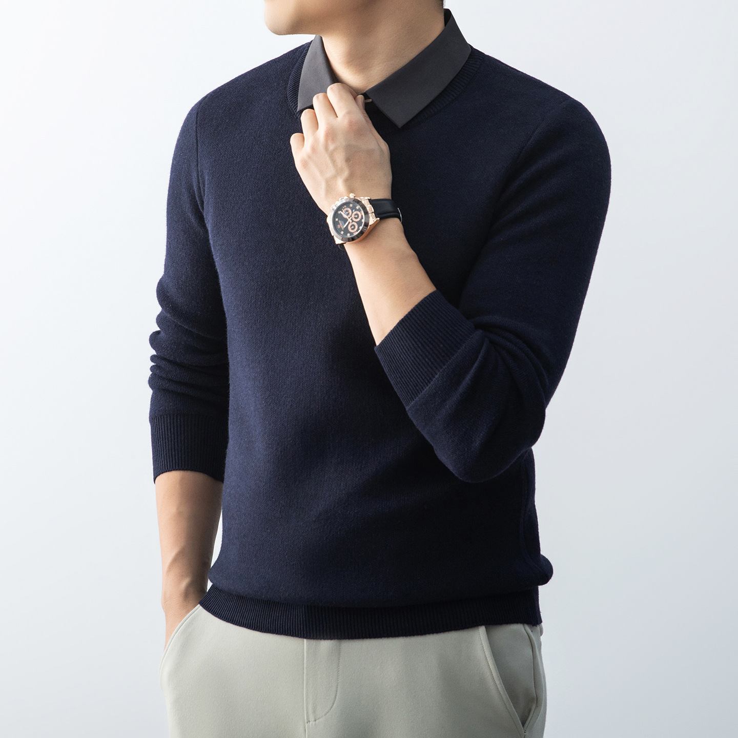 winter new men‘s fleece sweater shirt collar fake two pieces thickened men‘s clothing bottoming shirt knitwear