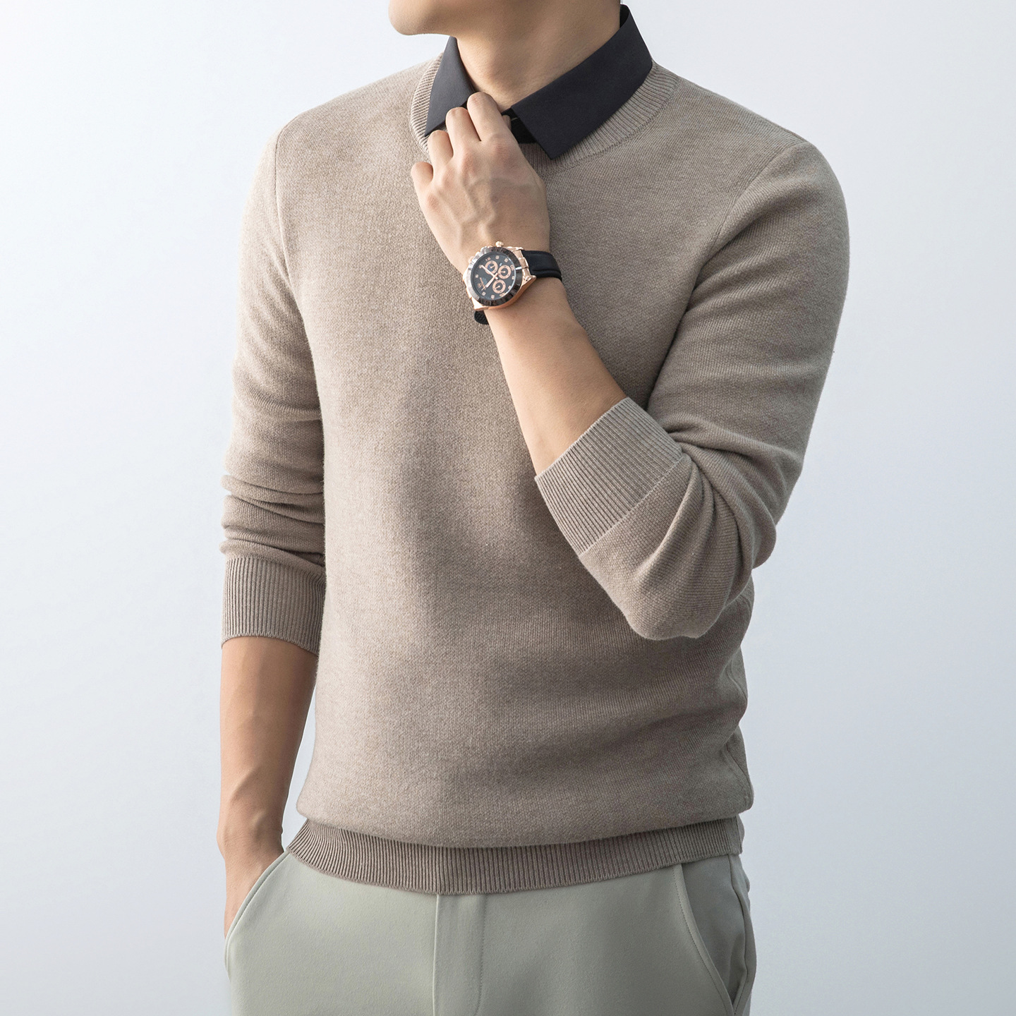 冬季新款男式加绒针织衫衬衫领假两件加厚男装打底衫针织衫代发