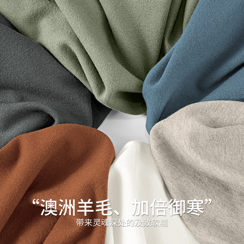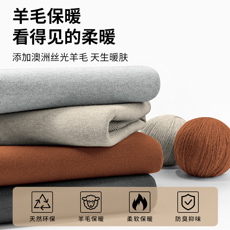 一体绒简约圆领男士毛衣秋冬季加绒加厚款保暖莫代尔针织打底衫男