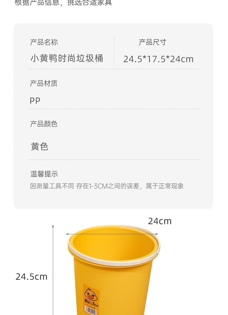 家用卫生间垃圾桶厨房客厅卧室塑料垃圾桶小黄鸭压圈垃圾桶