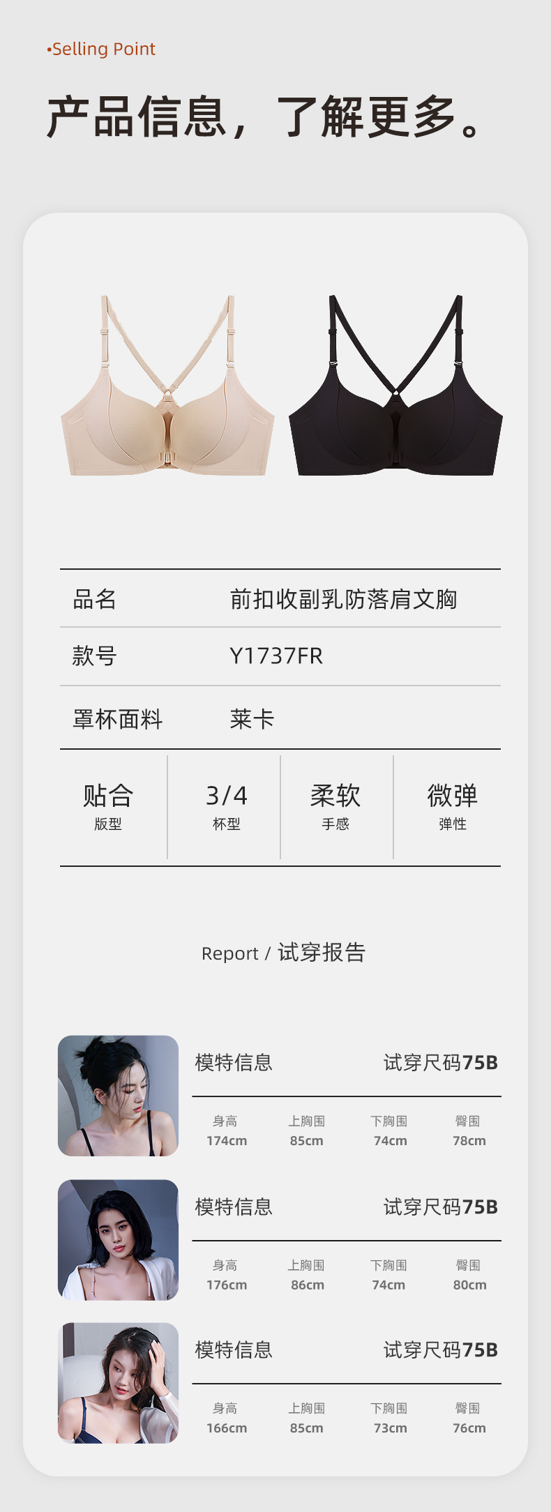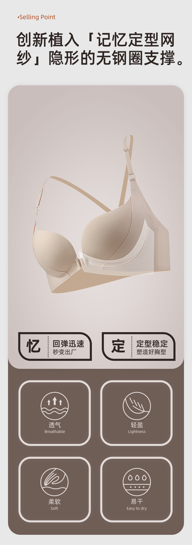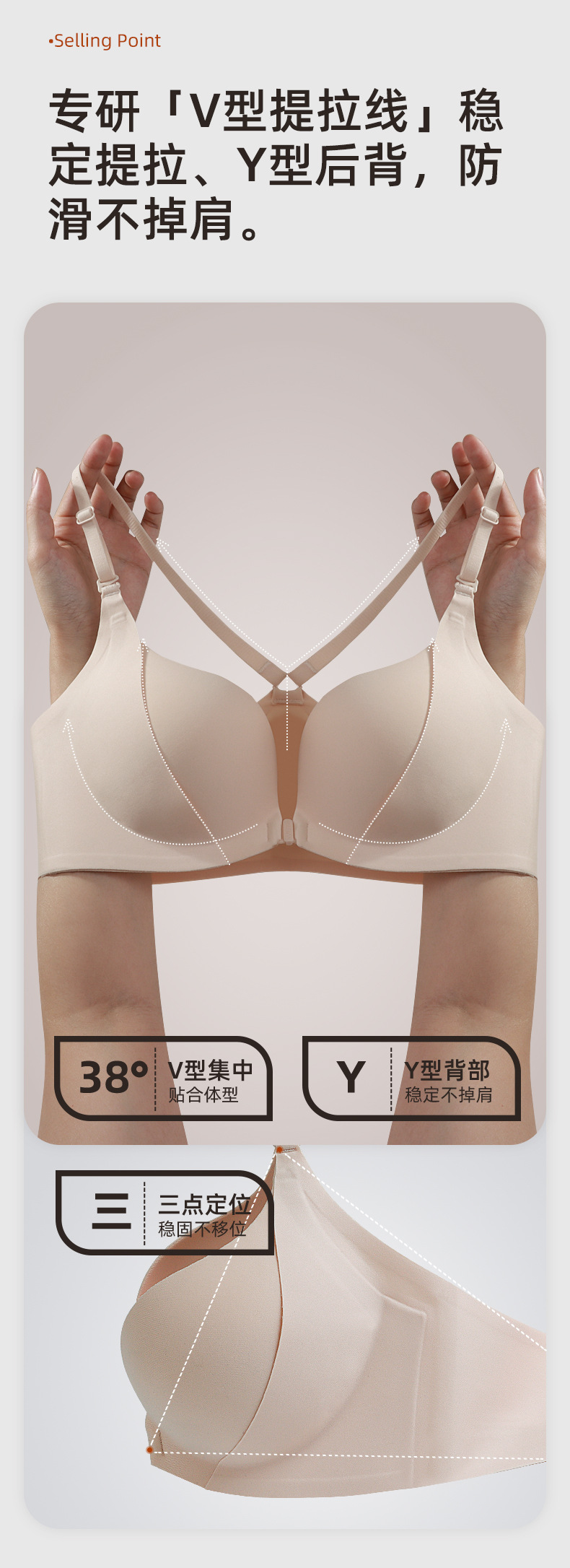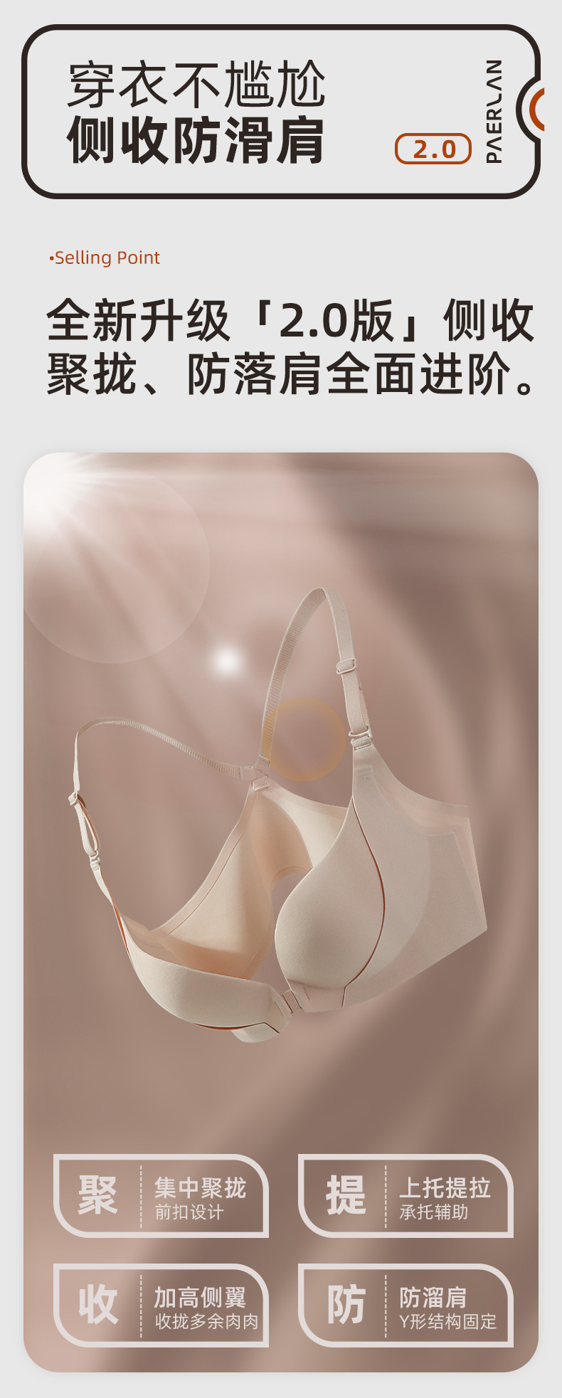 珀依兰 秋冬款前扣文胸聚拢防下垂胸罩 防溜肩收副乳舒适无痕内衣