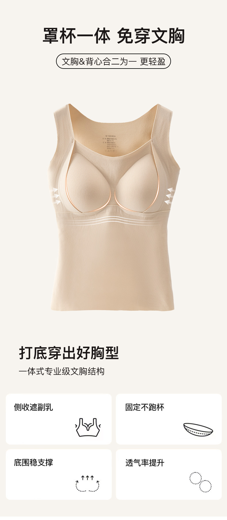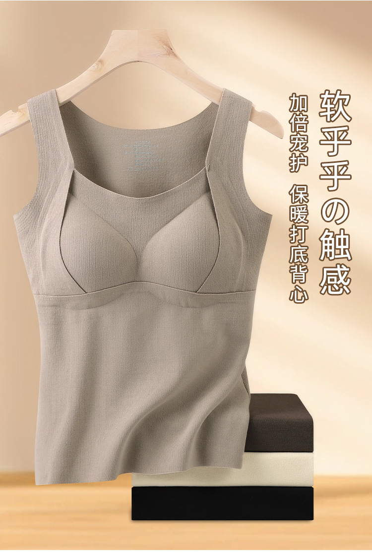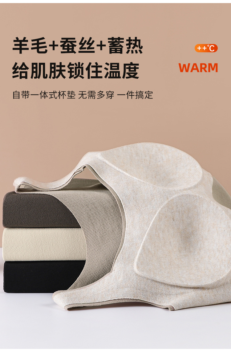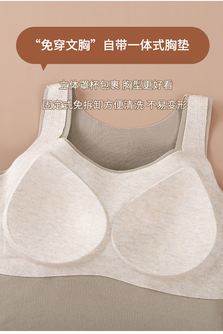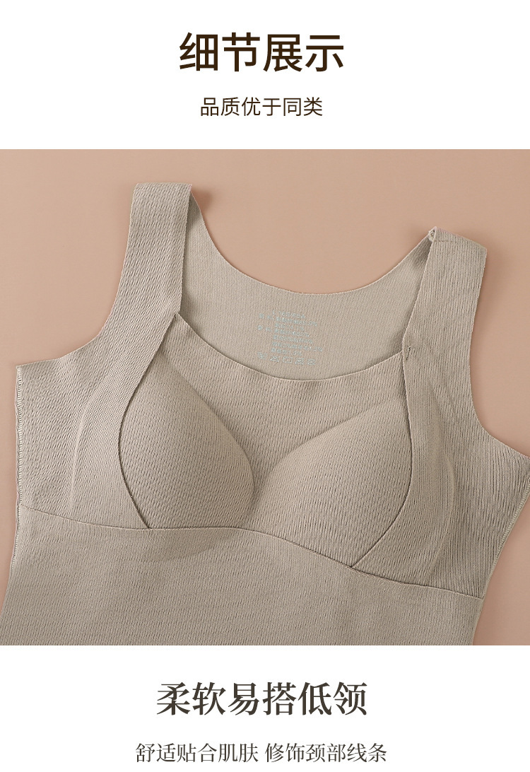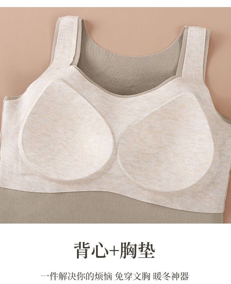 秋冬羊绒蚕丝保暖背心女带胸垫免穿文胸无痕一体式打底衫保暖内衣