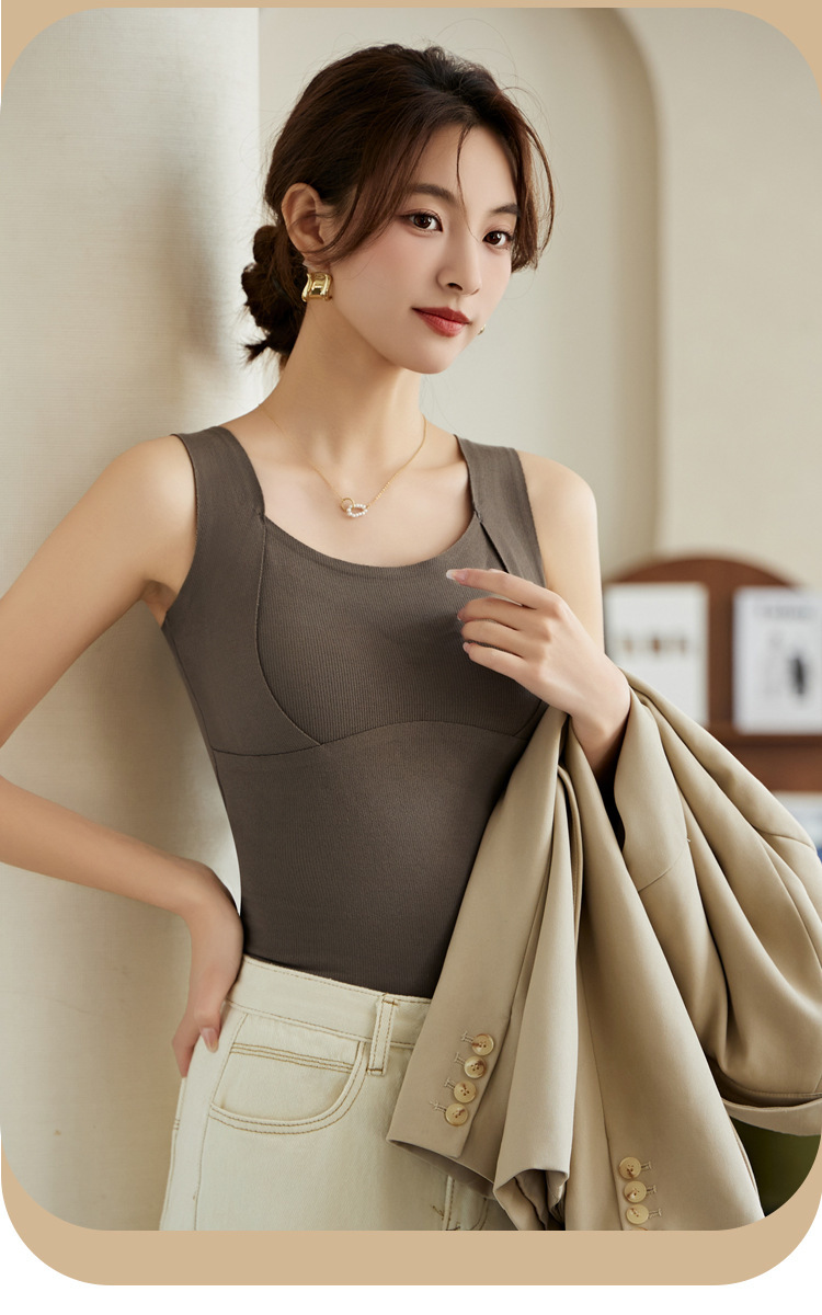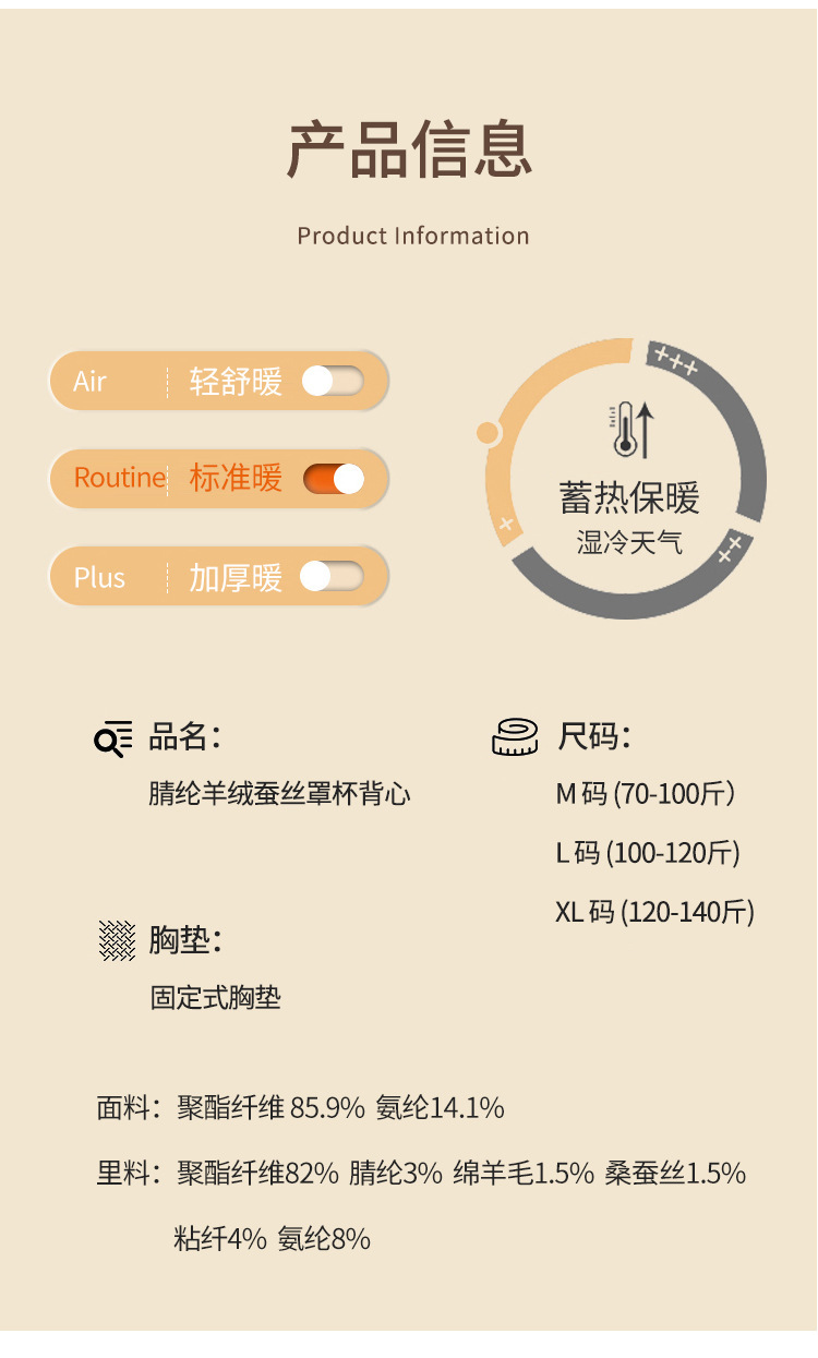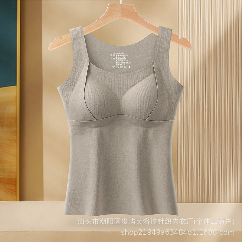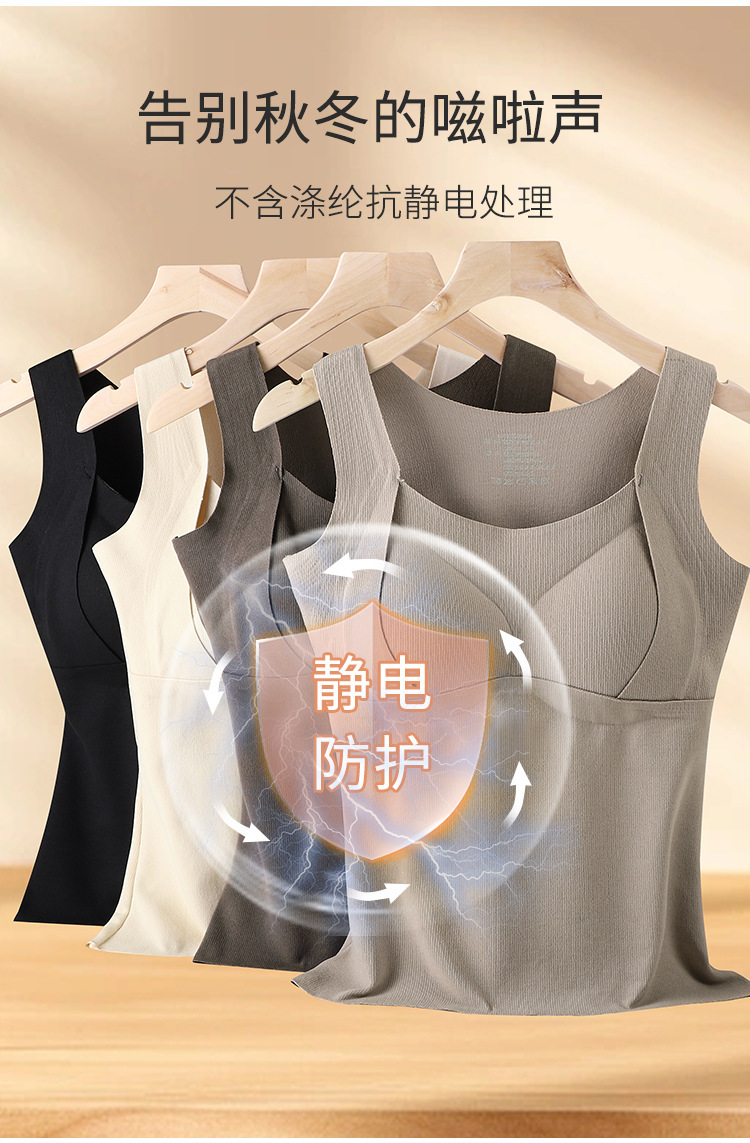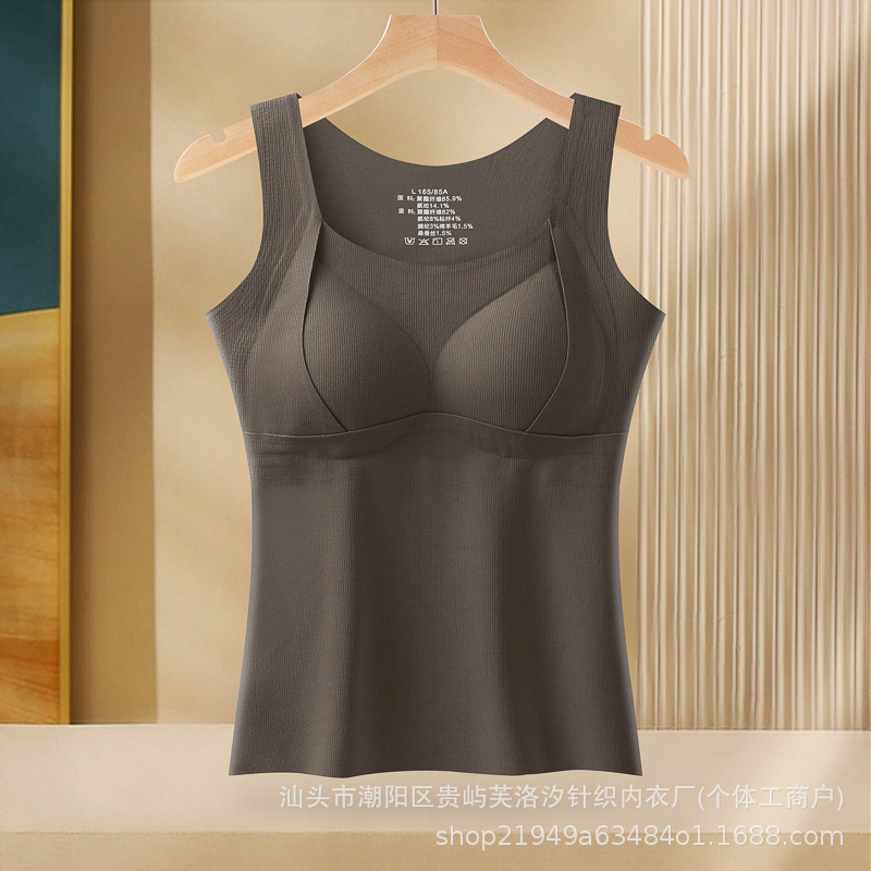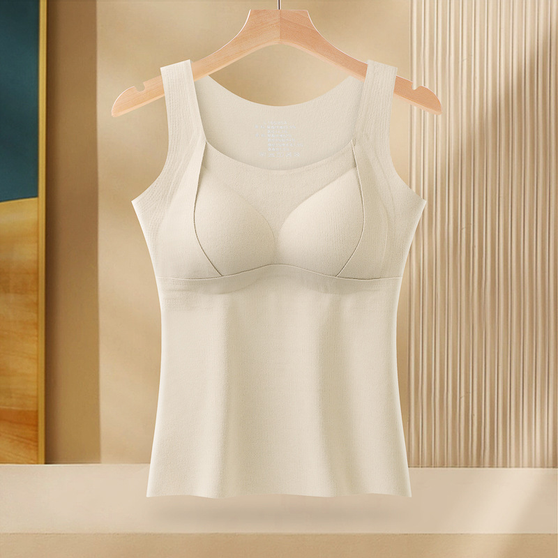 秋冬羊绒蚕丝保暖背心女带胸垫免穿文胸无痕一体式打底衫保暖内衣