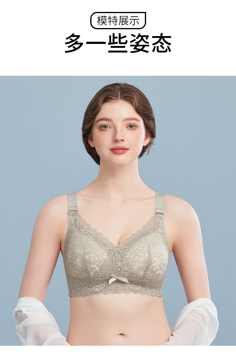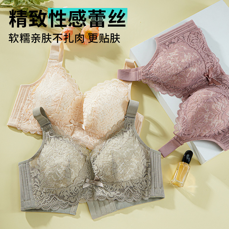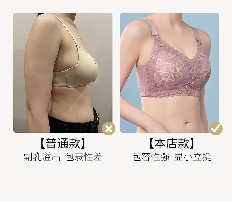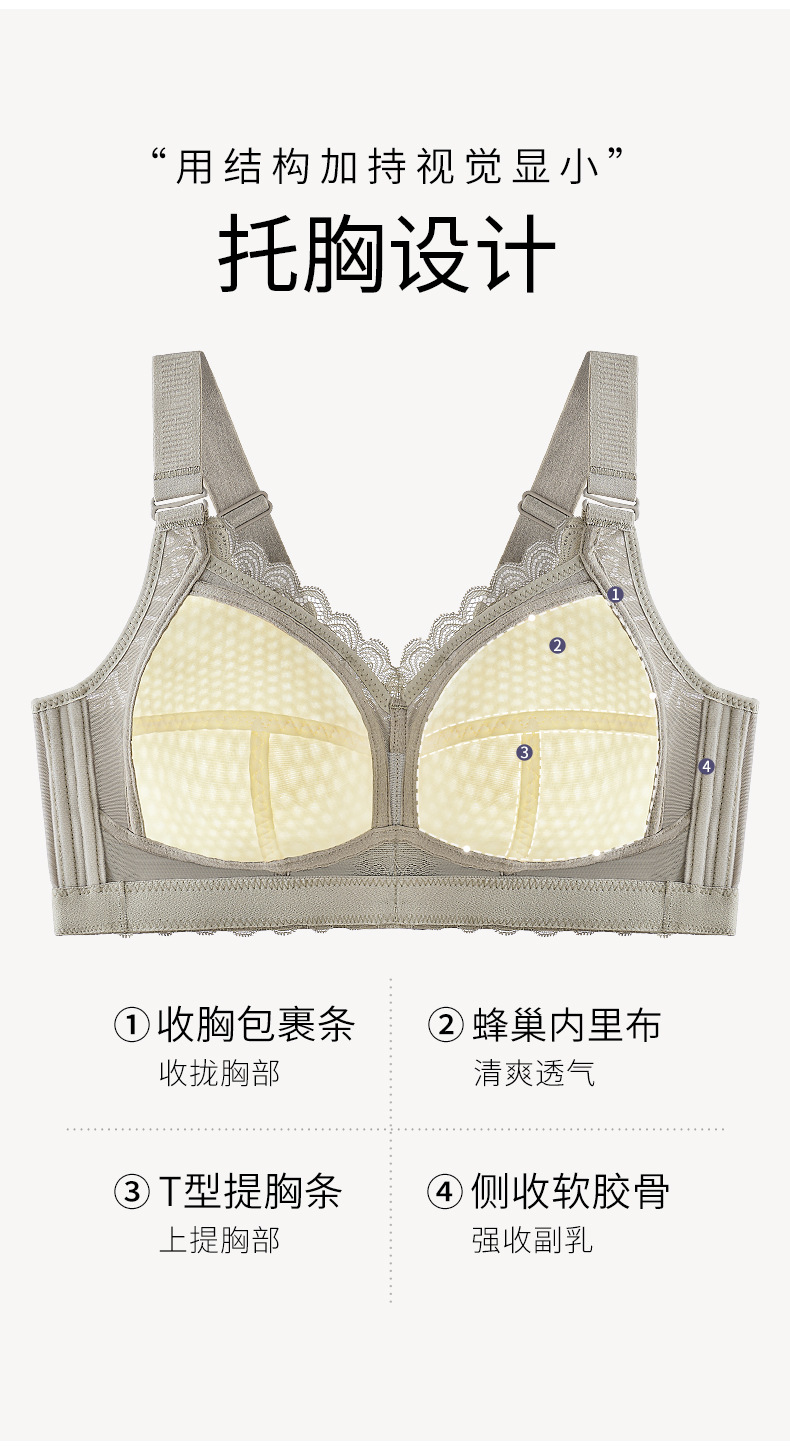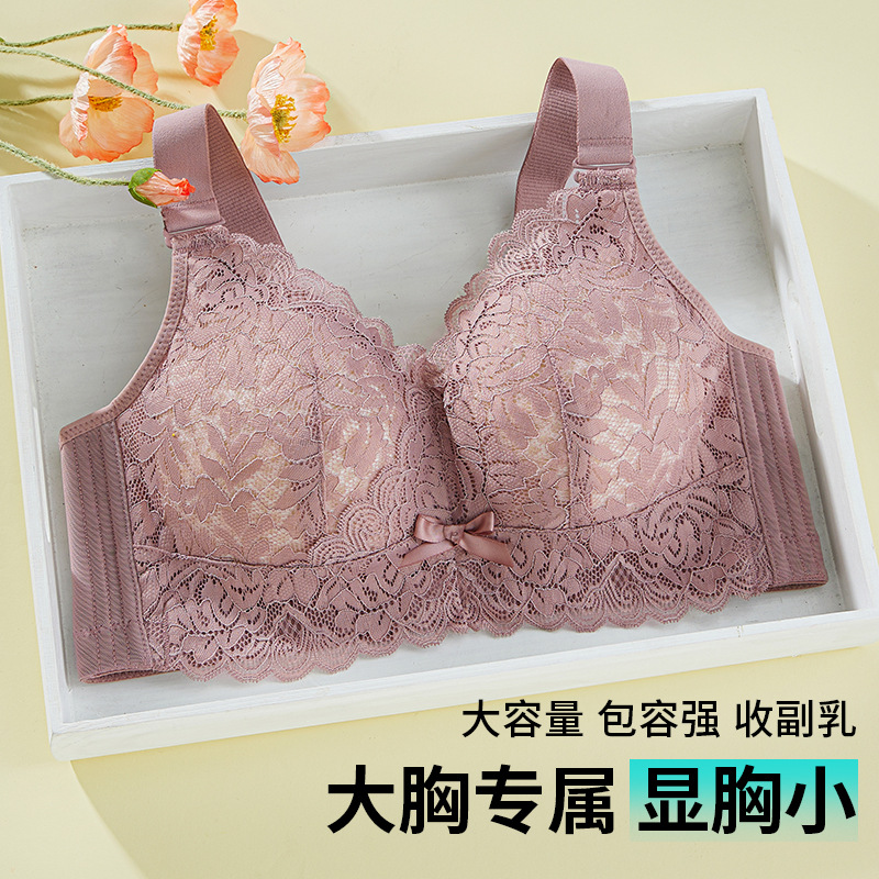 大胸显小内衣女薄款大码无钢圈聚拢上托防下垂收副乳全罩杯文胸罩