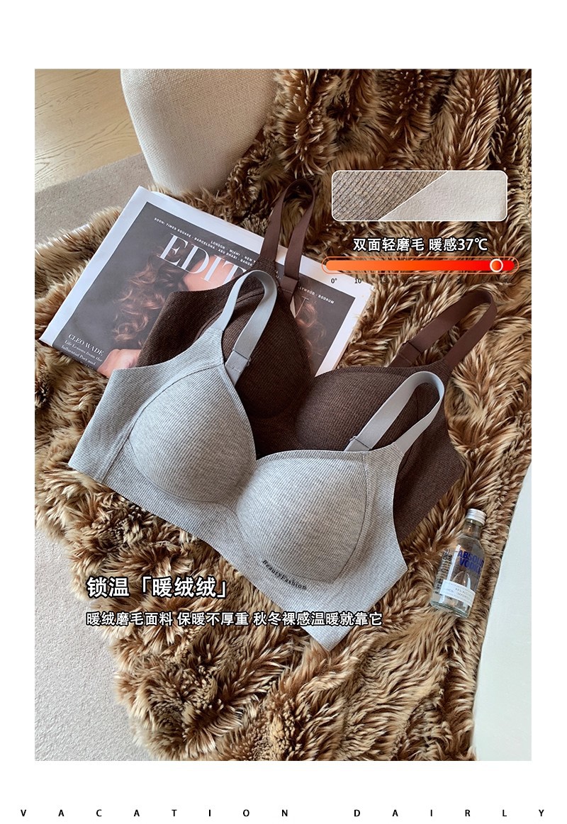 秋冬无痕内衣女磨毛保暖收副乳防下垂软支撑提拉聚拢舒适螺纹文胸