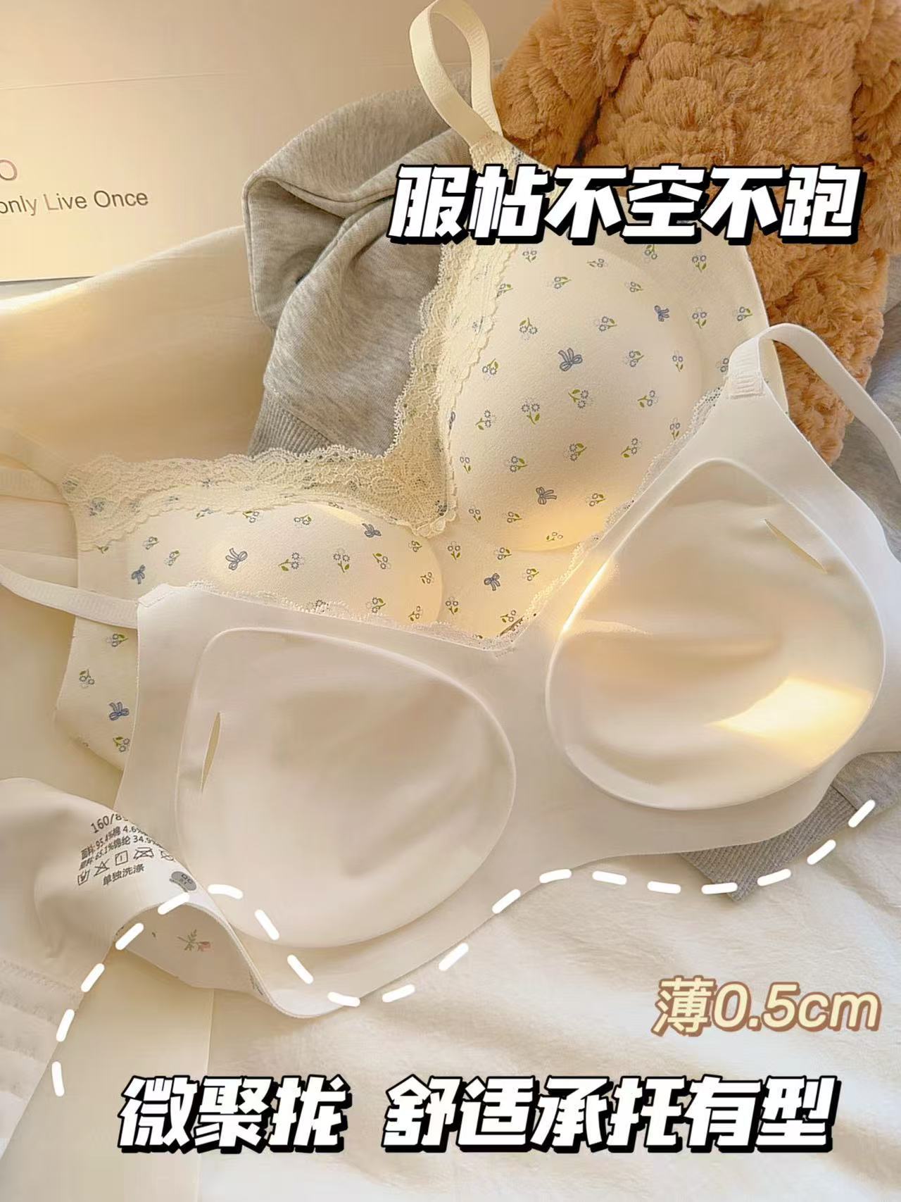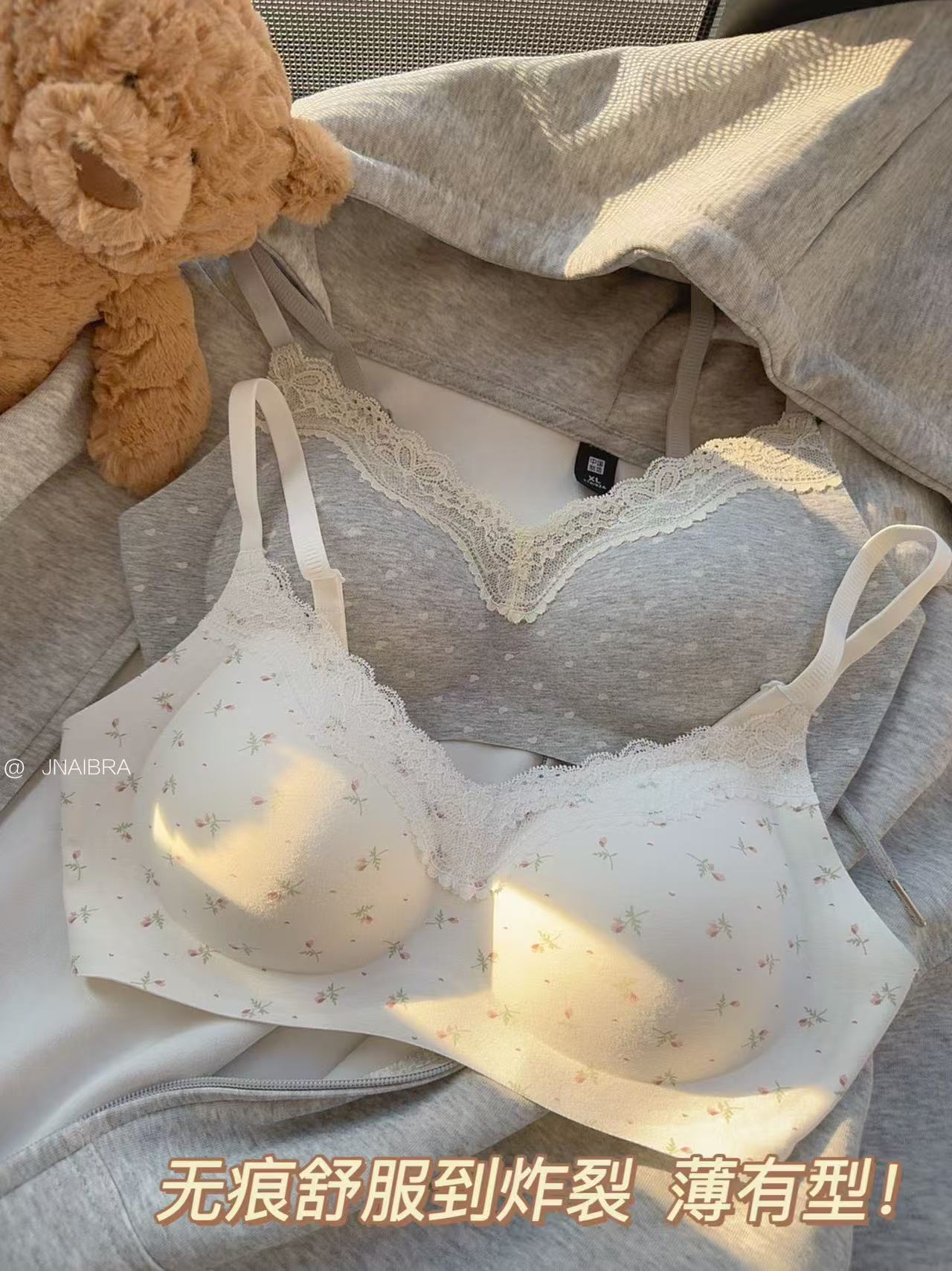 纯棉的!!小胸聚拢无痕内衣女文胸软支撑收副乳无钢圈文胸罩薄款