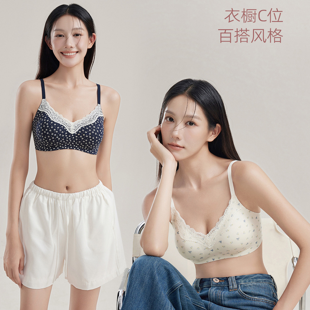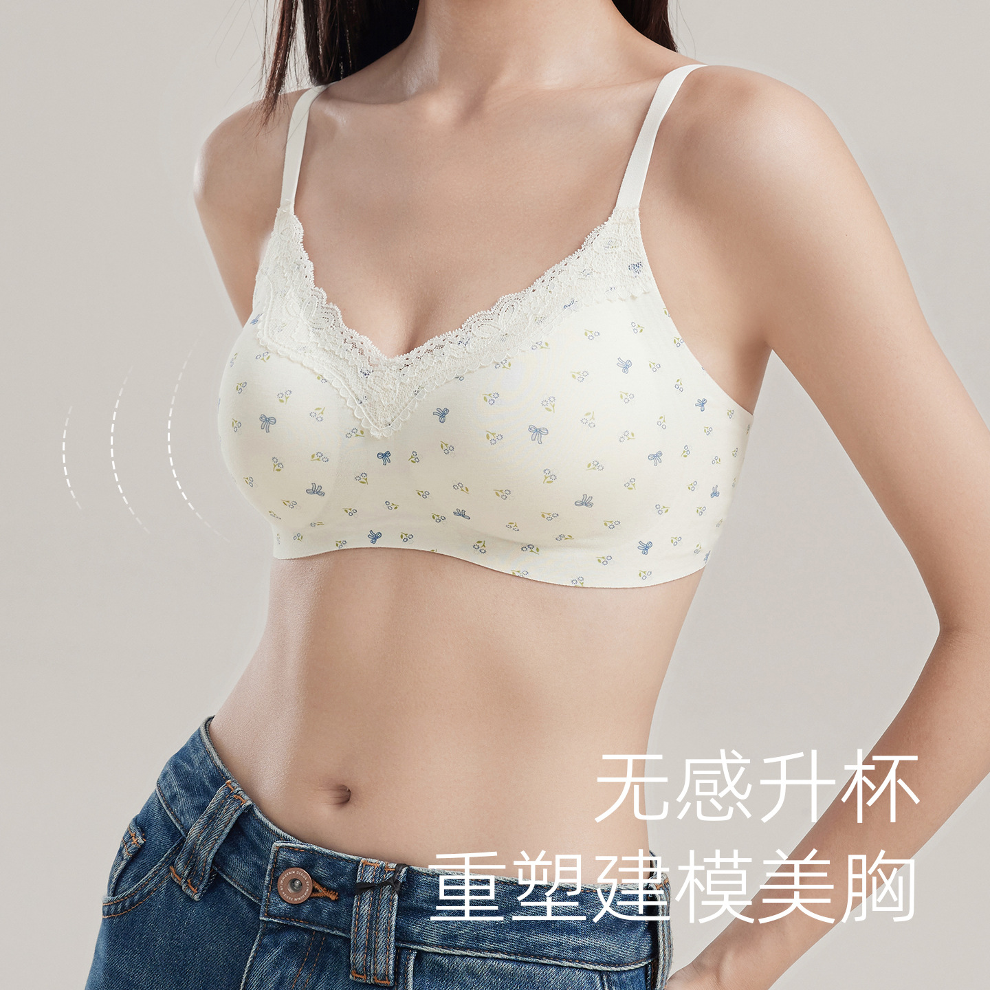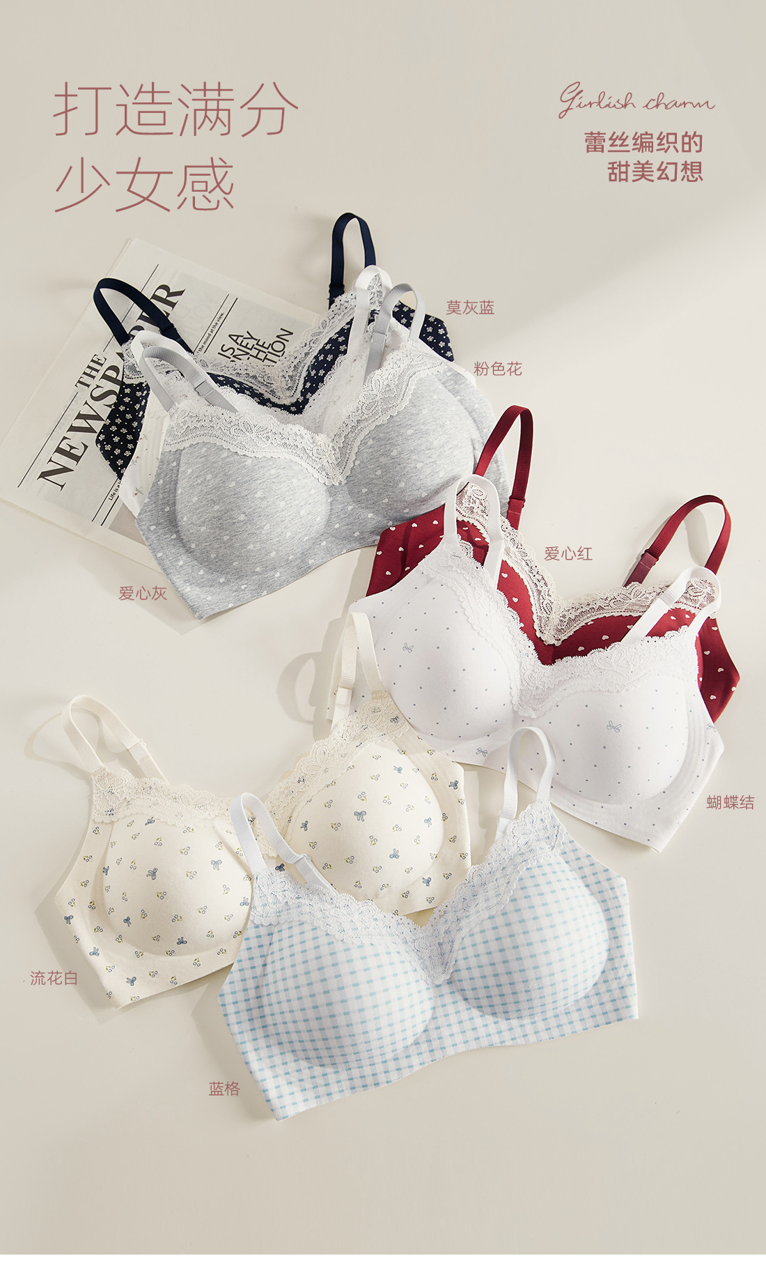 纯棉甜美减龄蕾丝内衣中薄小胸聚拢舒适固定杯透气学生纯欲文胸罩
