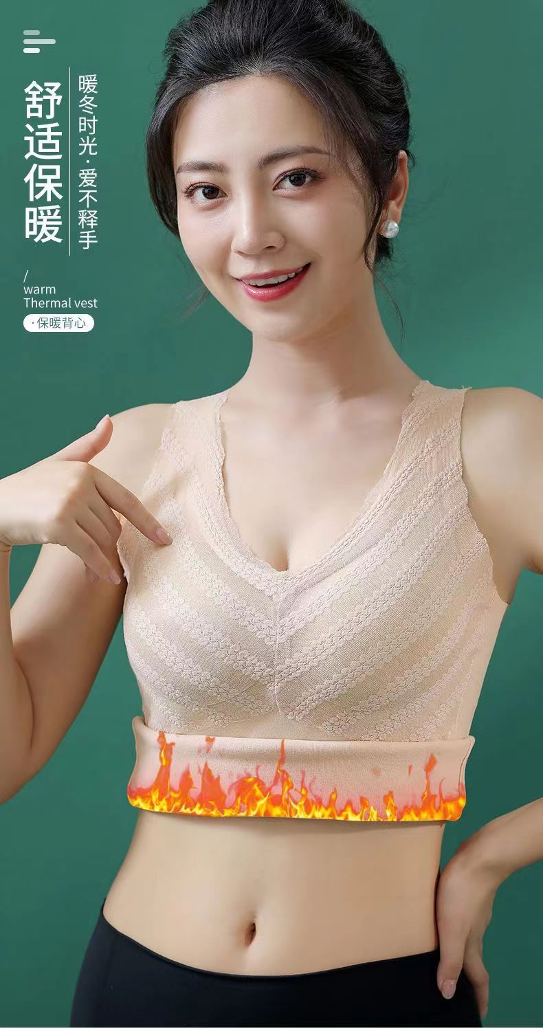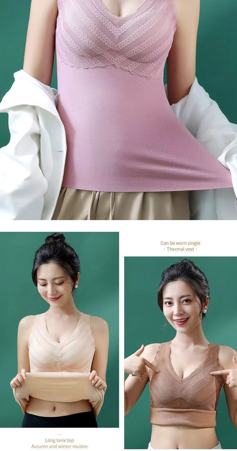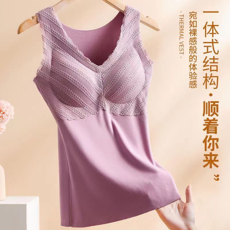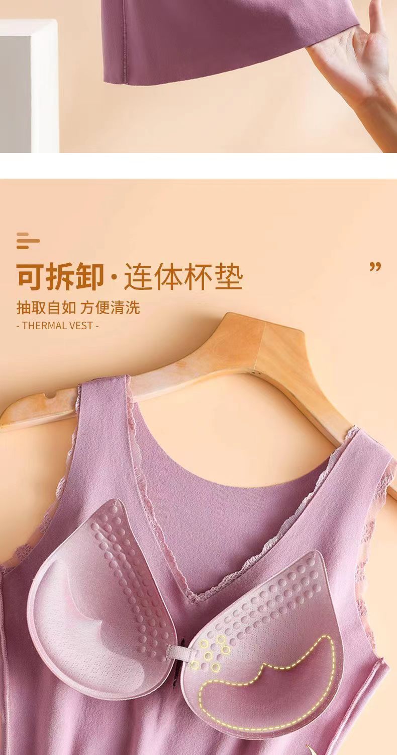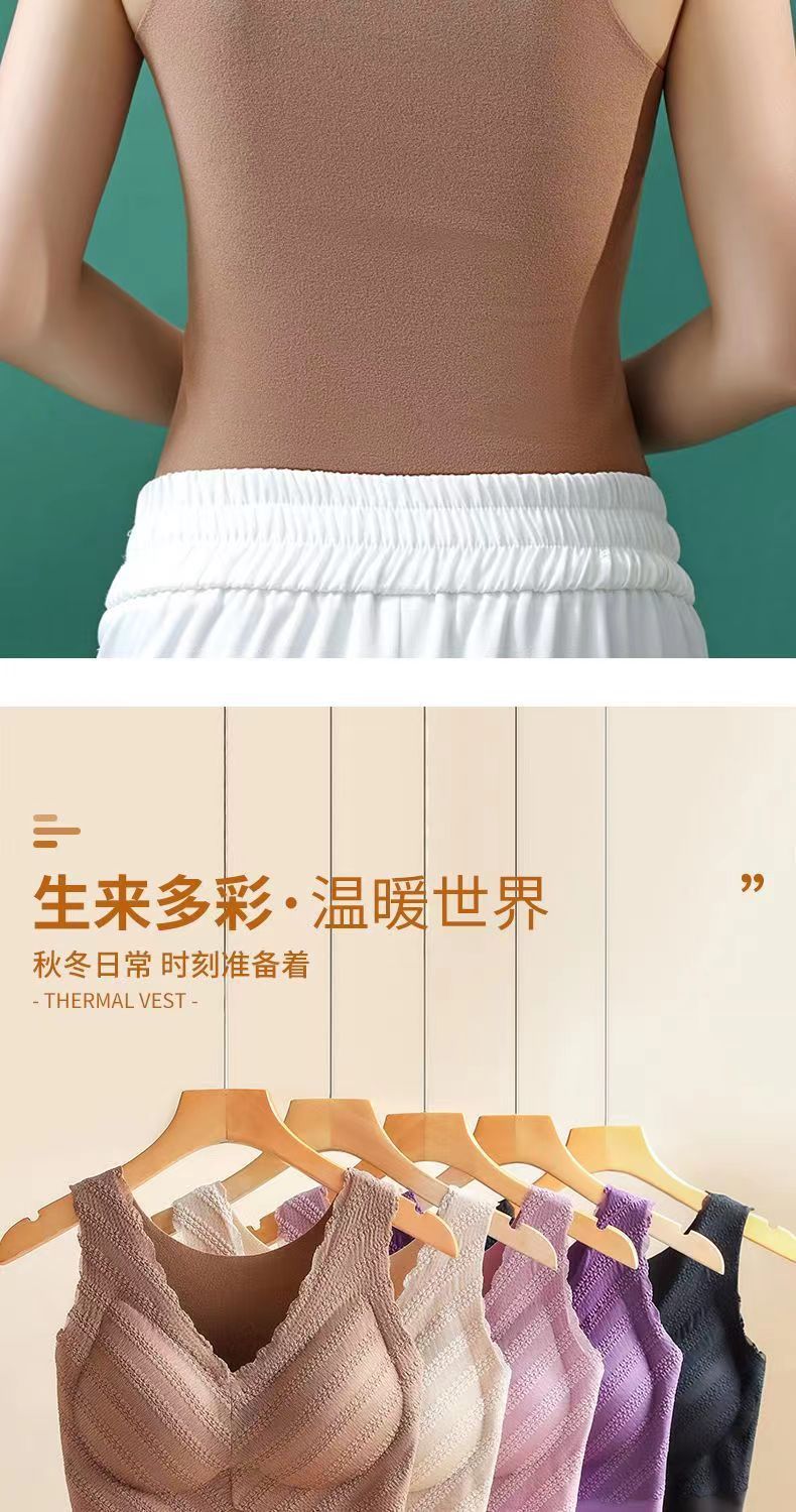 亲氧33德绒加绒加厚保暖背心女士带胸垫加厚无痕防寒保暖内衣女