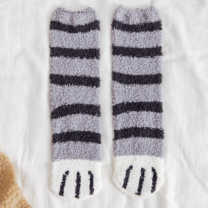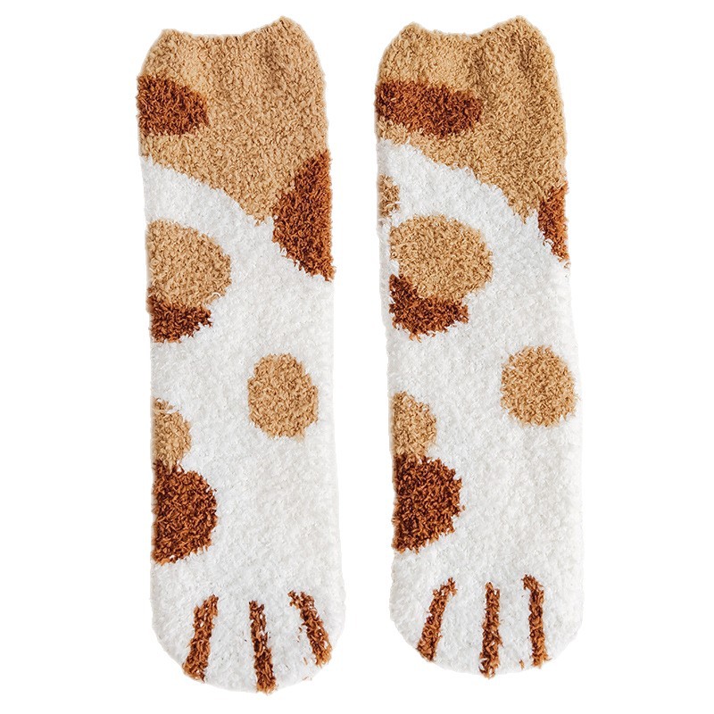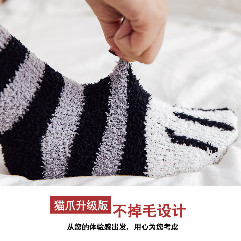 袜子女中筒珊瑚绒猫爪袜不掉毛睡眠袜月子地板袜秋冬加厚袜子批发