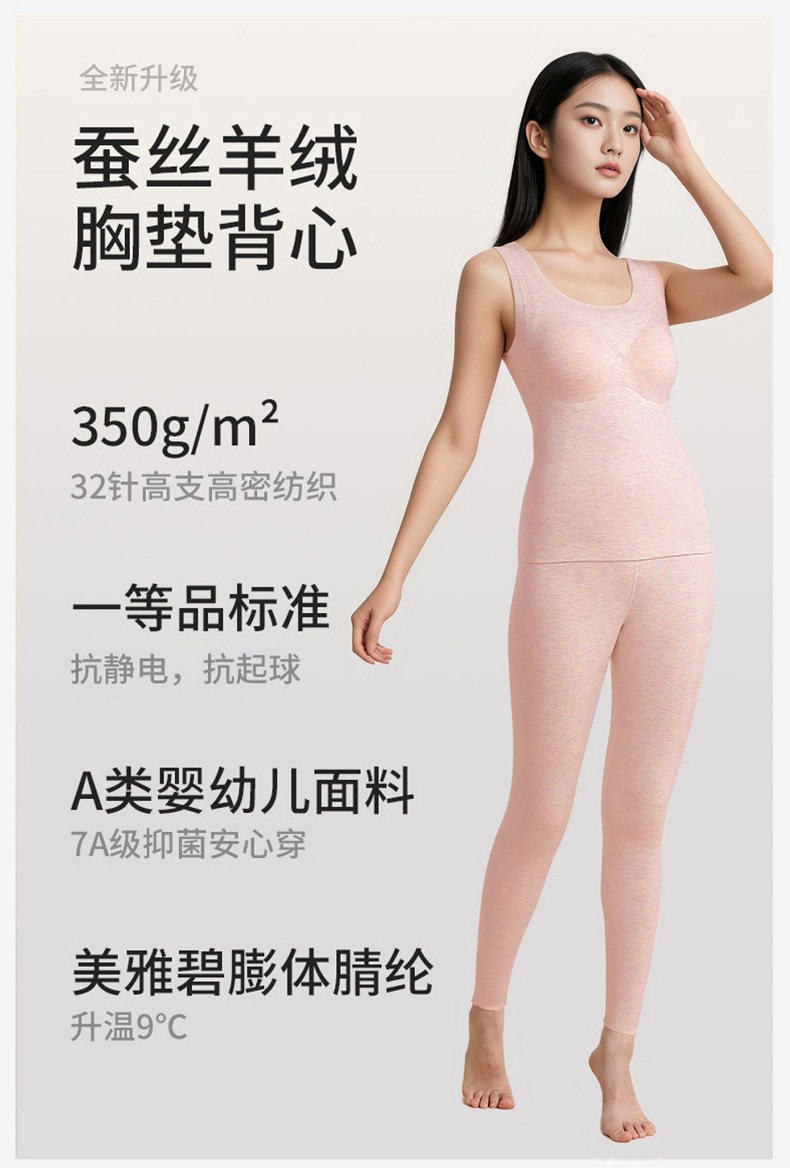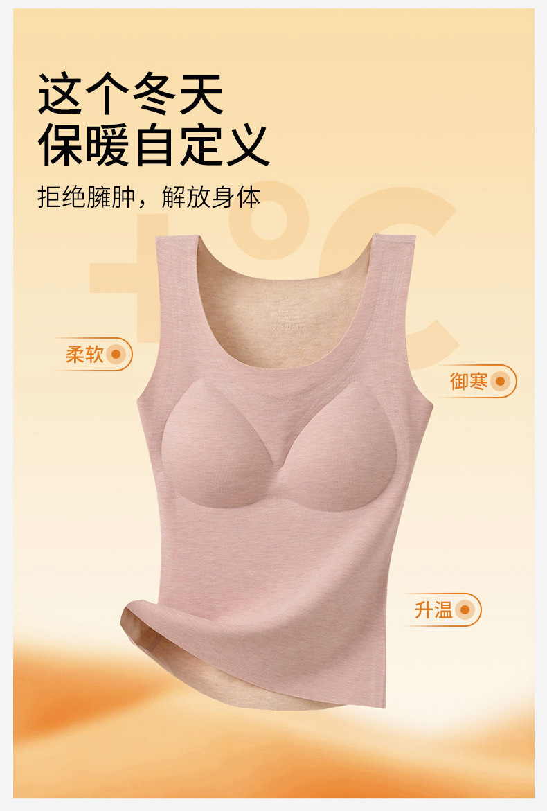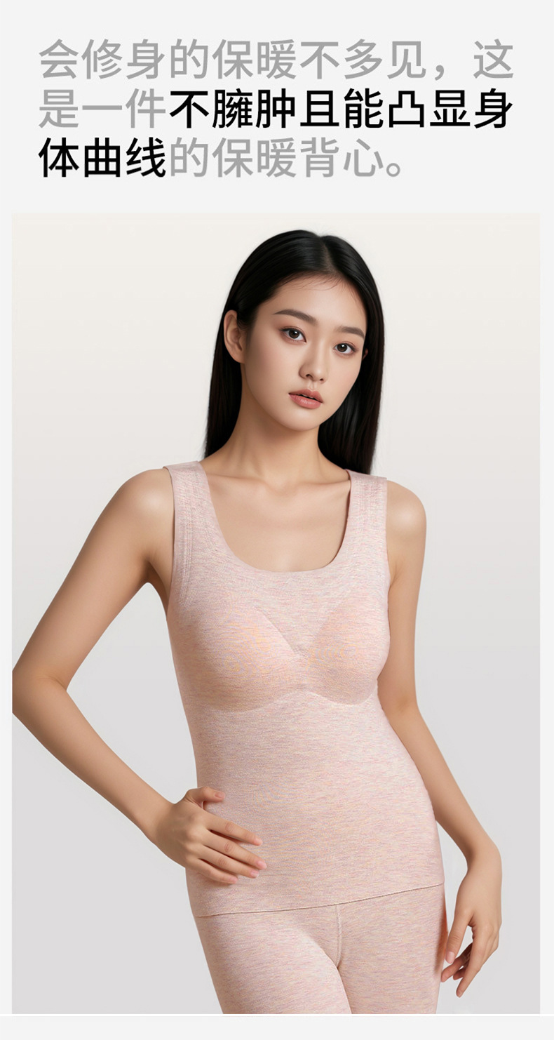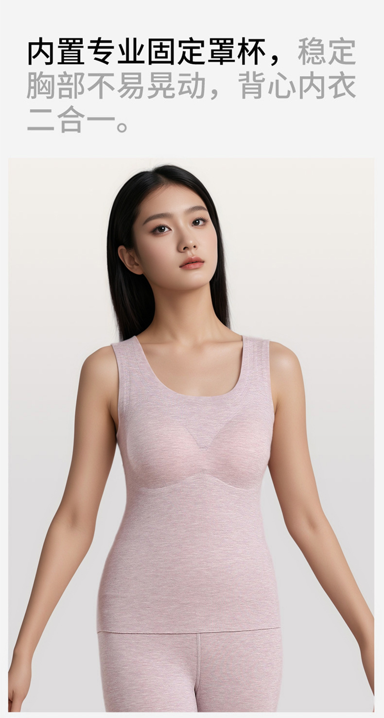A类蚕丝羊绒德绒保暖背心女7A免文胸一体背心加绒带胸垫内衣
