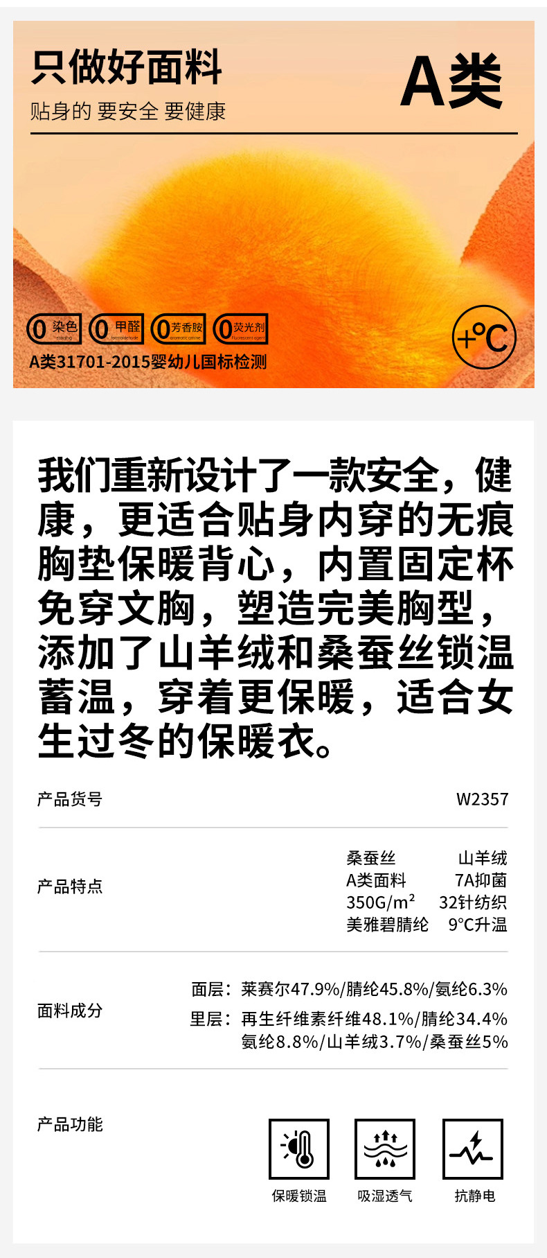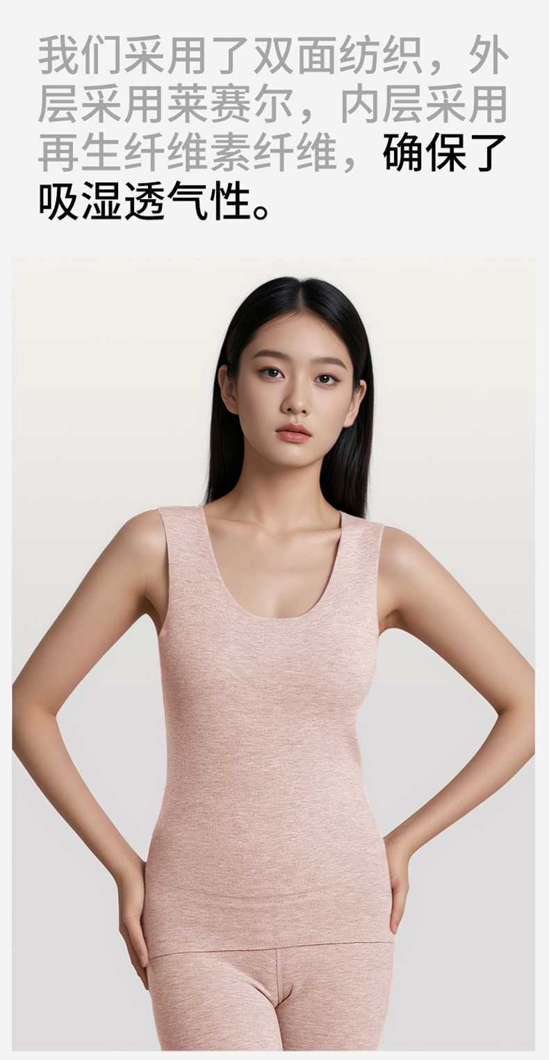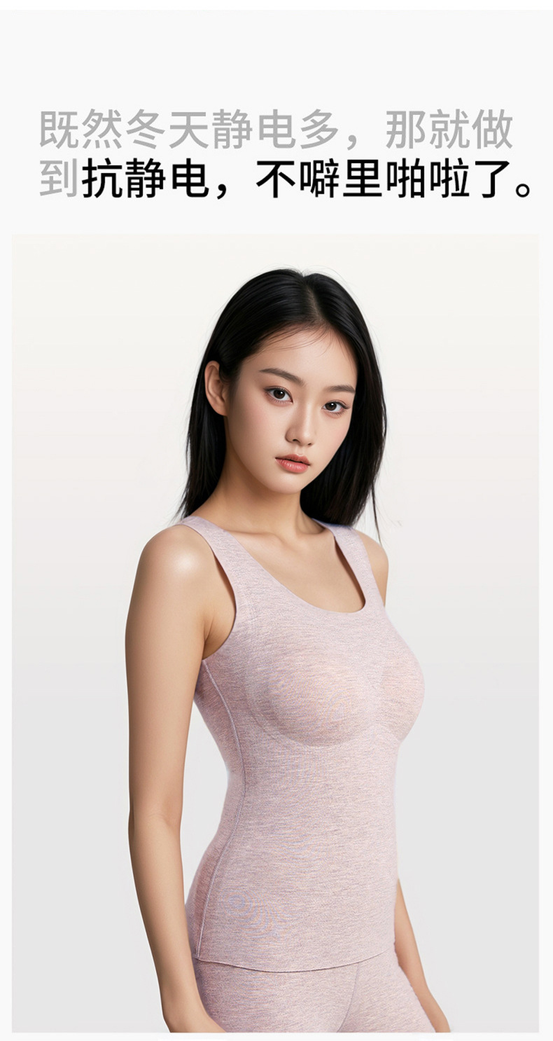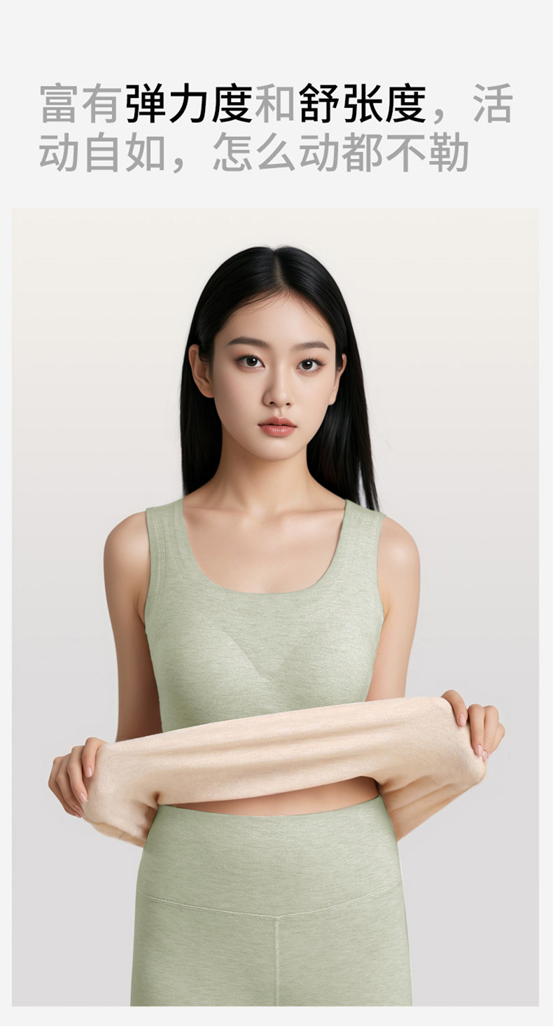 A类蚕丝羊绒德绒保暖背心女7A免文胸一体背心加绒带胸垫内衣
