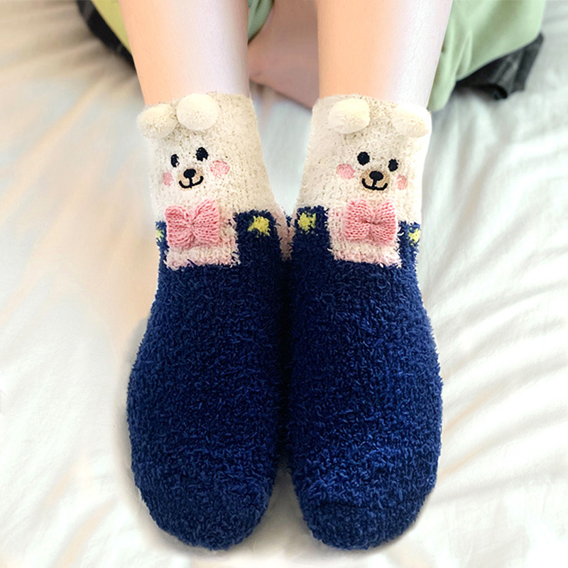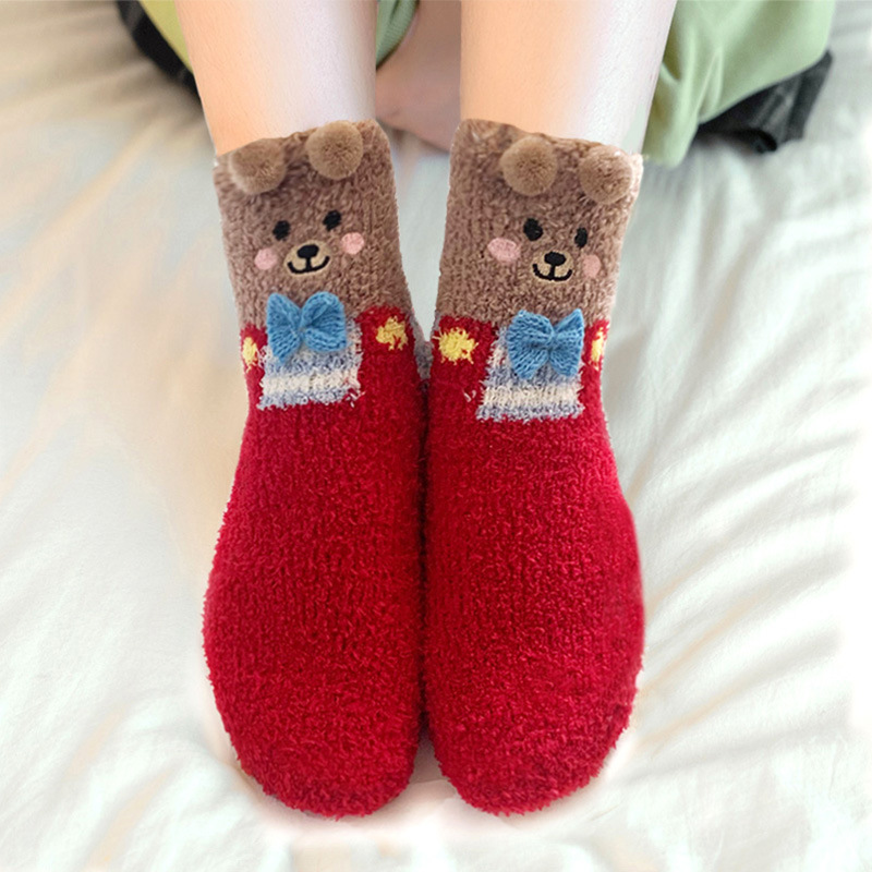 丑萌搞怪袜子女中筒袜秋冬地板睡眠袜珊瑚绒家居毛毛茸茸可爱保暖