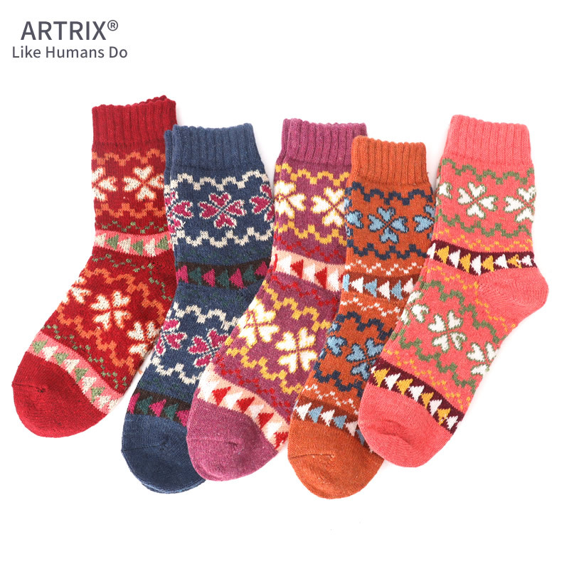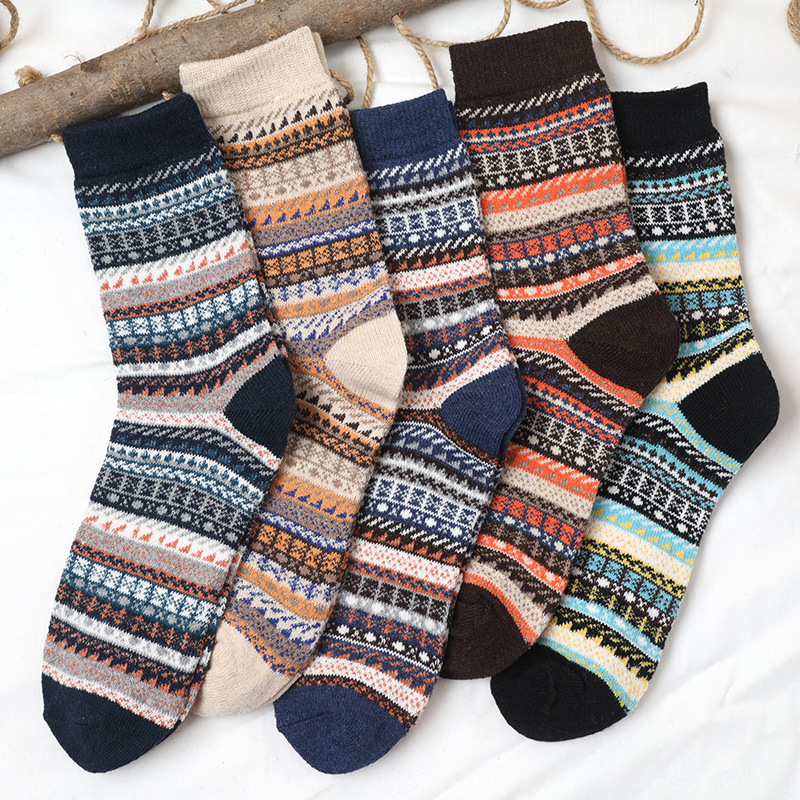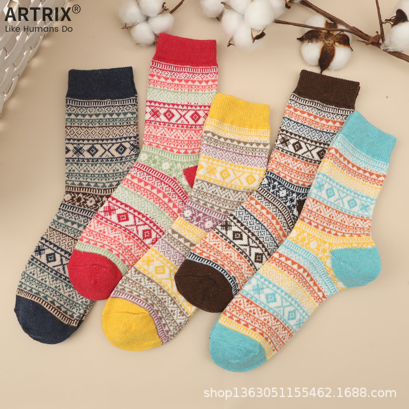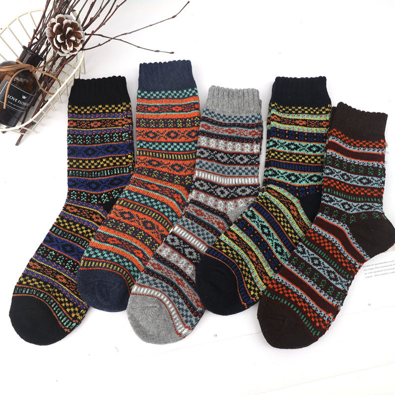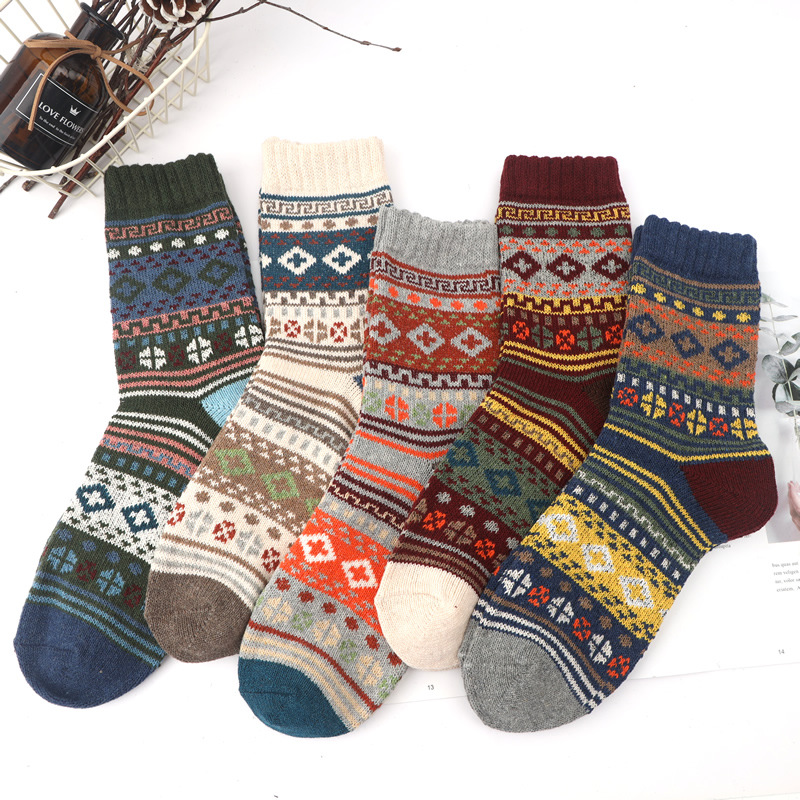 羊毛袜双路粗针海宁袜子十字花女袜中筒袜毛线袜子保暖加厚厂家