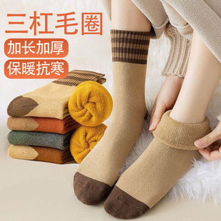 冬季袜子加厚加绒保暖雪地袜居家地板袜男女美拉德中筒毛绒袜子