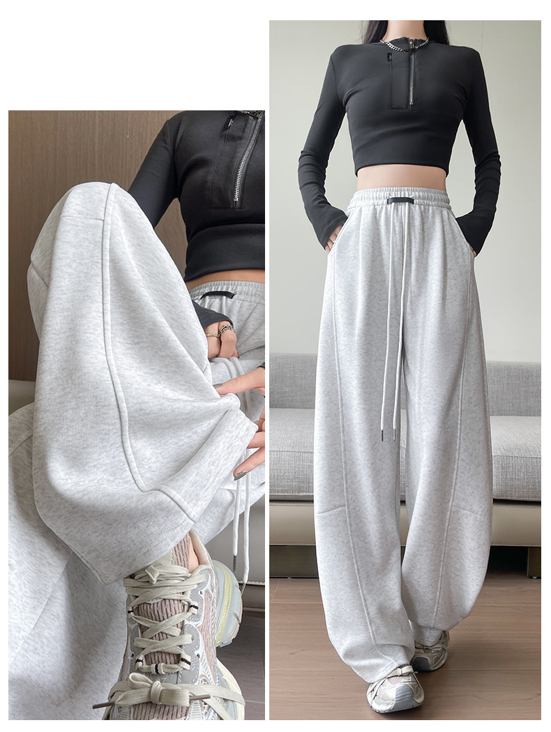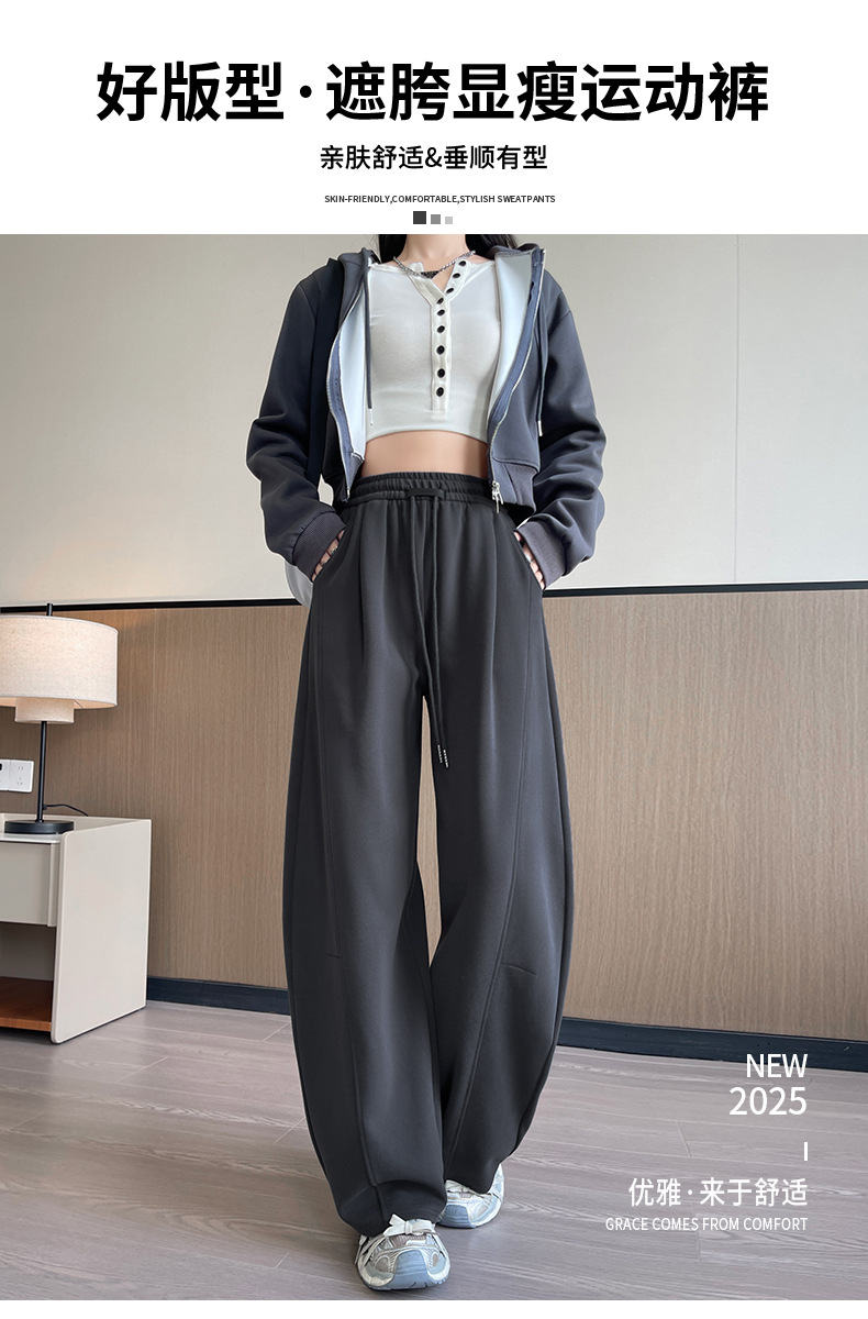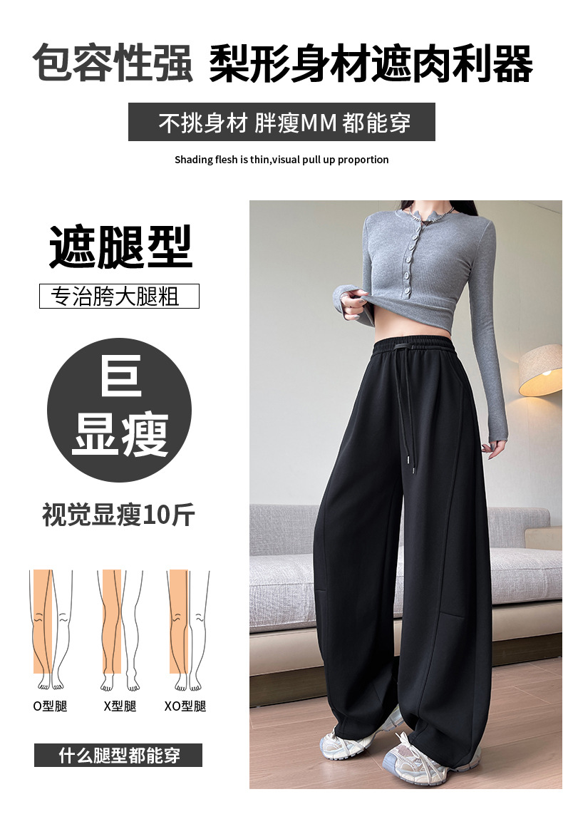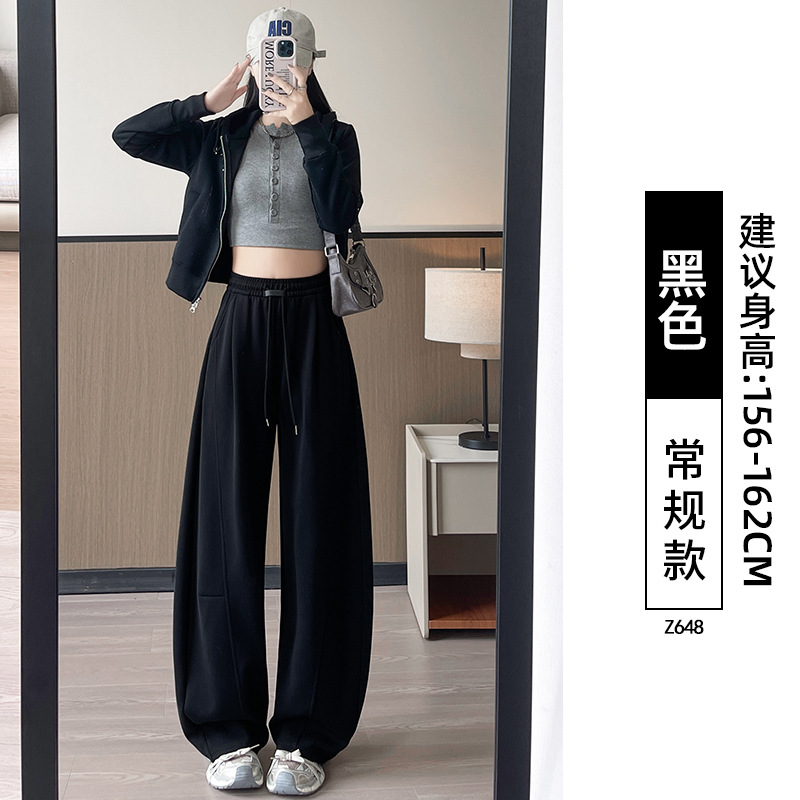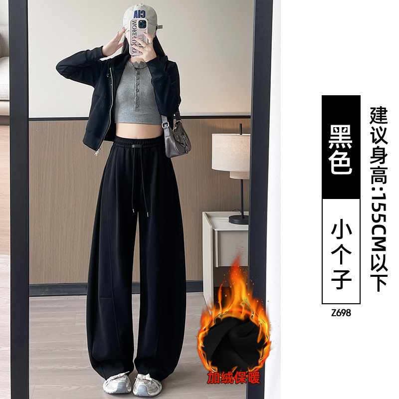 黑标弯刀运动裤子女款秋冬季2025新款高腰大码小个子阔腿加绒卫裤