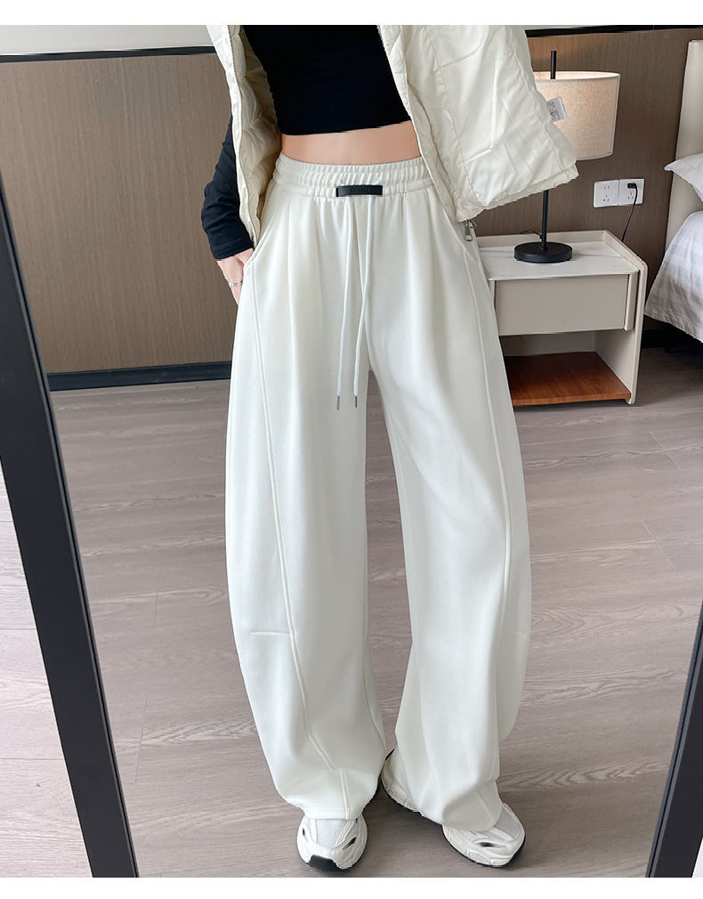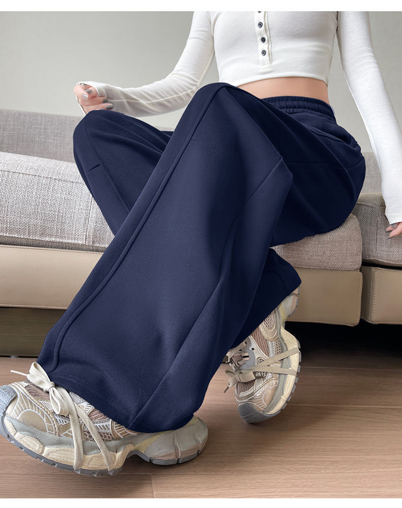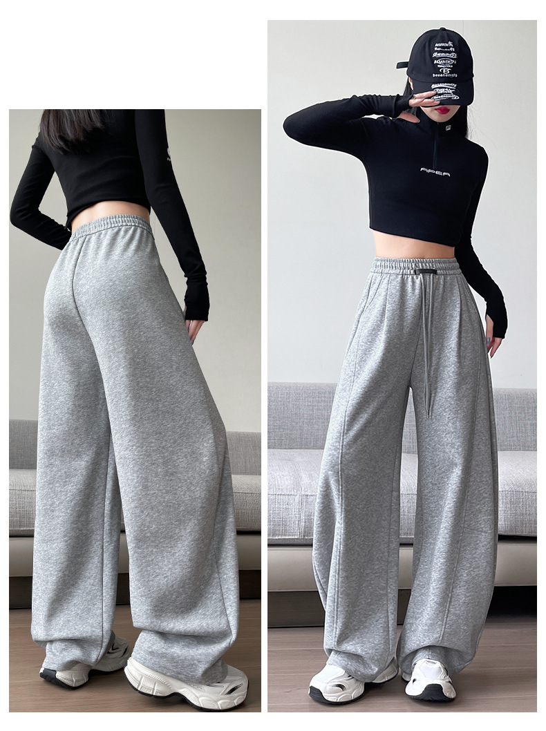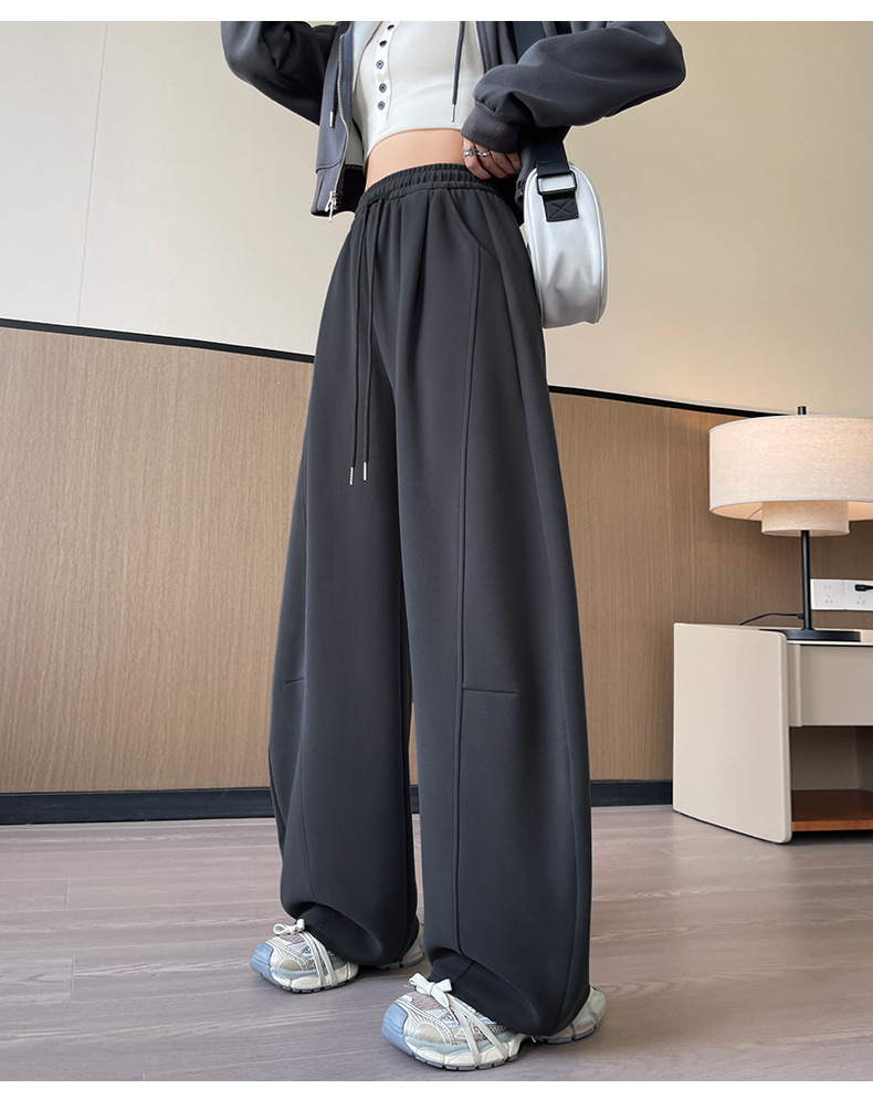 黑标弯刀运动裤子女款秋冬季2025新款高腰大码小个子阔腿加绒卫裤