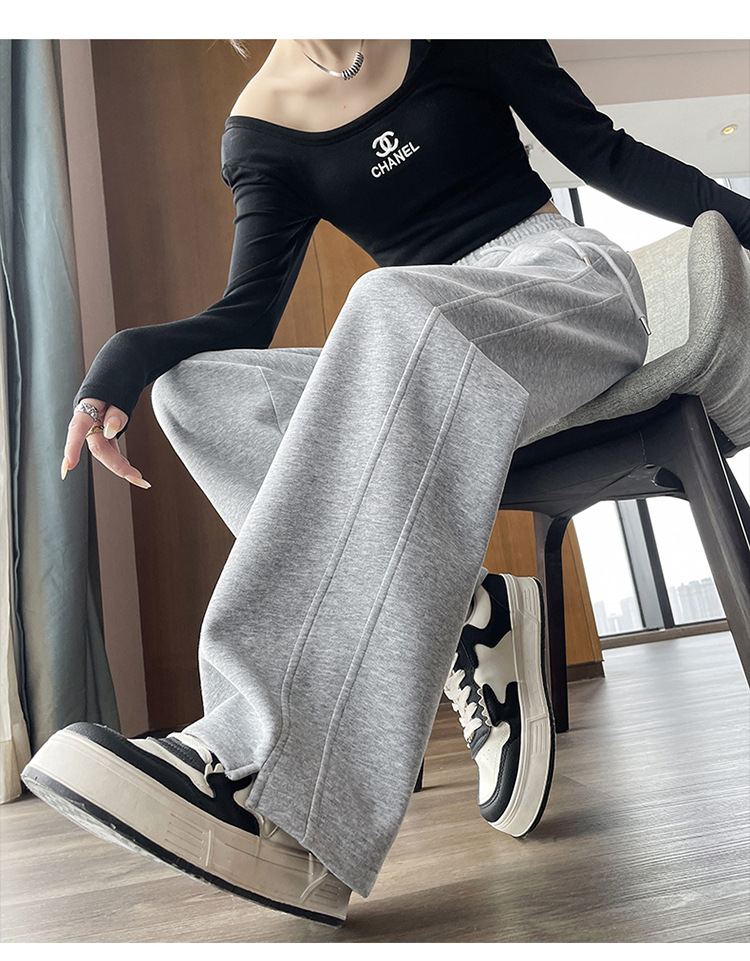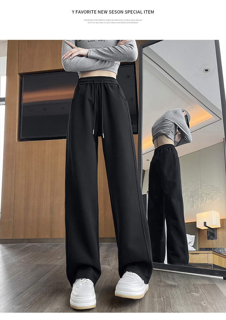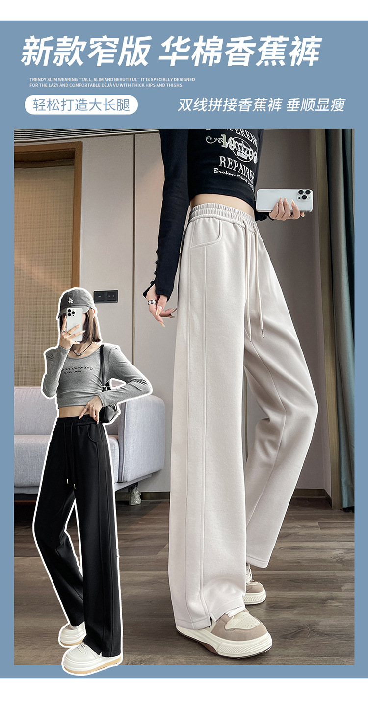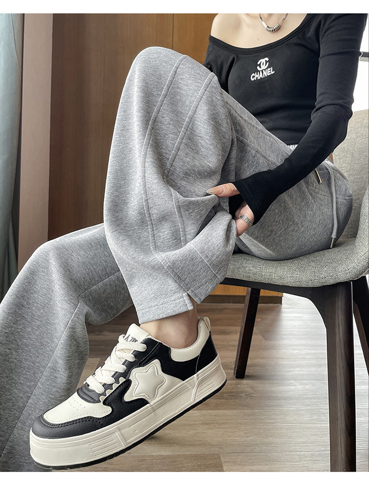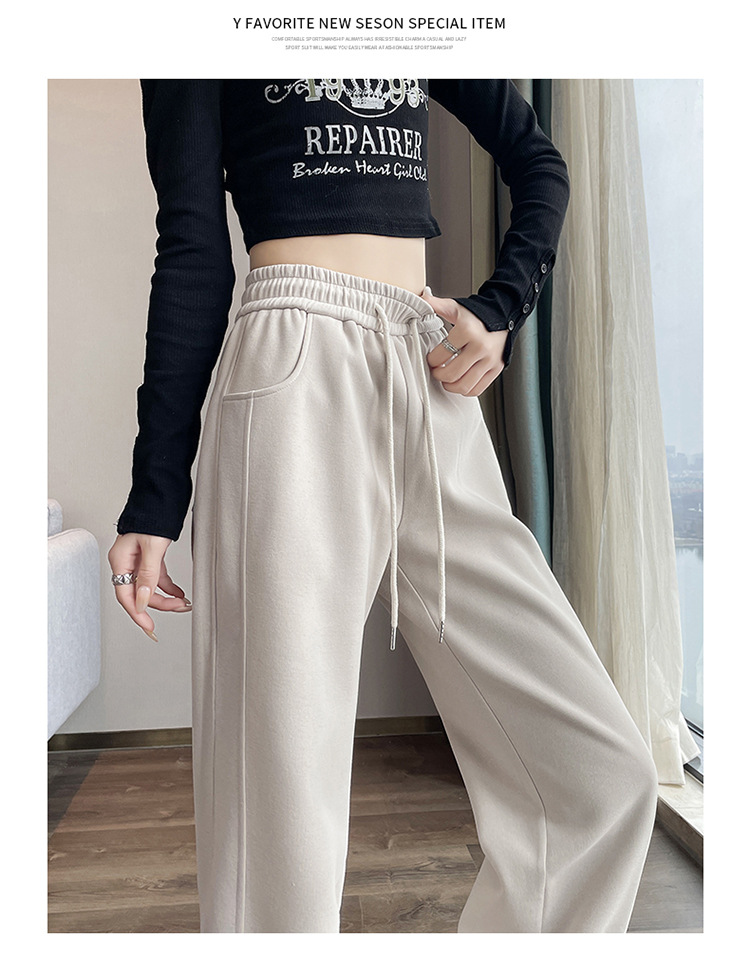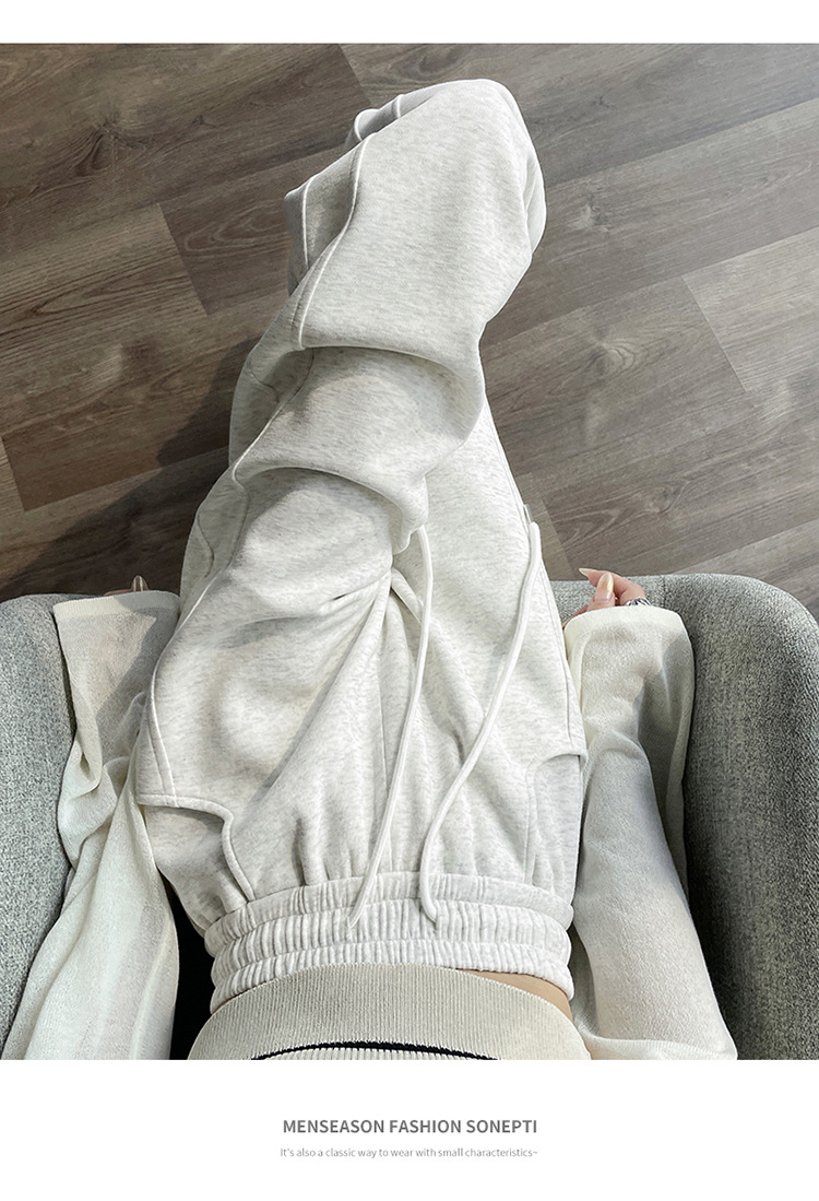 加绒运动休闲裤子女2025冬季小个子羊羔绒保暖韩系阔腿卫裤长裤子