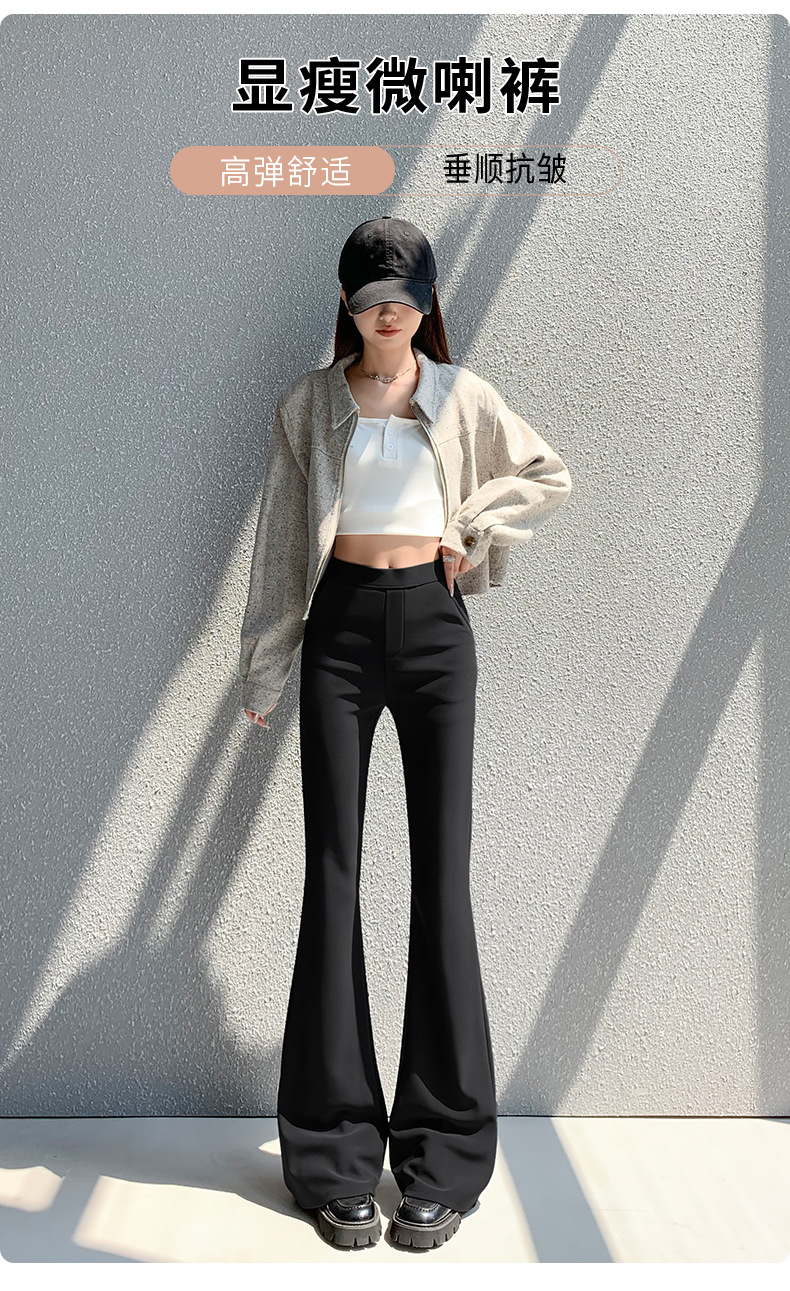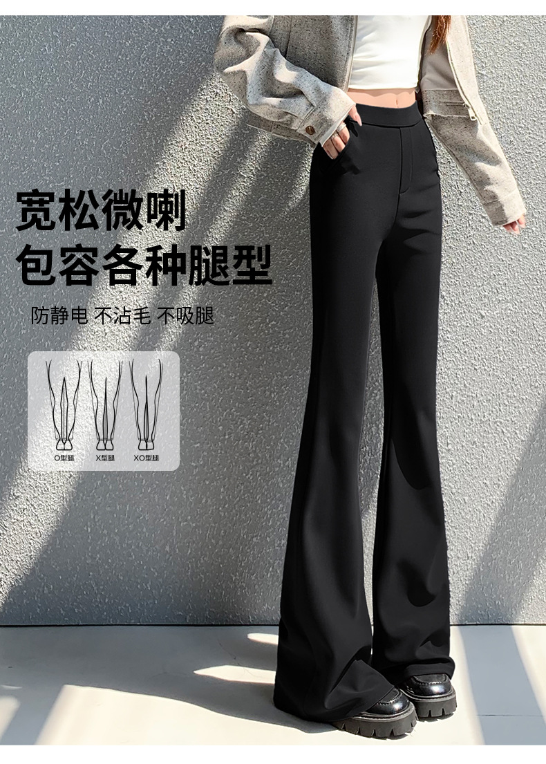 大码女装黑色喇叭裤女2025新款秋季微喇裤休闲垂感马蹄裤加绒裤子