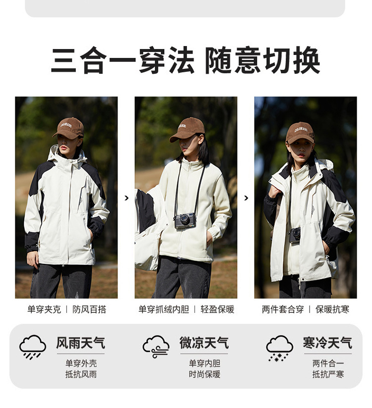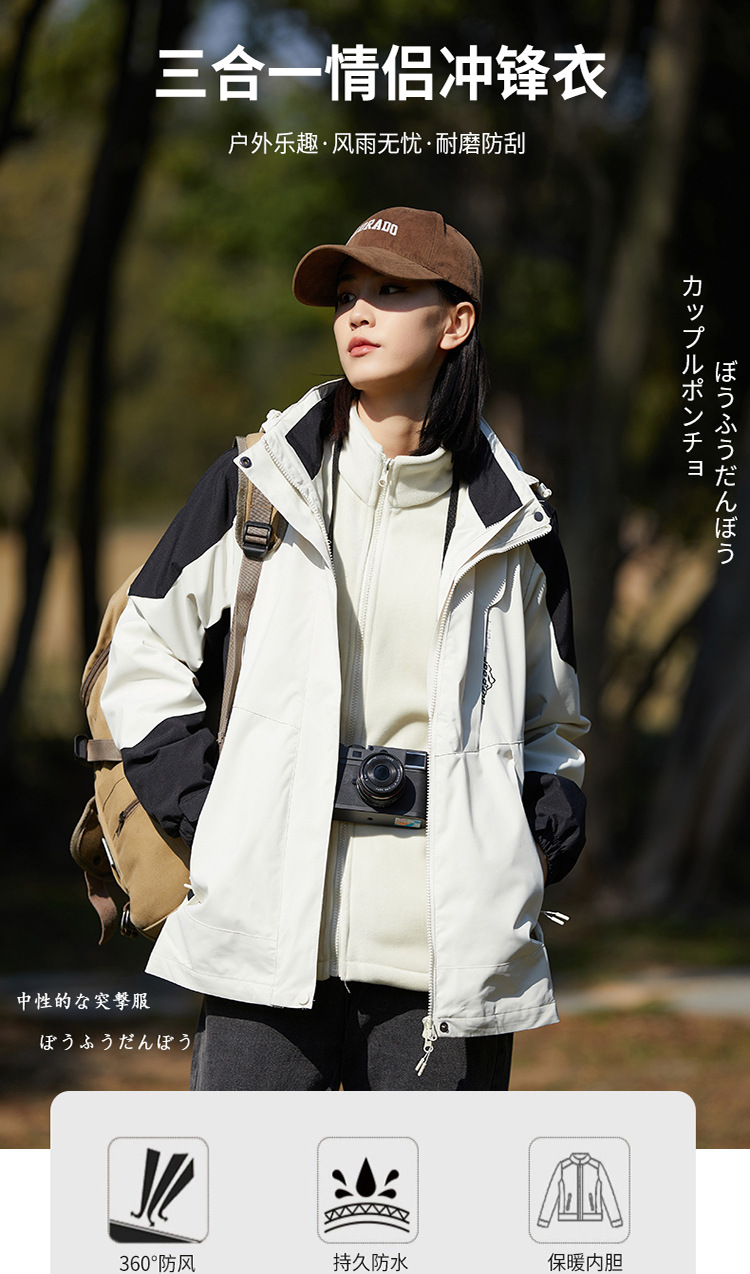 羽绒冲锋衣男女三合一可拆卸冬季两件套银狐绒防水防风登山外套潮