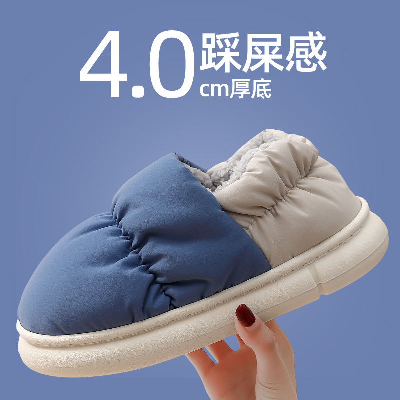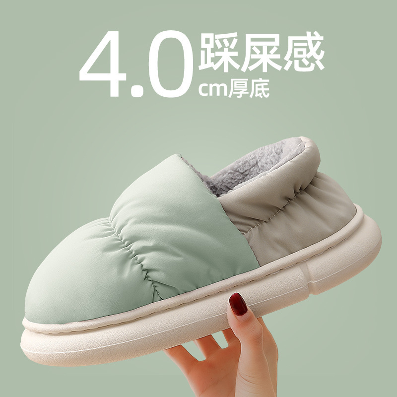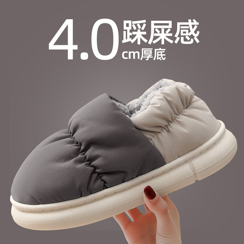 踩屎感棉拖鞋女冬季包跟加绒室内居家保暖厚底防水羽绒棉鞋男外穿