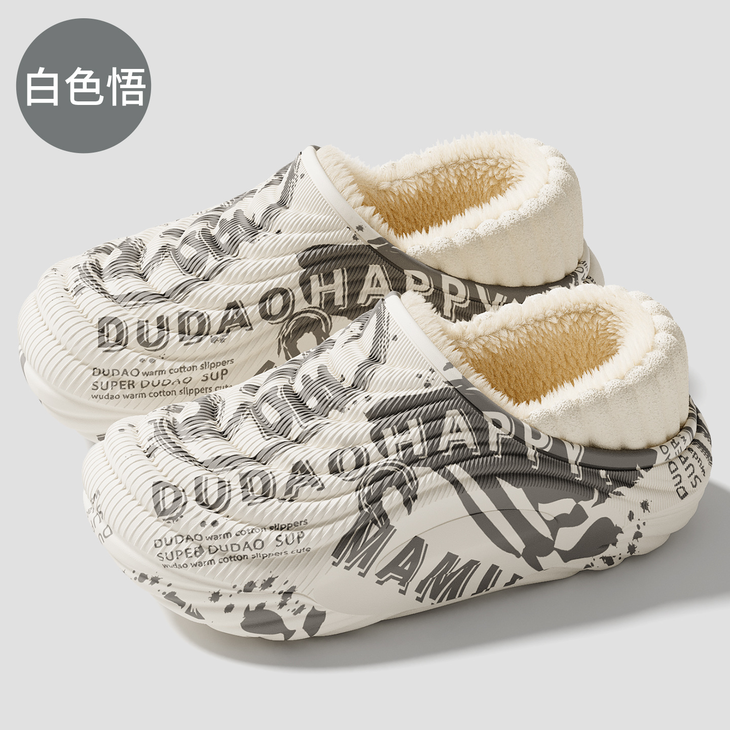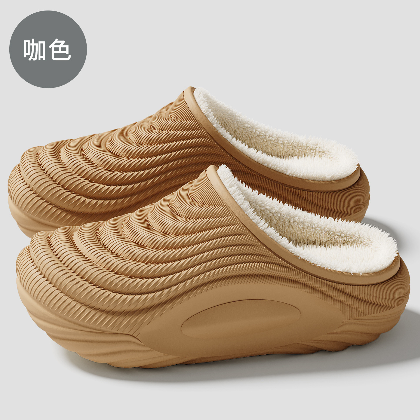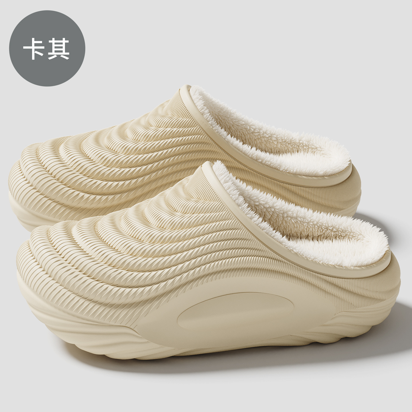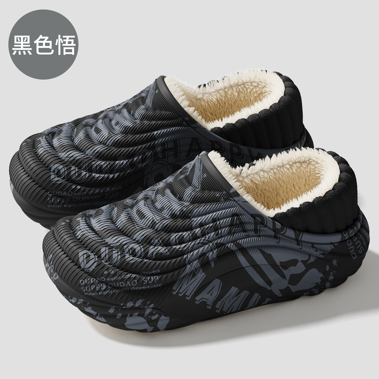 男士防水棉鞋冬季外穿软底防滑家居室内毛绒保暖包跟棉拖鞋女批发