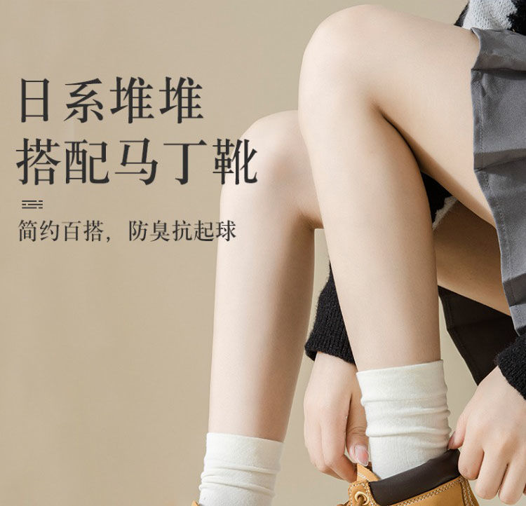 黑白色长袜堆堆袜女jk中筒袜棉制ins潮无骨袜春秋长筒秋冬月子袜