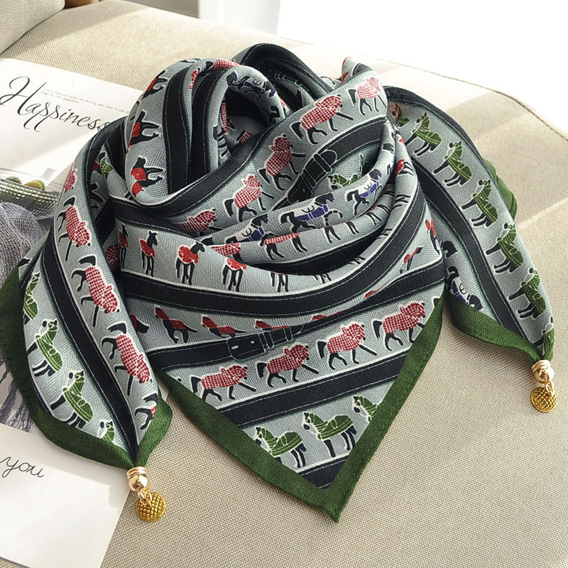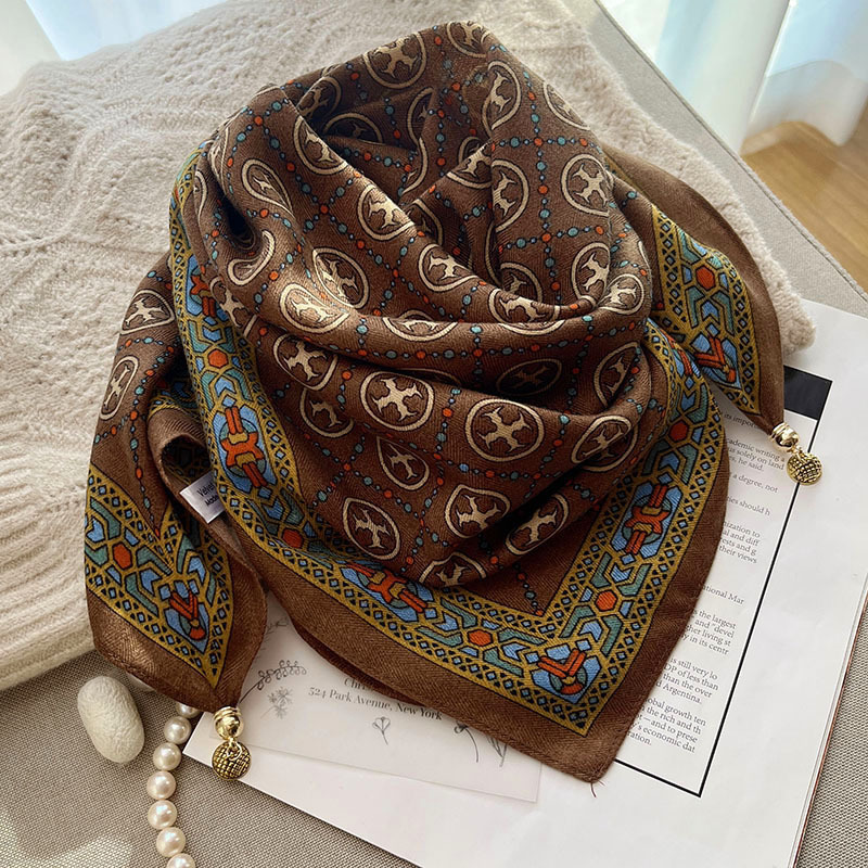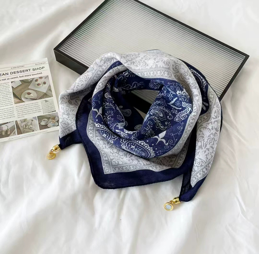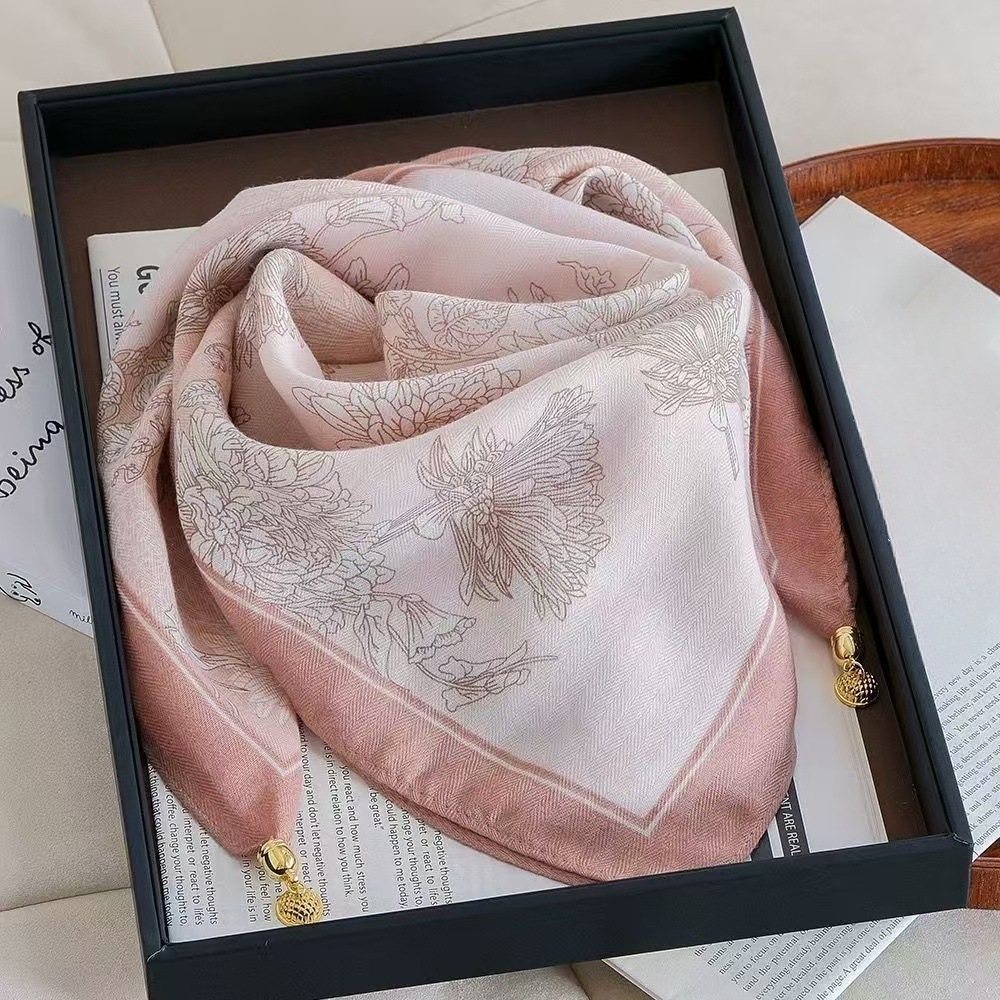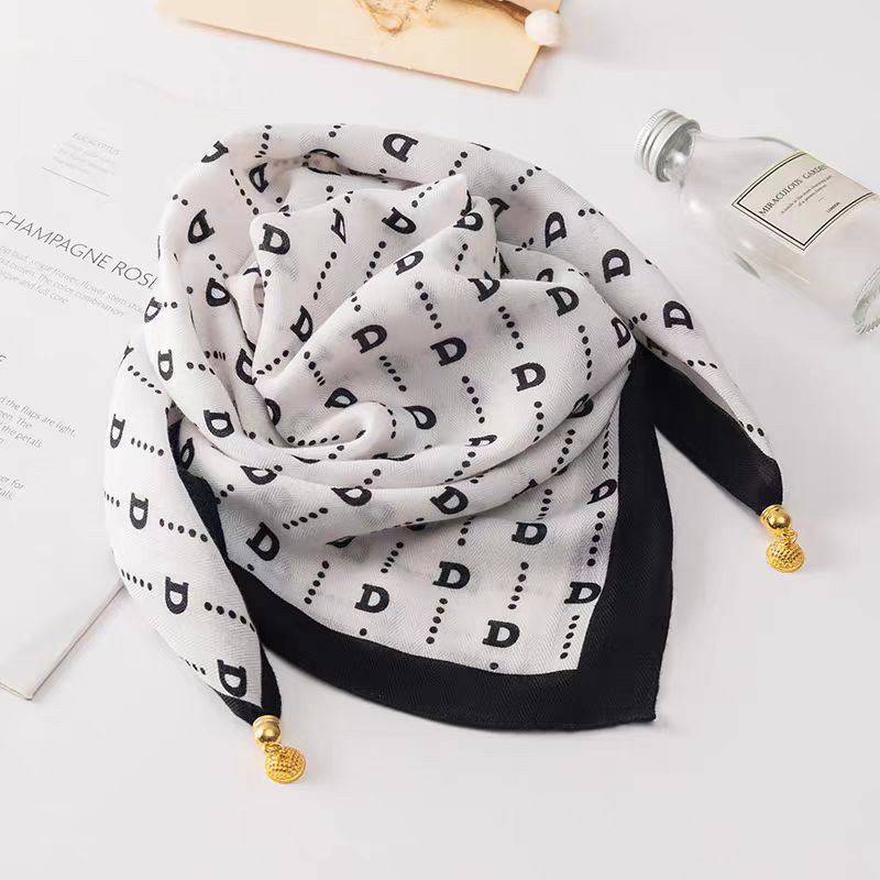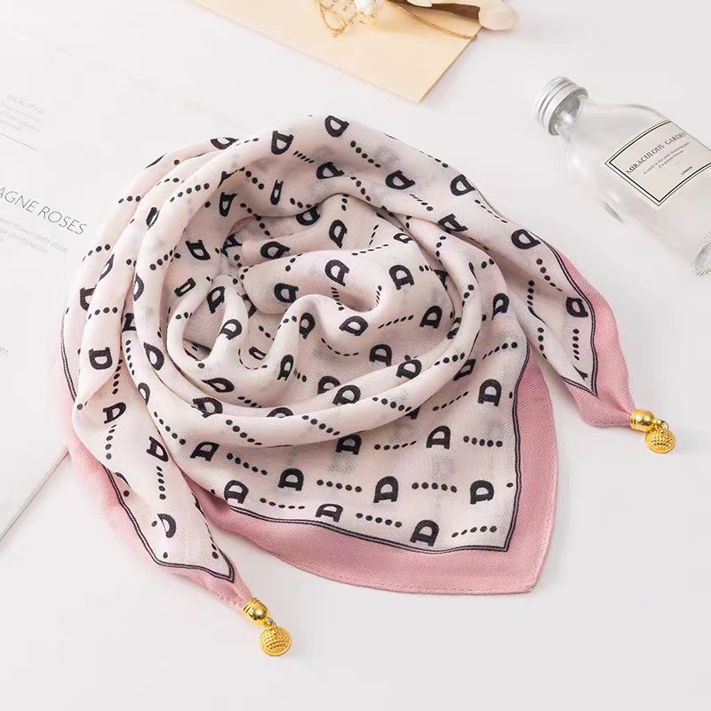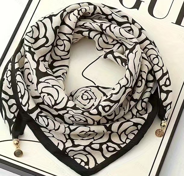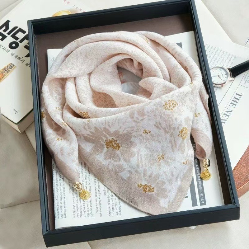 秋冬新款气质百搭护颈保暖围巾洋气领巾丝巾韩版小金球磁扣丝巾普