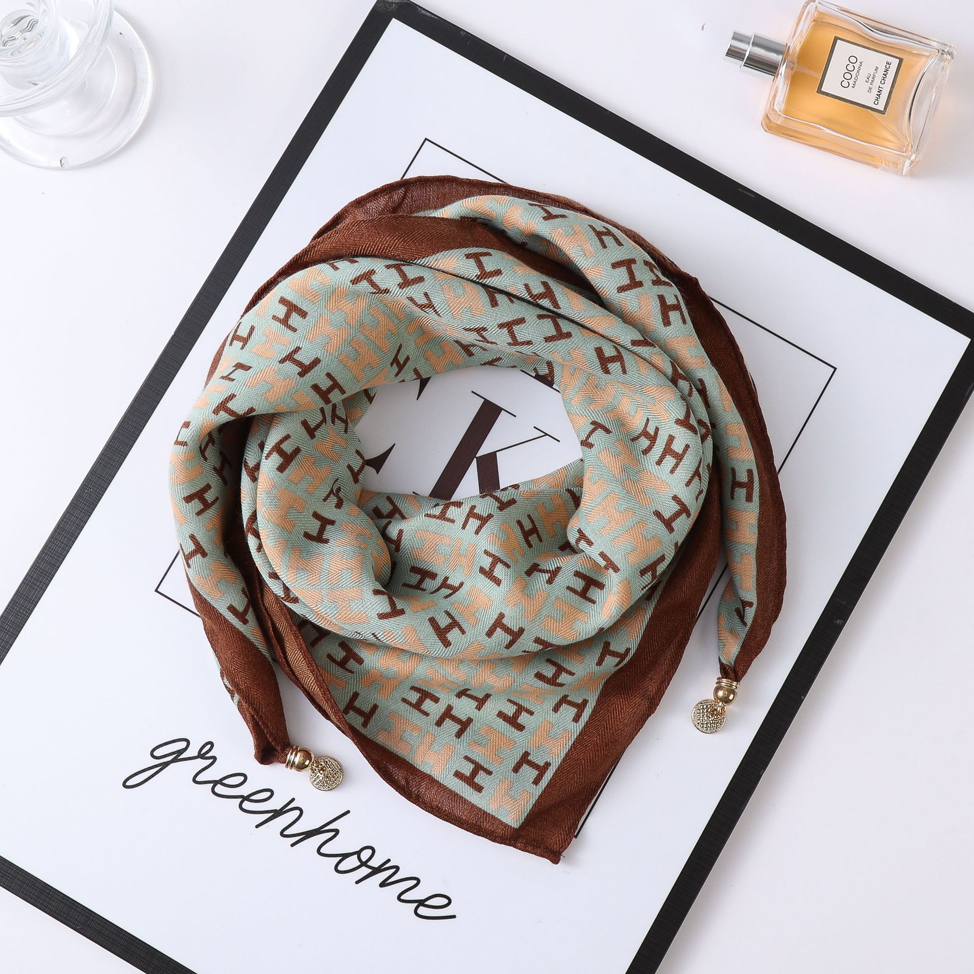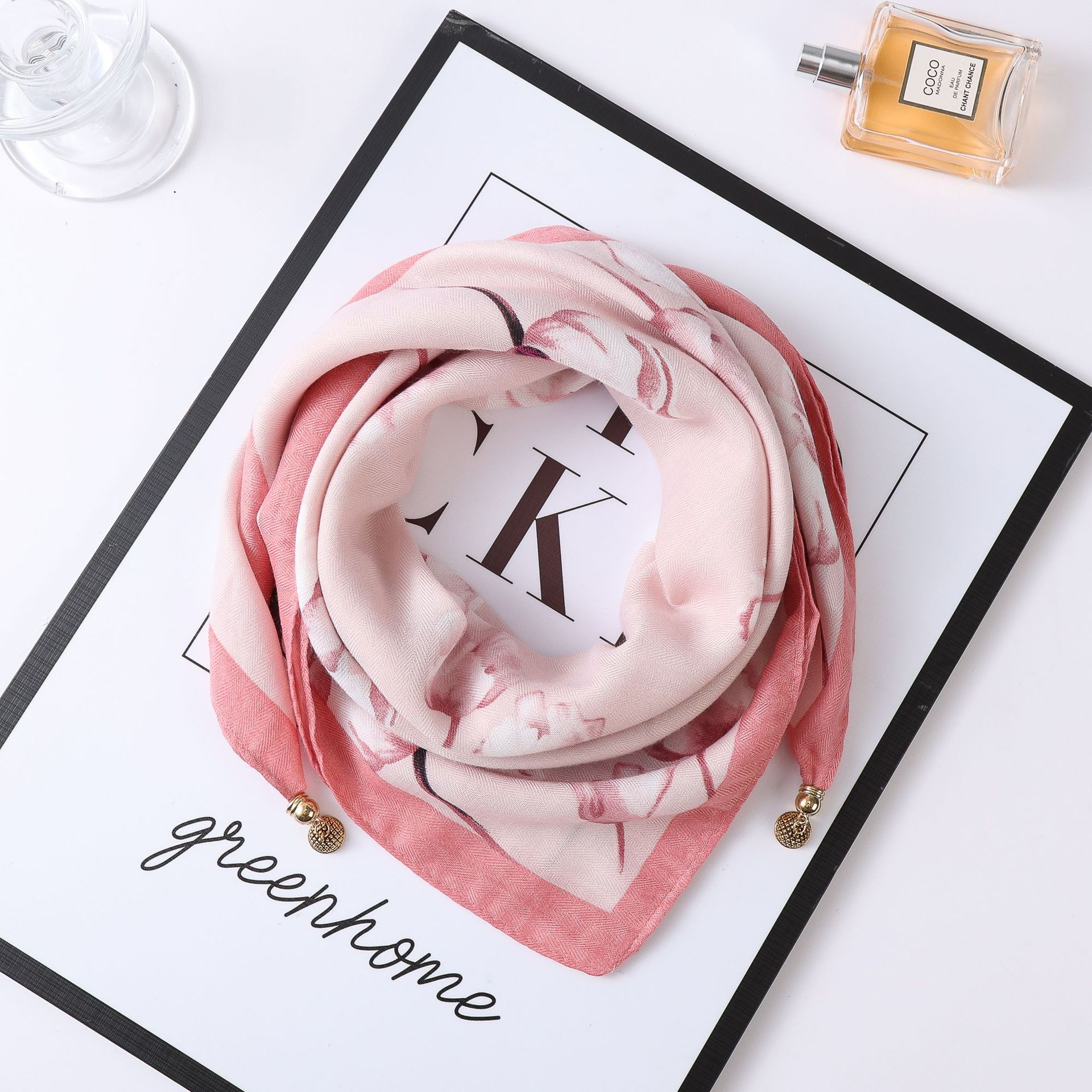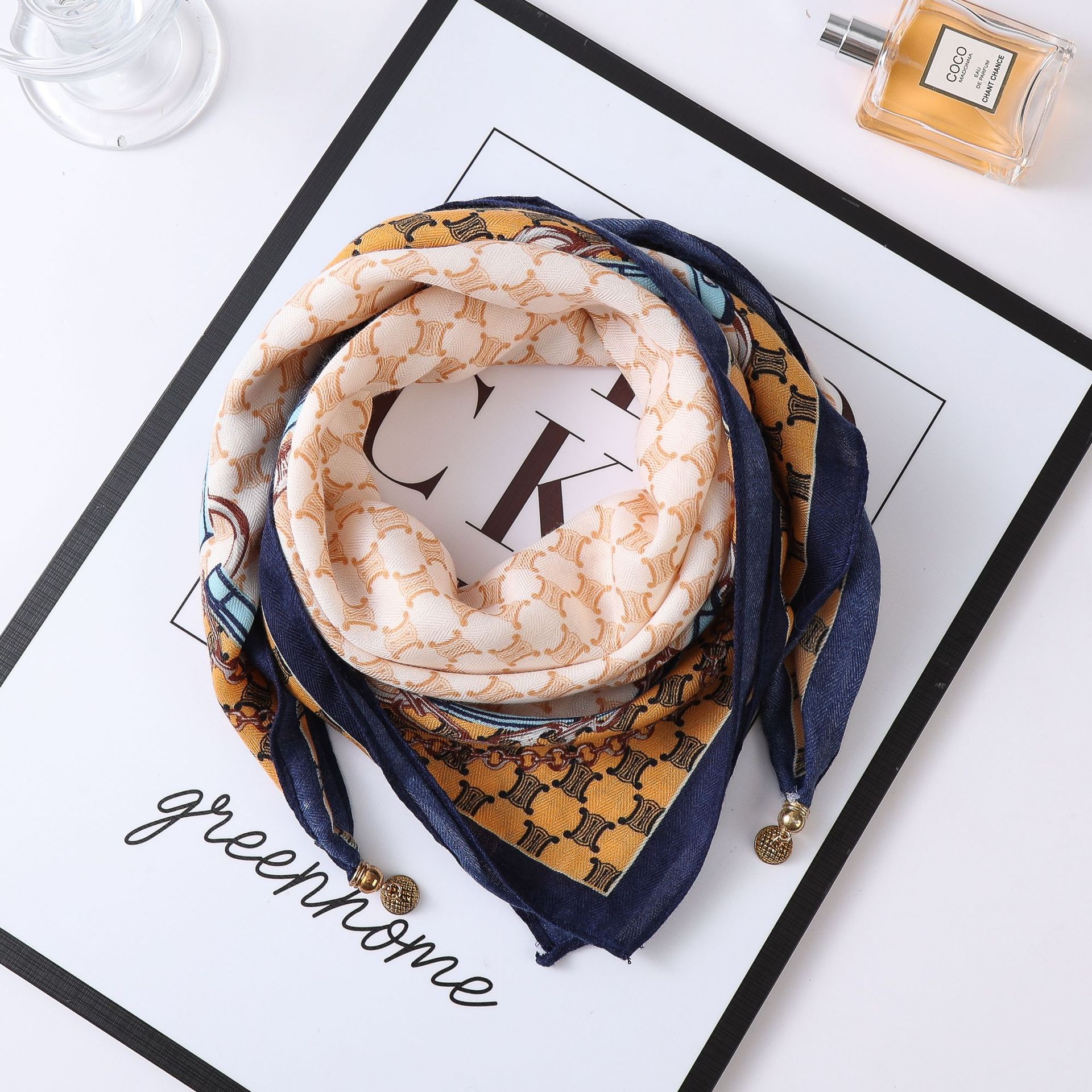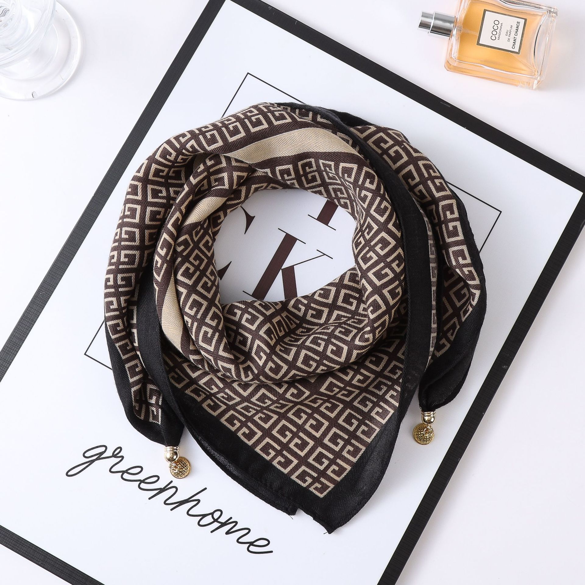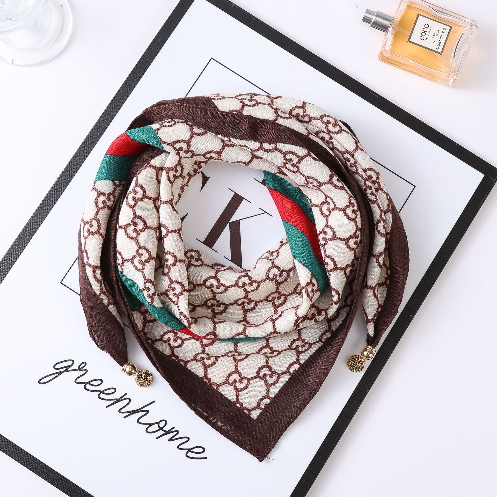 秋冬新款气质百搭护颈保暖围巾洋气领巾丝巾韩版小金球磁扣丝巾普