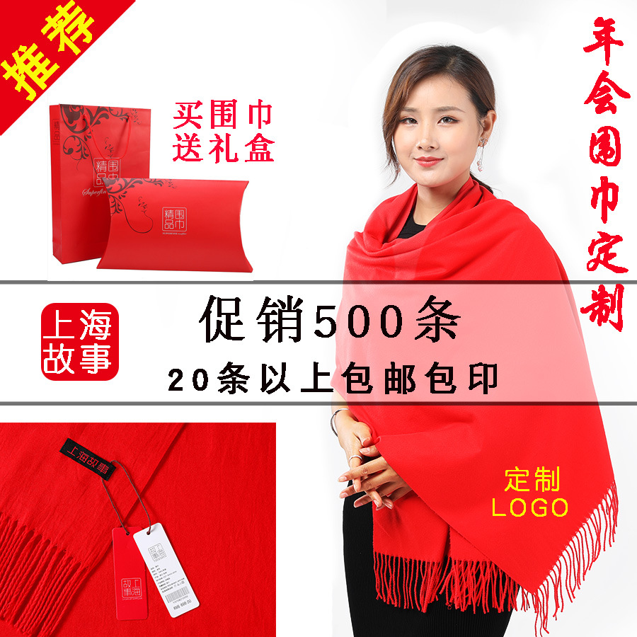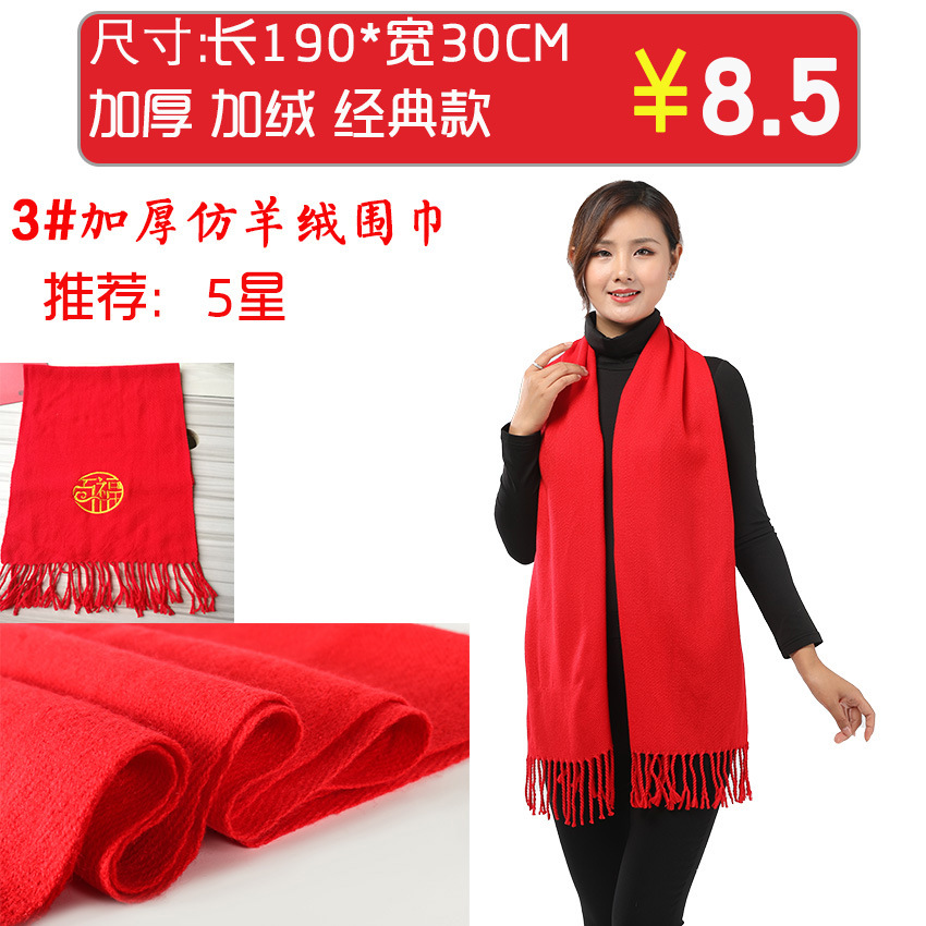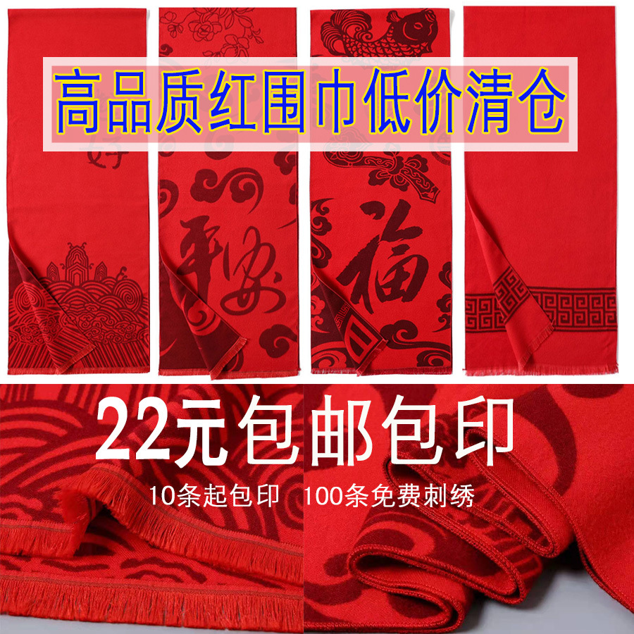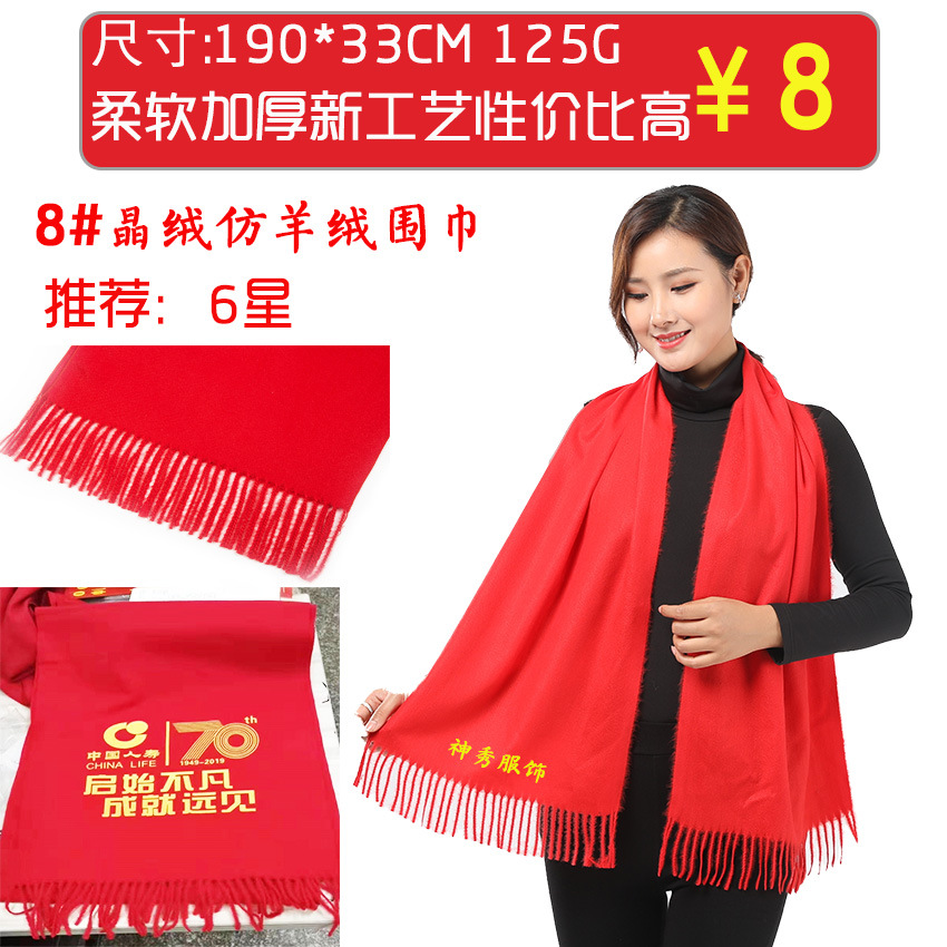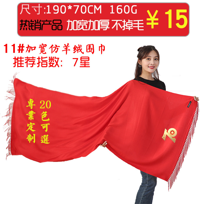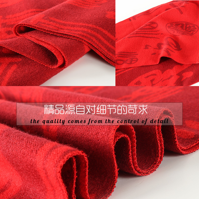 红围巾定制logo中国红开门红年会礼品仿羊绒祝寿刺绣披肩中国风
