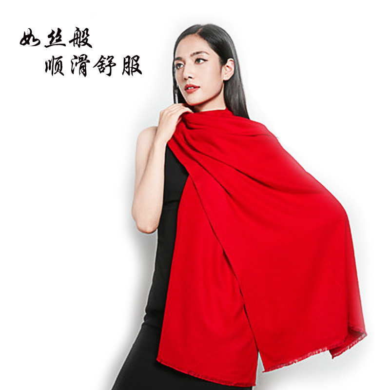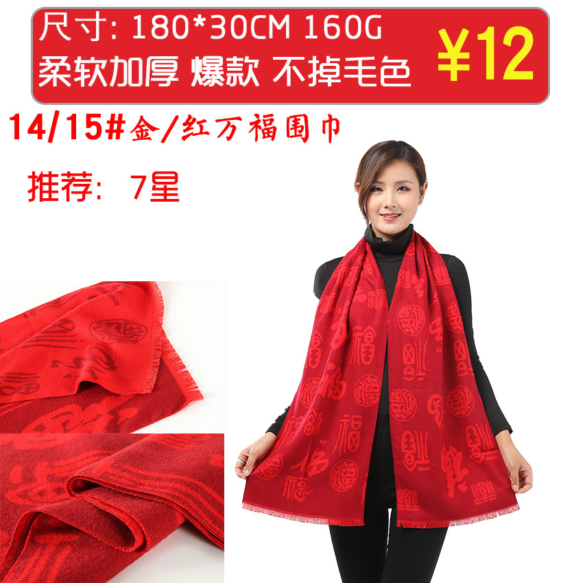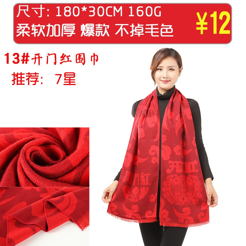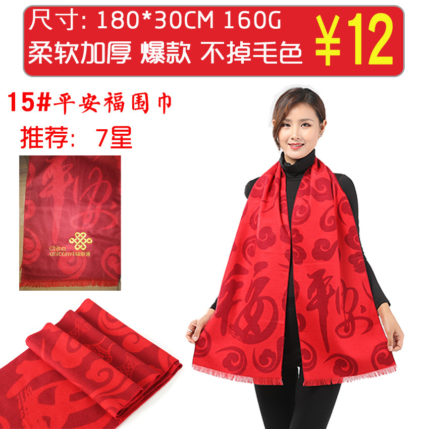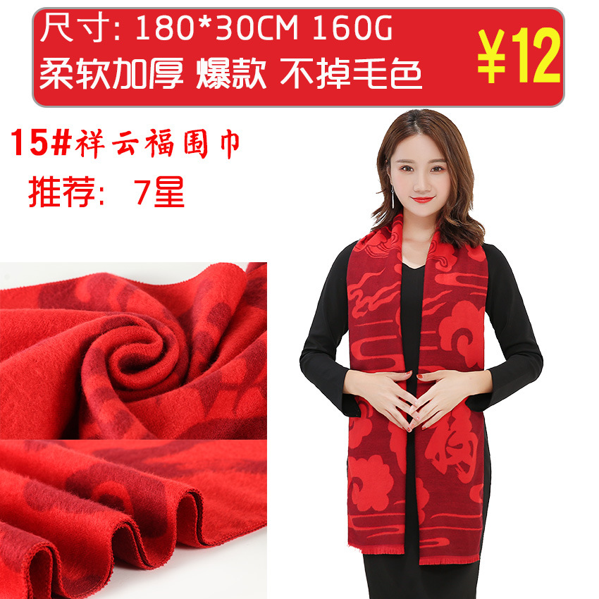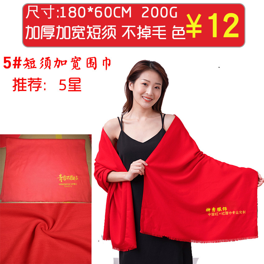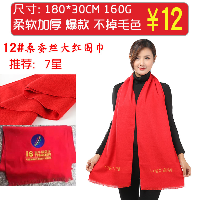 红围巾定制logo中国红开门红年会礼品仿羊绒祝寿刺绣披肩中国风