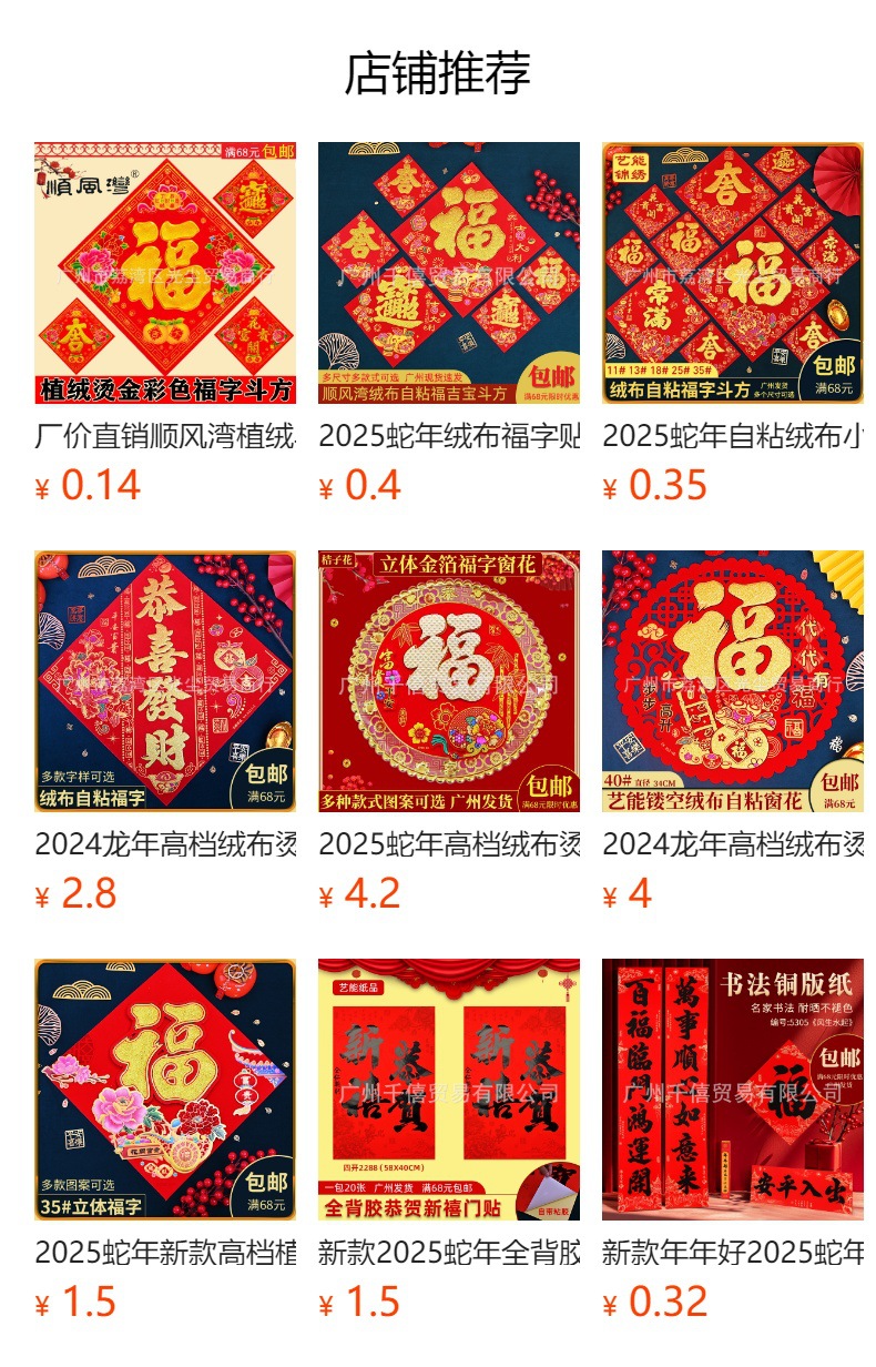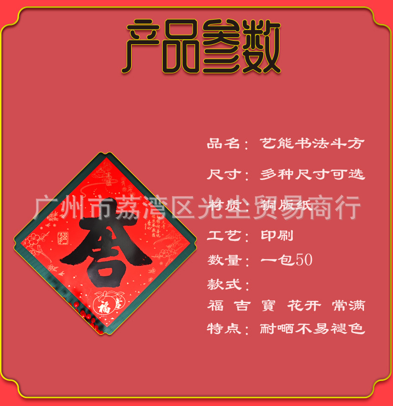 2026马年艺能黑字书法斗方福字大吉门贴批发11#13#17#25#35#40#45