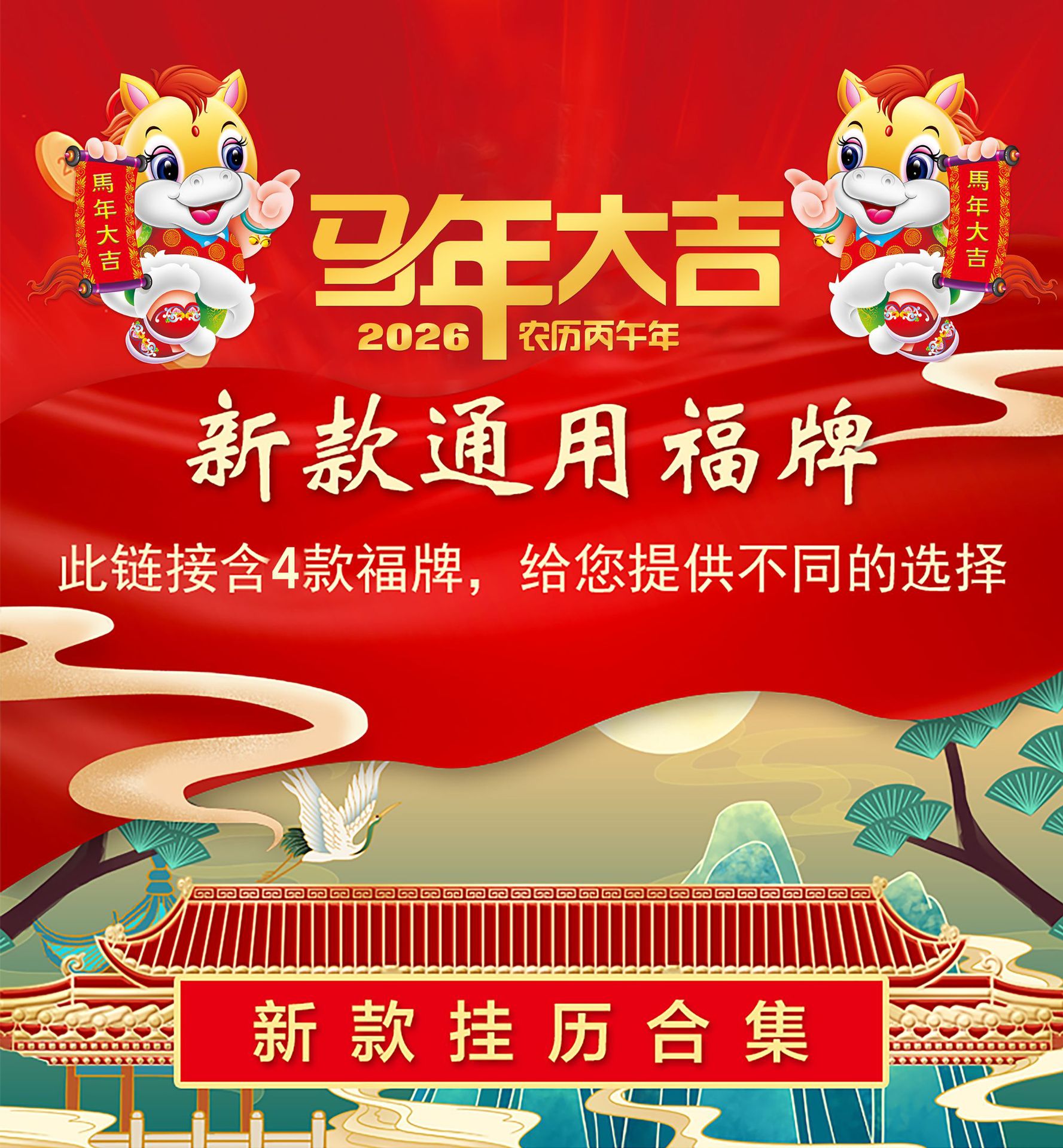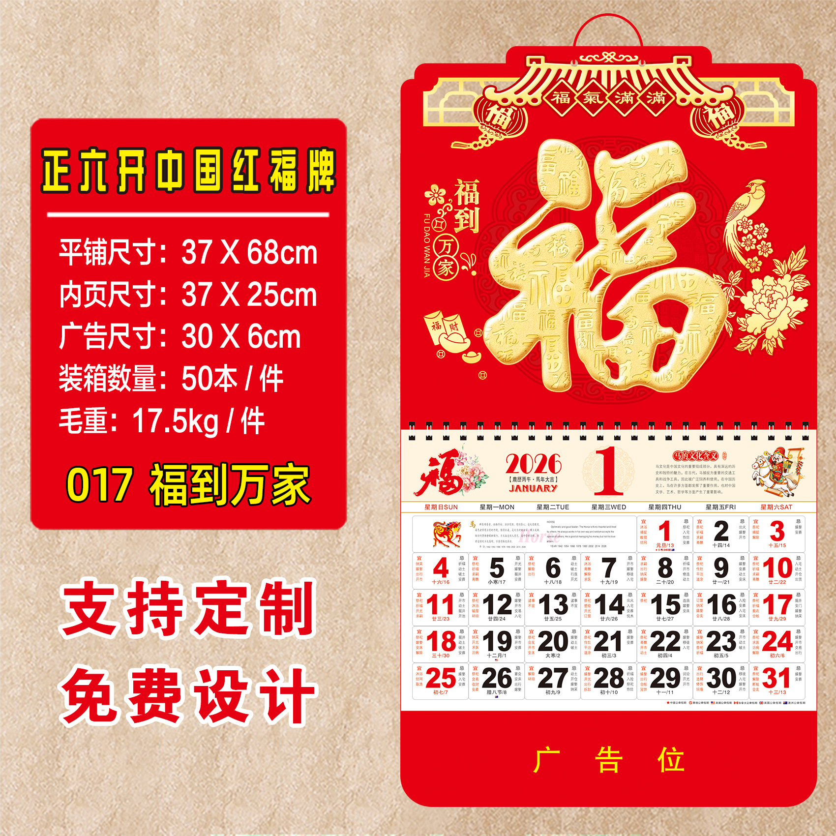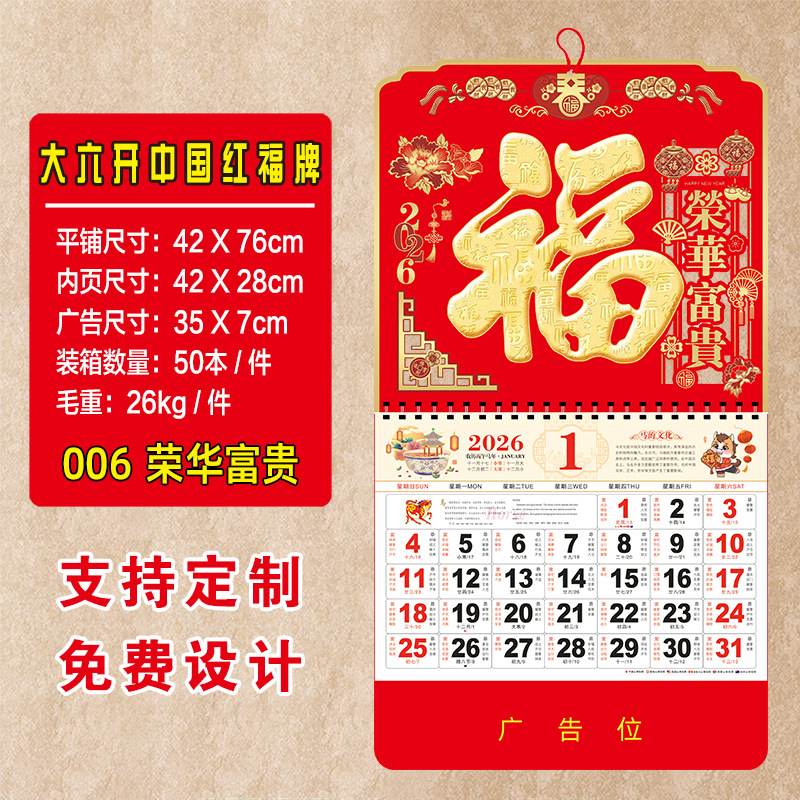 2026年马年挂历定制高端日历整年新年老黄历26年高档大号福字吊牌