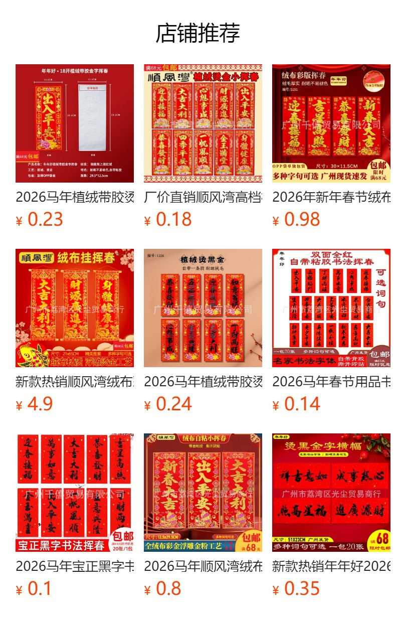 2026马年植绒烫金带胶自粘小挥春竖联门贴门条利是钱春节年货批发