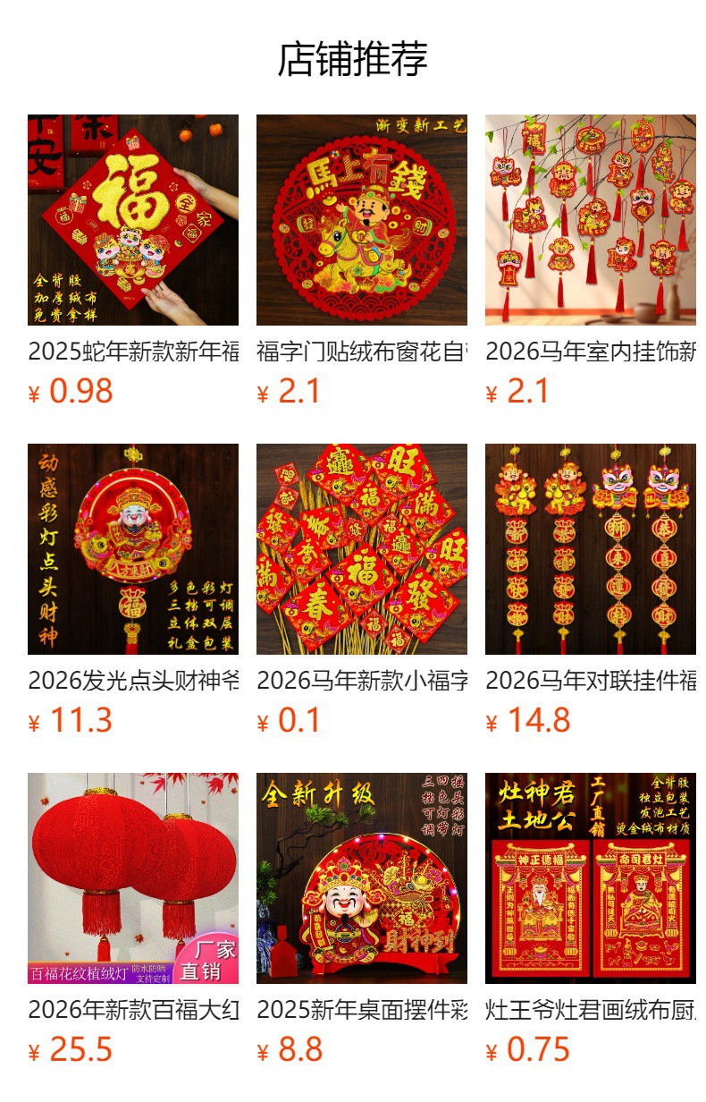 2026马年生肖福字门贴植绒全背胶新年卡通财神过年春节大门装饰品