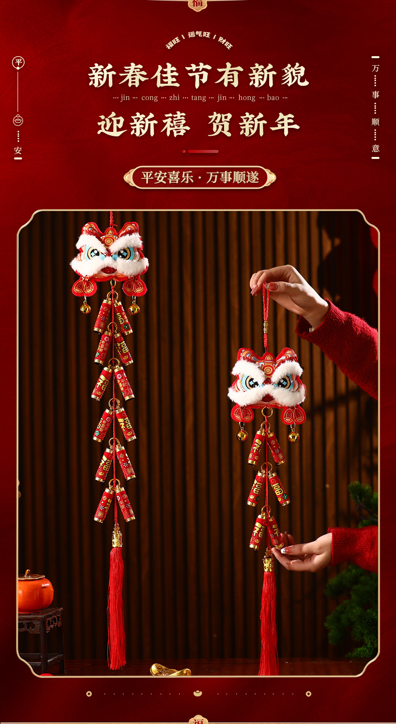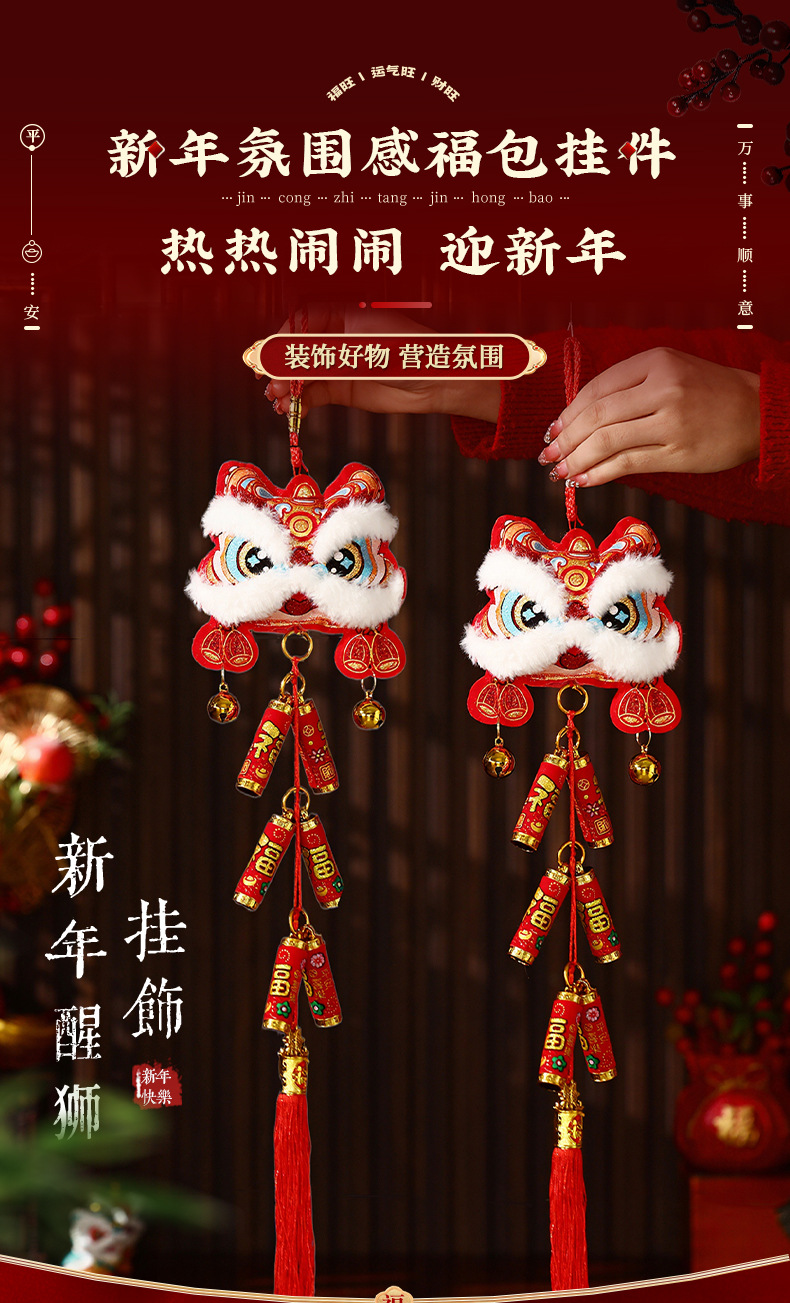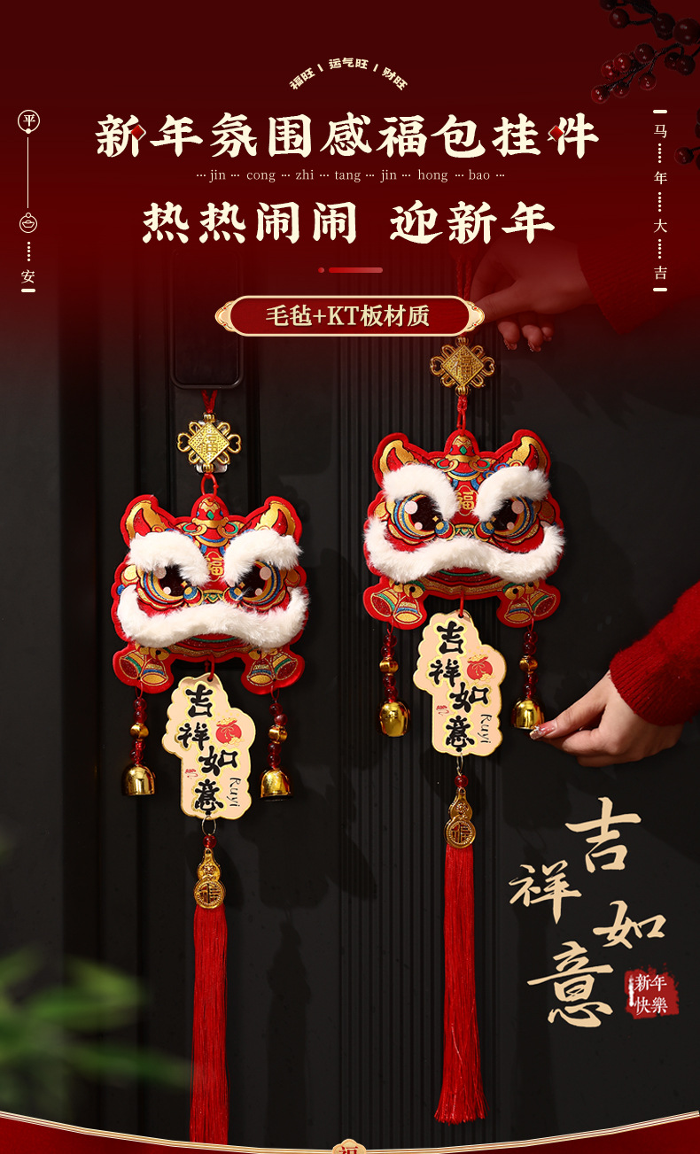 2026新年装饰品马年醒狮挂件元旦挂饰过年年货春节客厅场景布置