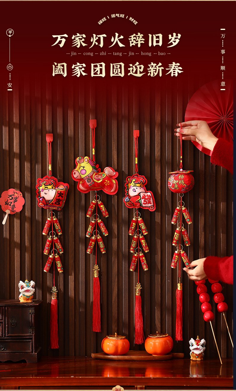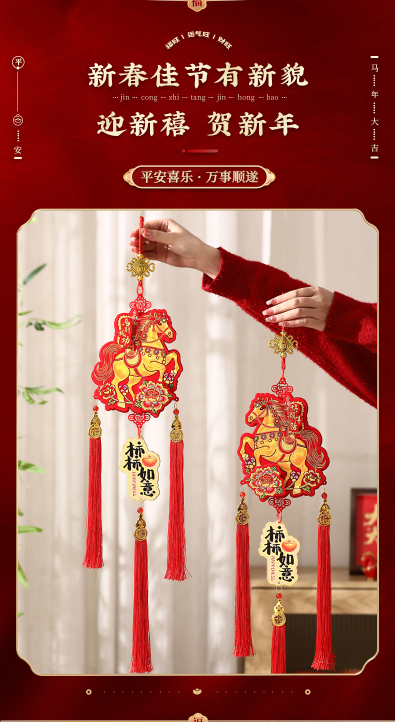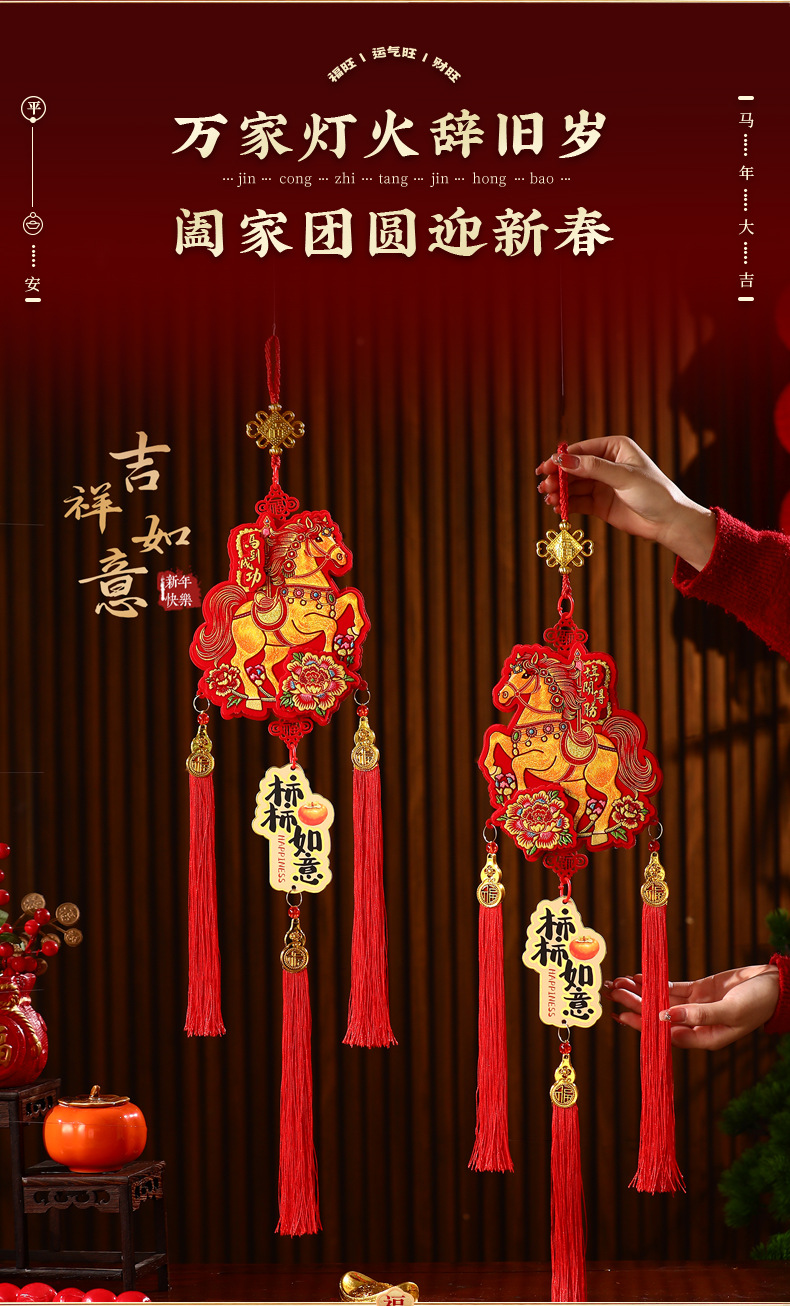2026新年装饰品马年醒狮挂件元旦挂饰过年年货春节客厅场景布置