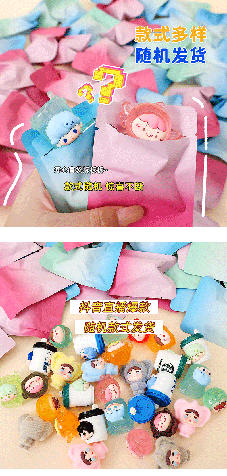 抖音爆款随机盲袋萌粒公仔潮玩玩具对对碰盲盒盲袋批发桌面小摆件