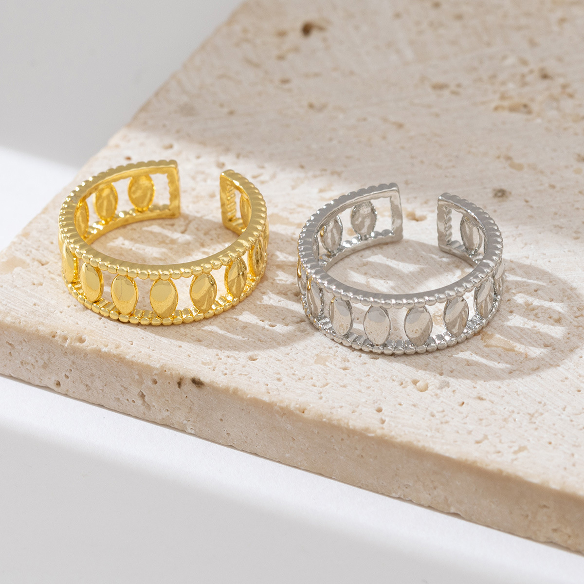 爆款欧美气质法式复古小众设计不规则高级感18k金镂空开口戒指女